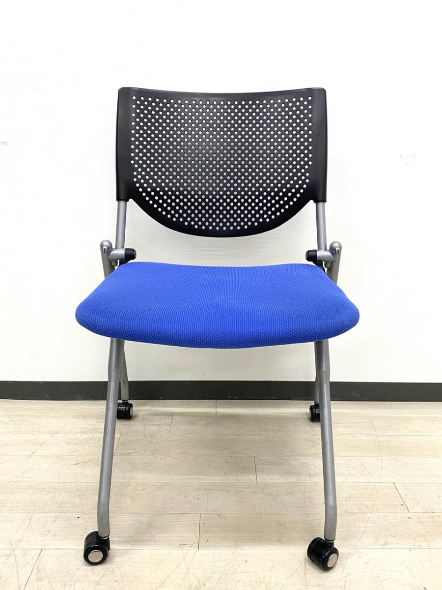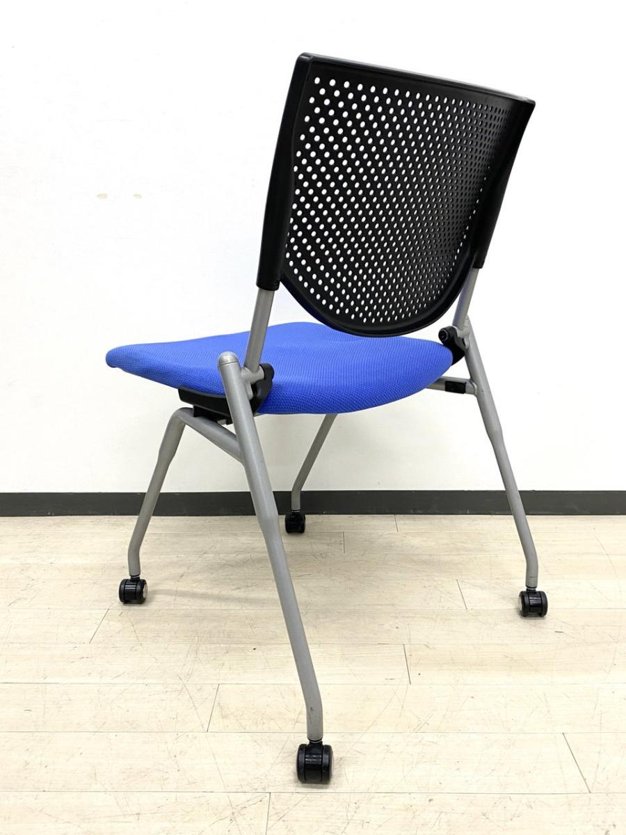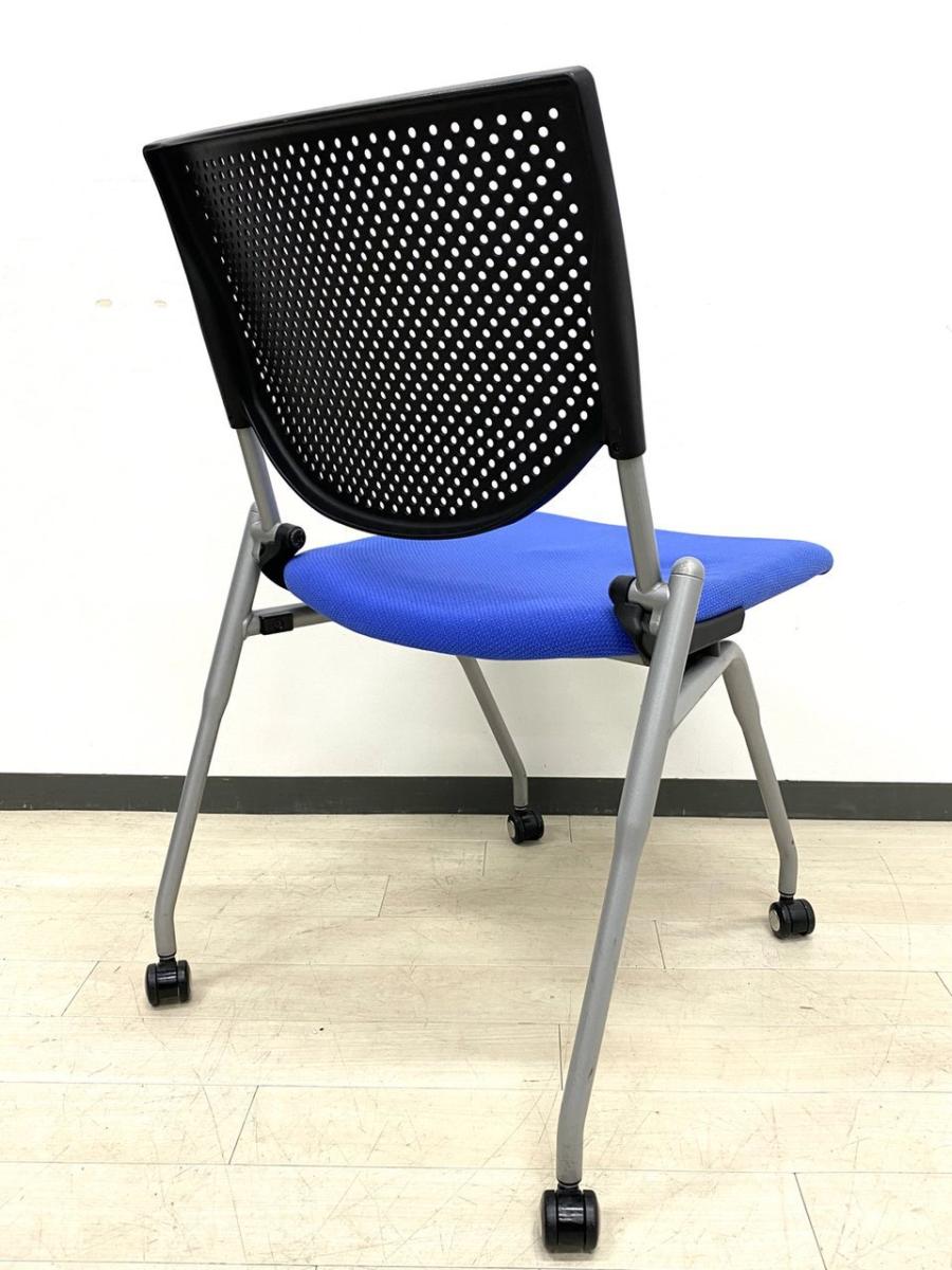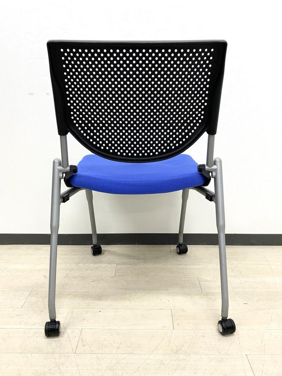 【4脚セット品!】平行方向へ重ねることができるネスティングチェア!使わないときはまとめて収納できる優れもの!会議室におすすめ! ■オカムラ/プロスタック/ブルー- 立川・八王子店