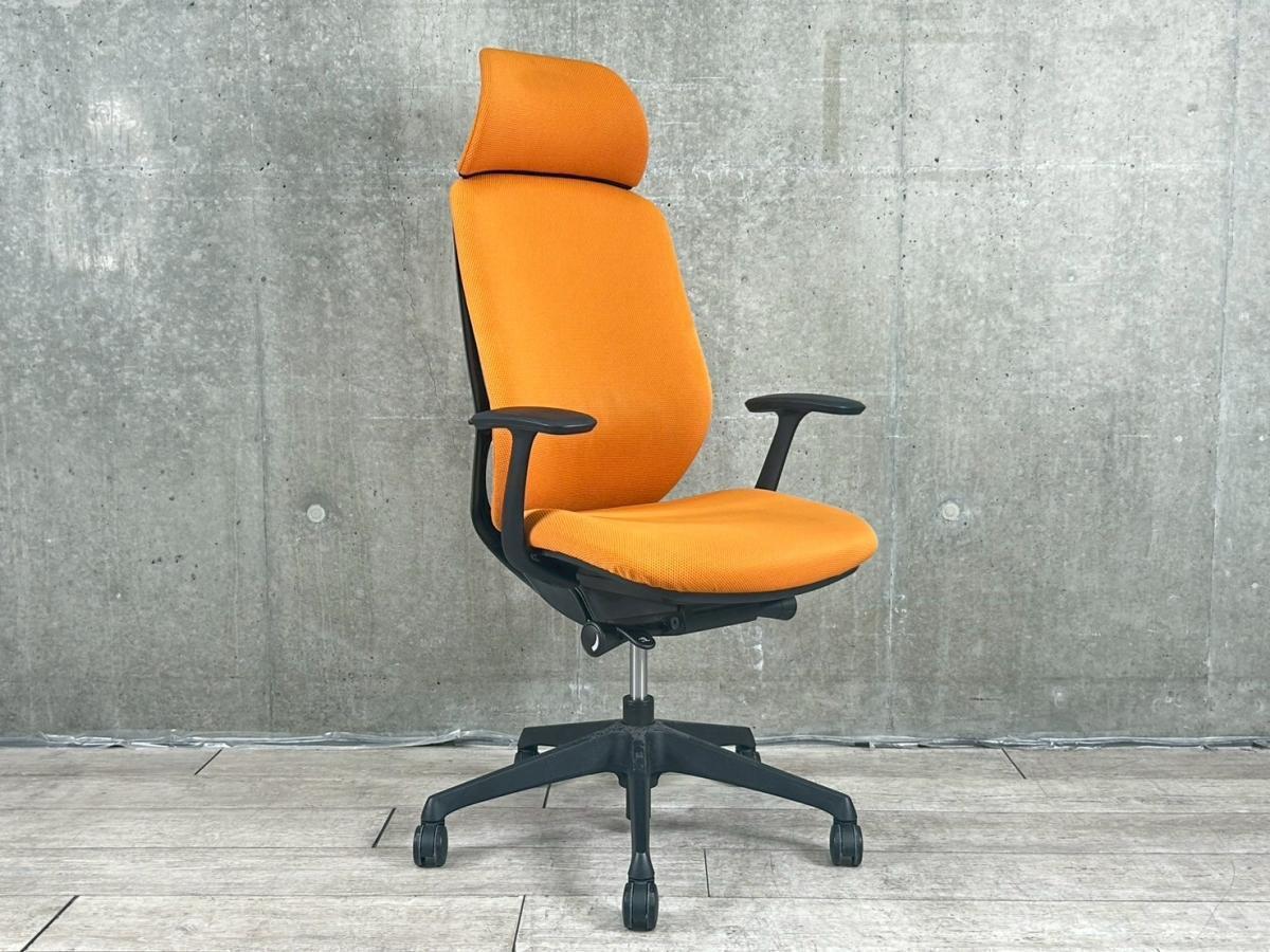 現品限り!新感覚のオフィスシーティング!前傾機能付きで長時間のデスクワークにもおすすめの逸品! ■オカムラ/シルフィー(Sylphy)/オレンジ ブラックフレーム エクストラハイバック 固定肘 ヘッドレスト付きサーキュラーバリューCO2削減量の算出について