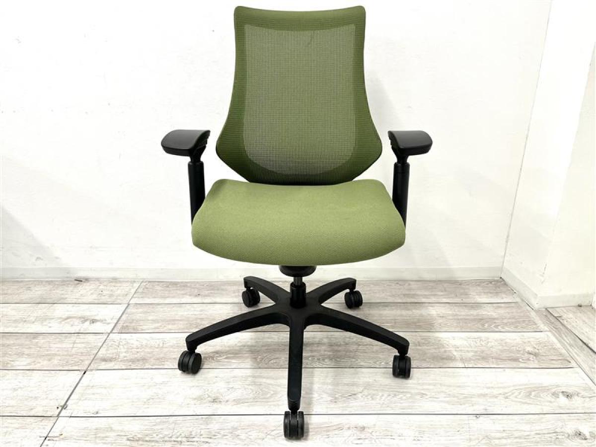 【メッシュ背面の快適OAチェアが入荷です! 背もたれの大きなハイバックタイプ! 姿勢の変化にフレキシブルに対応!】■イトーキ(ITOKI) ■エフ(f)チェア ■ハイバック ■メッシュ背面 ■可動肘付き ■グリーン【状態良好品!】