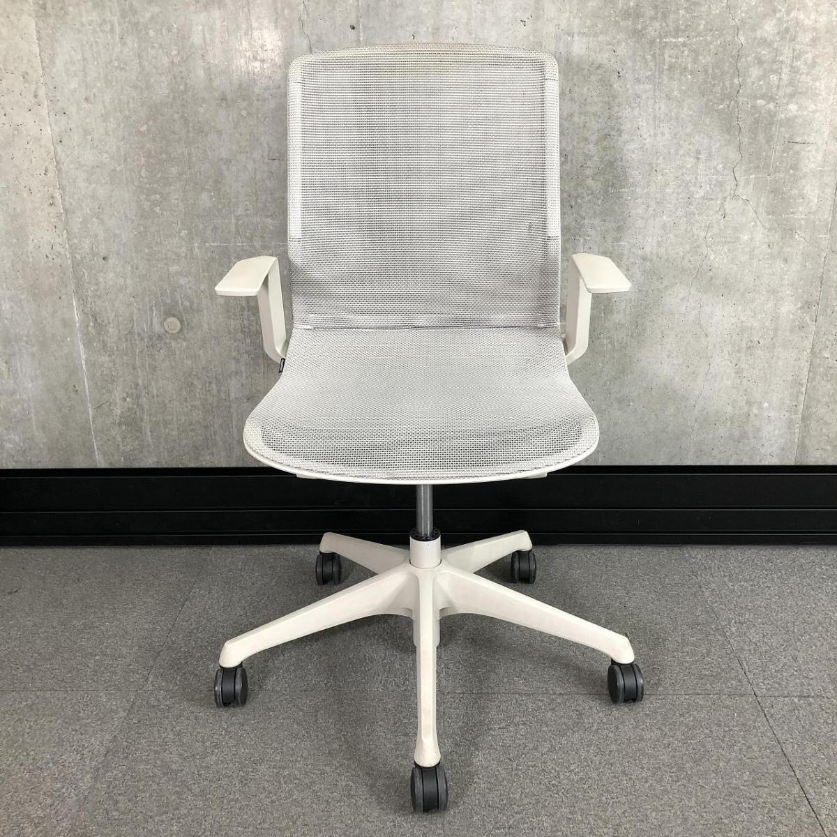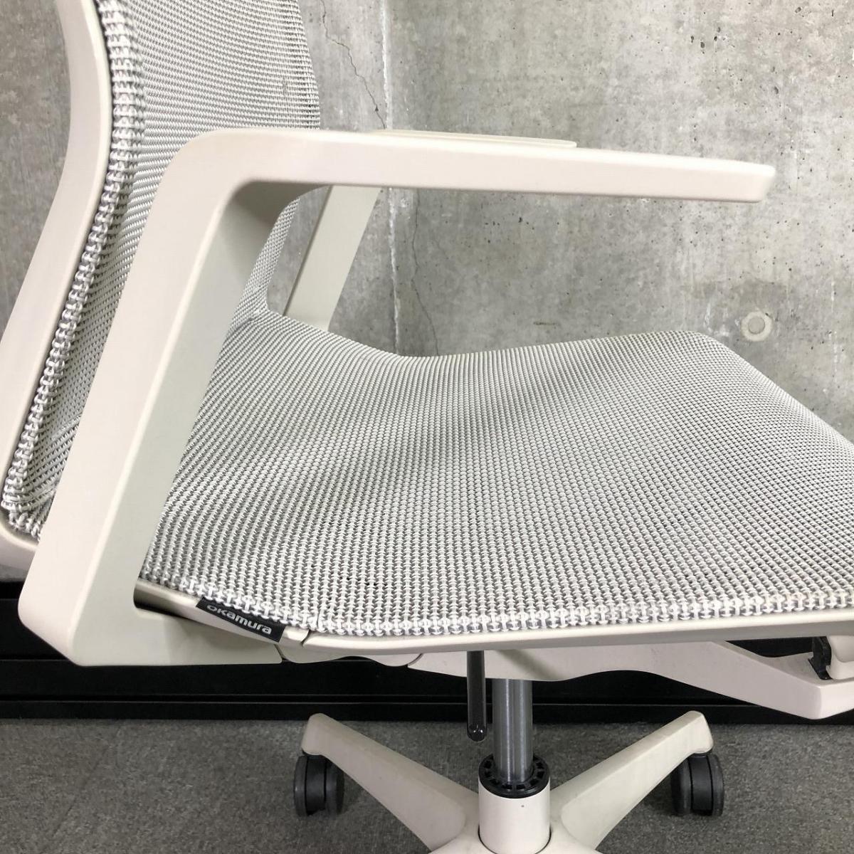 【究極の軽さ!考え抜かれたシンプルデザイン!】■オカムラ製 シナーラチェア 肘付ローバックチェア ■デザインアーム付 ■ライトグレー ■背座面メッシュ【AD】- 足立・葛飾店