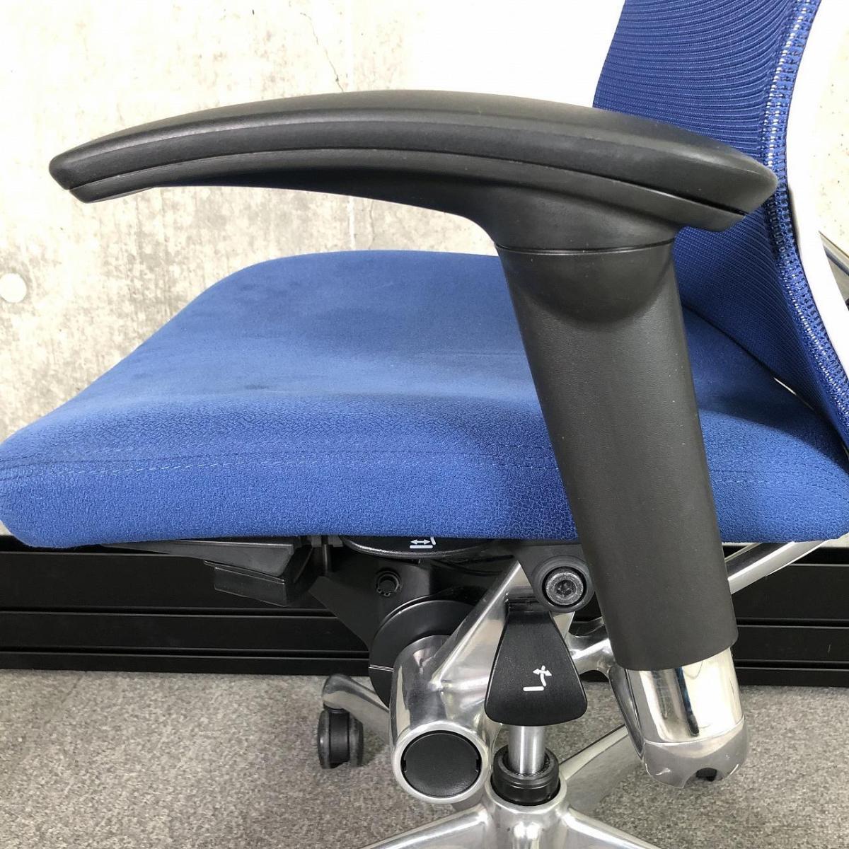 【1脚限定の為、クレジット決済優先】【早い者勝ちです!】【ワンランク上の高品質グレード!人間工学に基づいた快適な座り心地と一体感!】■オカムラ(okamura) ゼファー(Zephyr) 肘付き ハイバック ■可動肘 ■背面メッシュ ■ブルー ■オフィスバスターズ心斎橋店