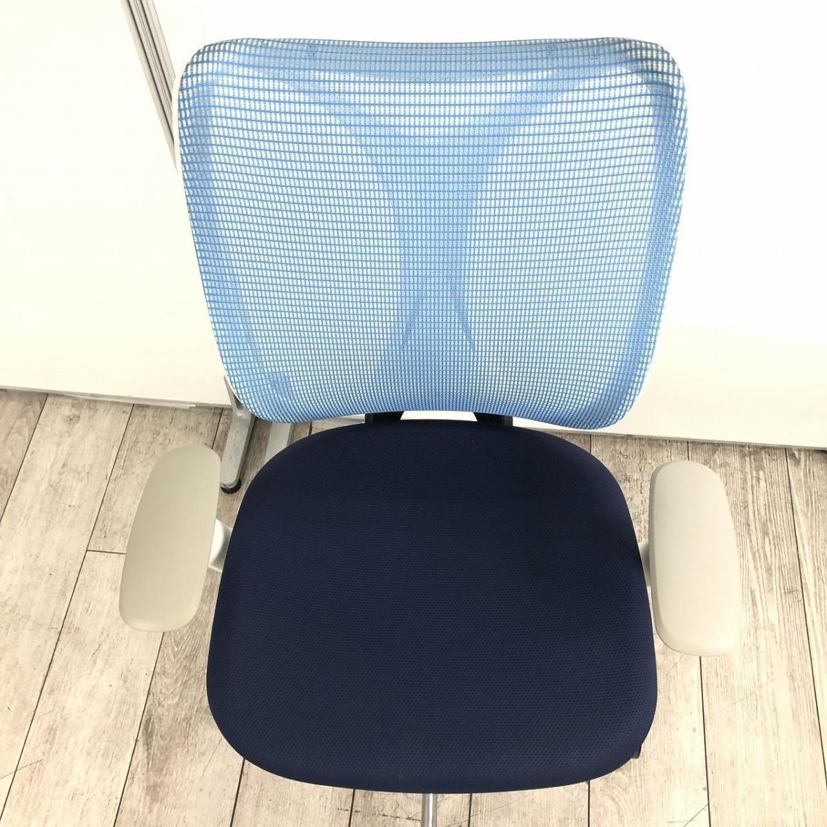 【前傾機能付きで作業効率アップ!オフィスにもご自宅用にも人気の一品!】■オカムラ(okamura)製 Sabrina(サブリナ) ハイバック 肘付き ■背面メッシュ ■可動肘 ■背アクアブルー × 座ダークブルー × ホワイトシェル- 茨城南店