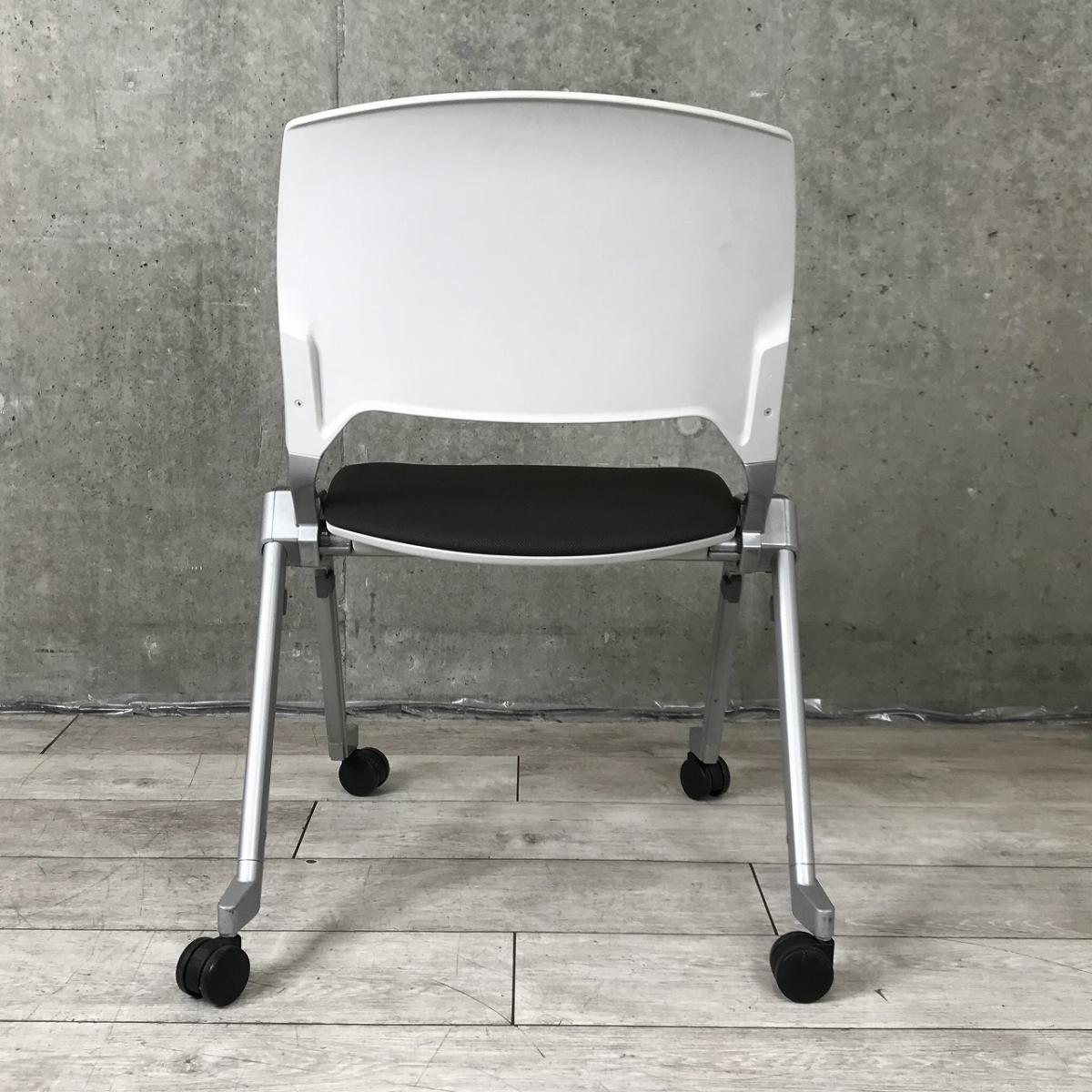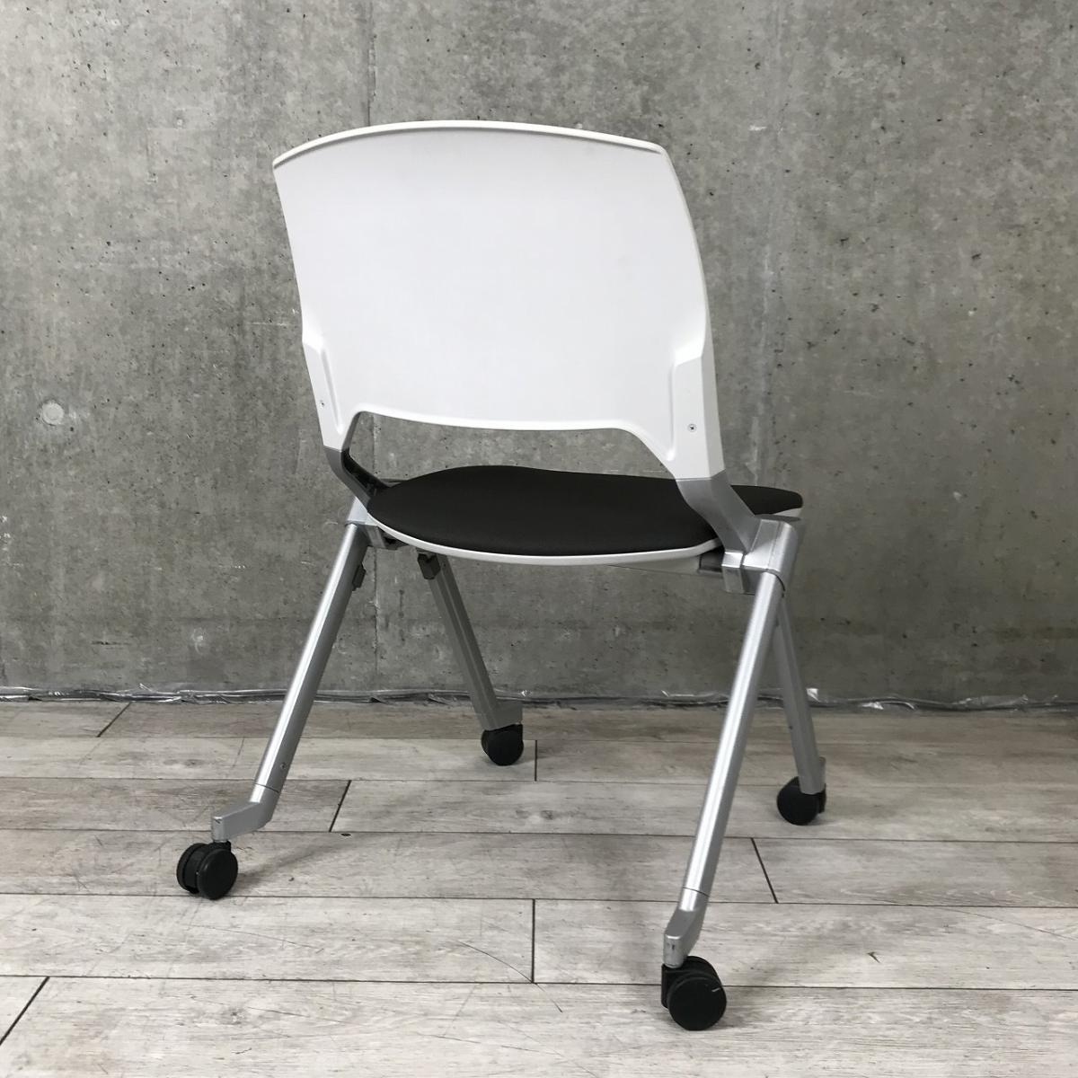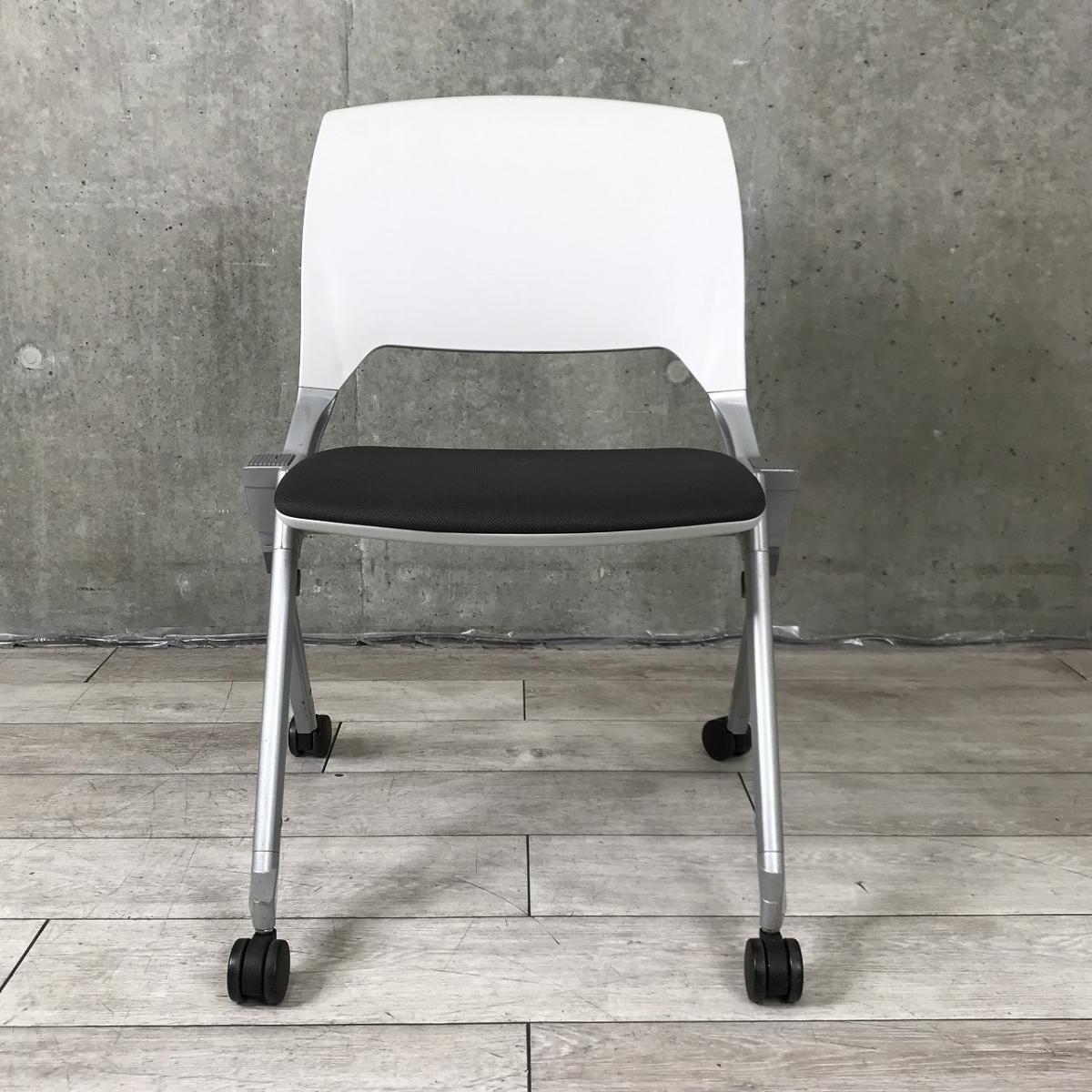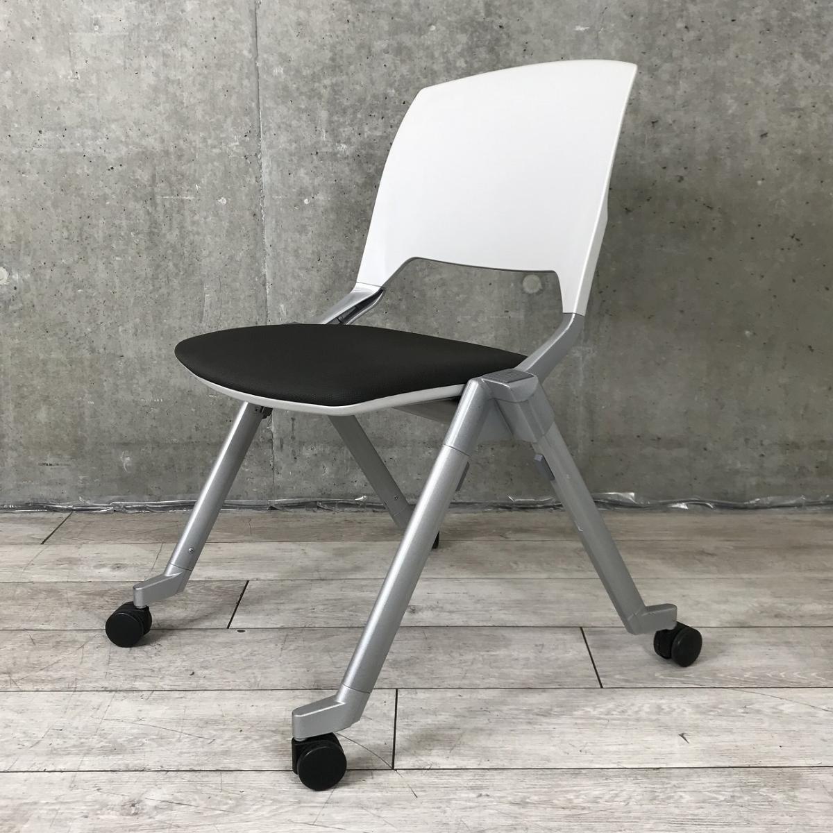 【平行収納、重ねての収納どちらも可能な珍しい仕様のミーティングチェア!】■ウチダ(UCHIDA) FM-320 スタッキングチェア ネスティングチェア 肘無し ■背ヌードタイプ:ホワイト ■座面:ブラック- 千葉店