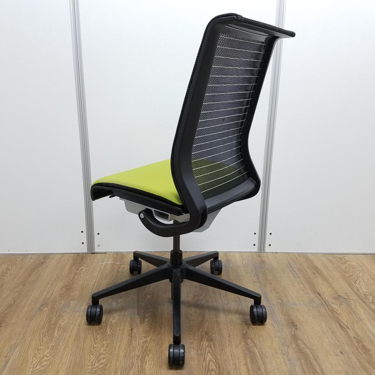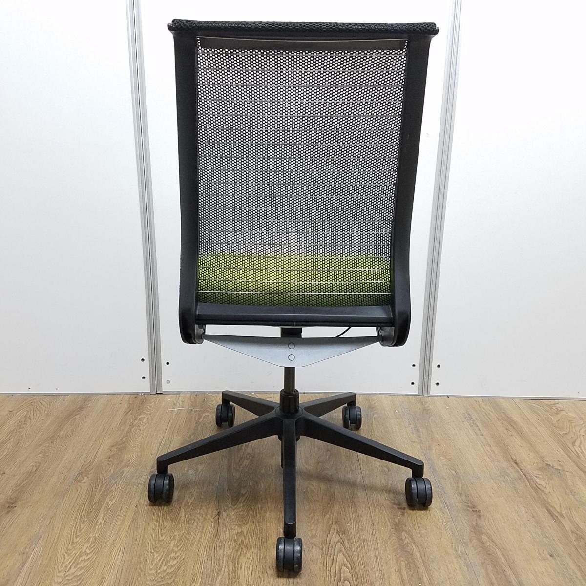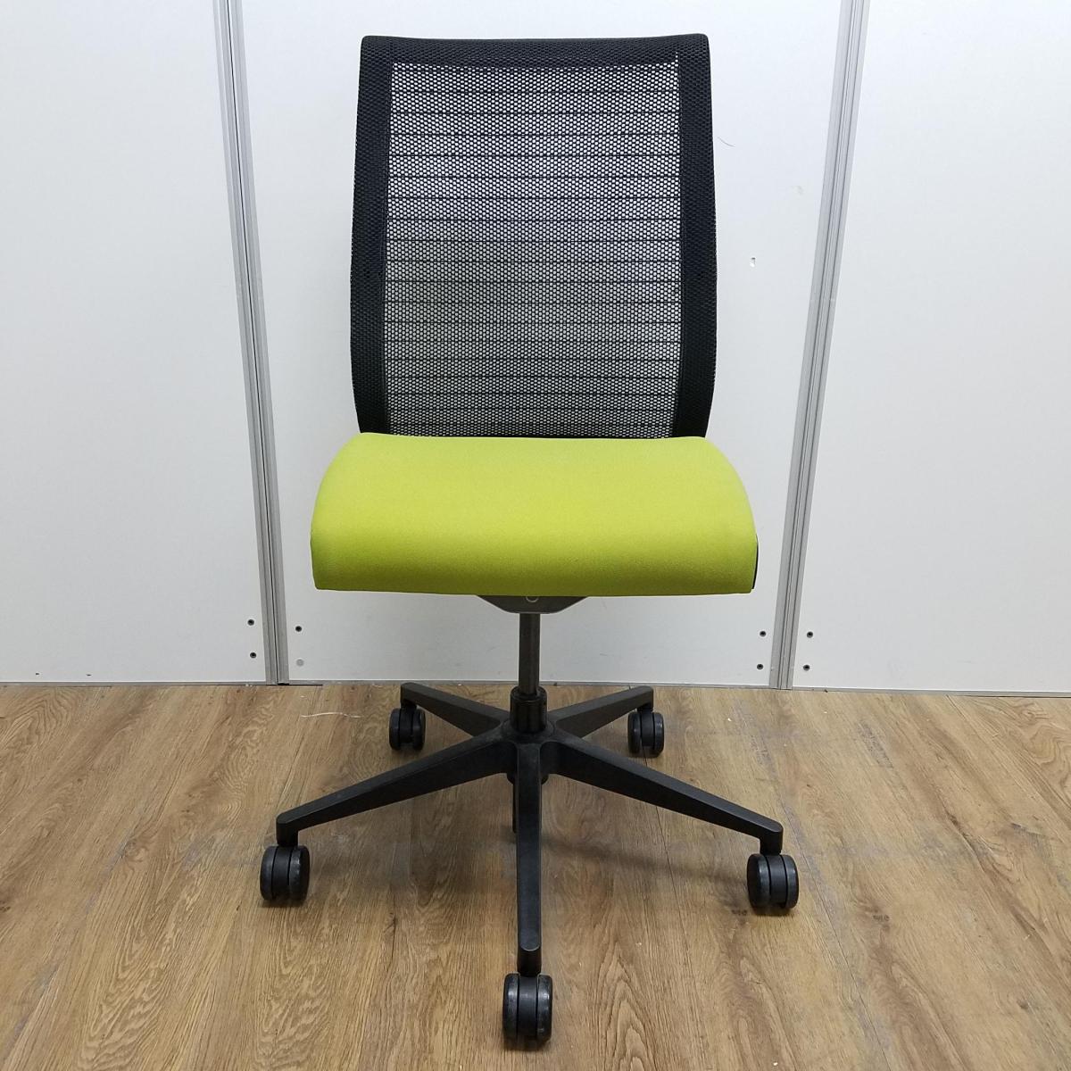【T9】【K7】【商品入替のため、残り4脚限り】スチールケース製 シンクシリーズ グリーン メッシュバック ブラックフレーム 長時間の着座ストレスを軽減! 座る人を「考えた」チェア! テレワークにもオススメ! 肘無しハイバックチェア!!- 京都東寺店