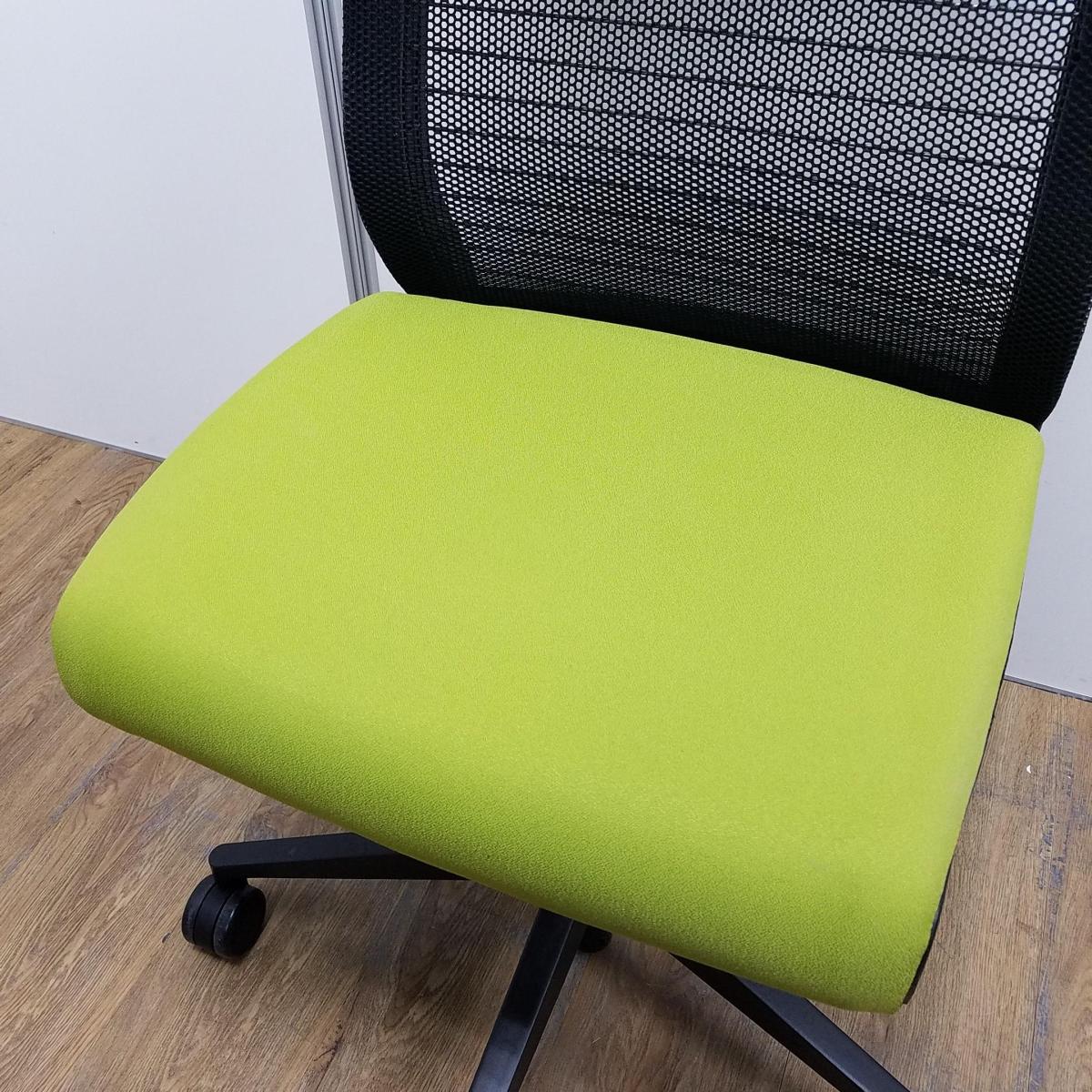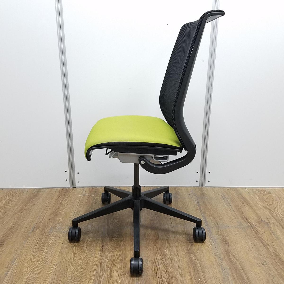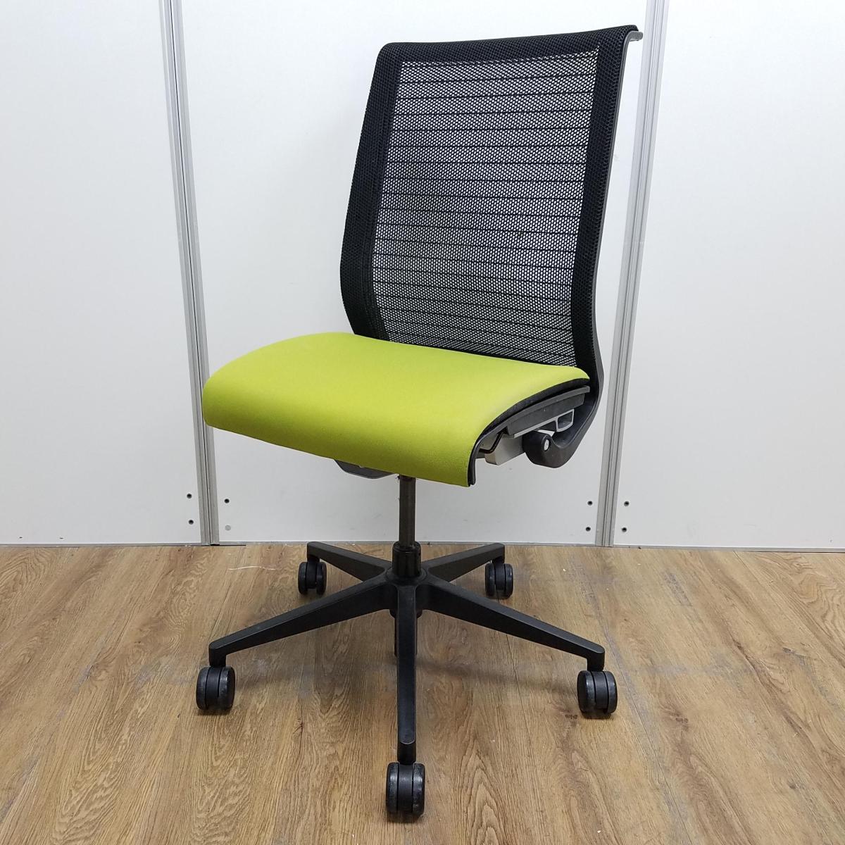 【T9】【K7】【商品入替のため、残り4脚限り】スチールケース製 シンクシリーズ グリーン メッシュバック ブラックフレーム 長時間の着座ストレスを軽減! 座る人を「考えた」チェア! テレワークにもオススメ! 肘無しハイバックチェア!!- 京都東寺店