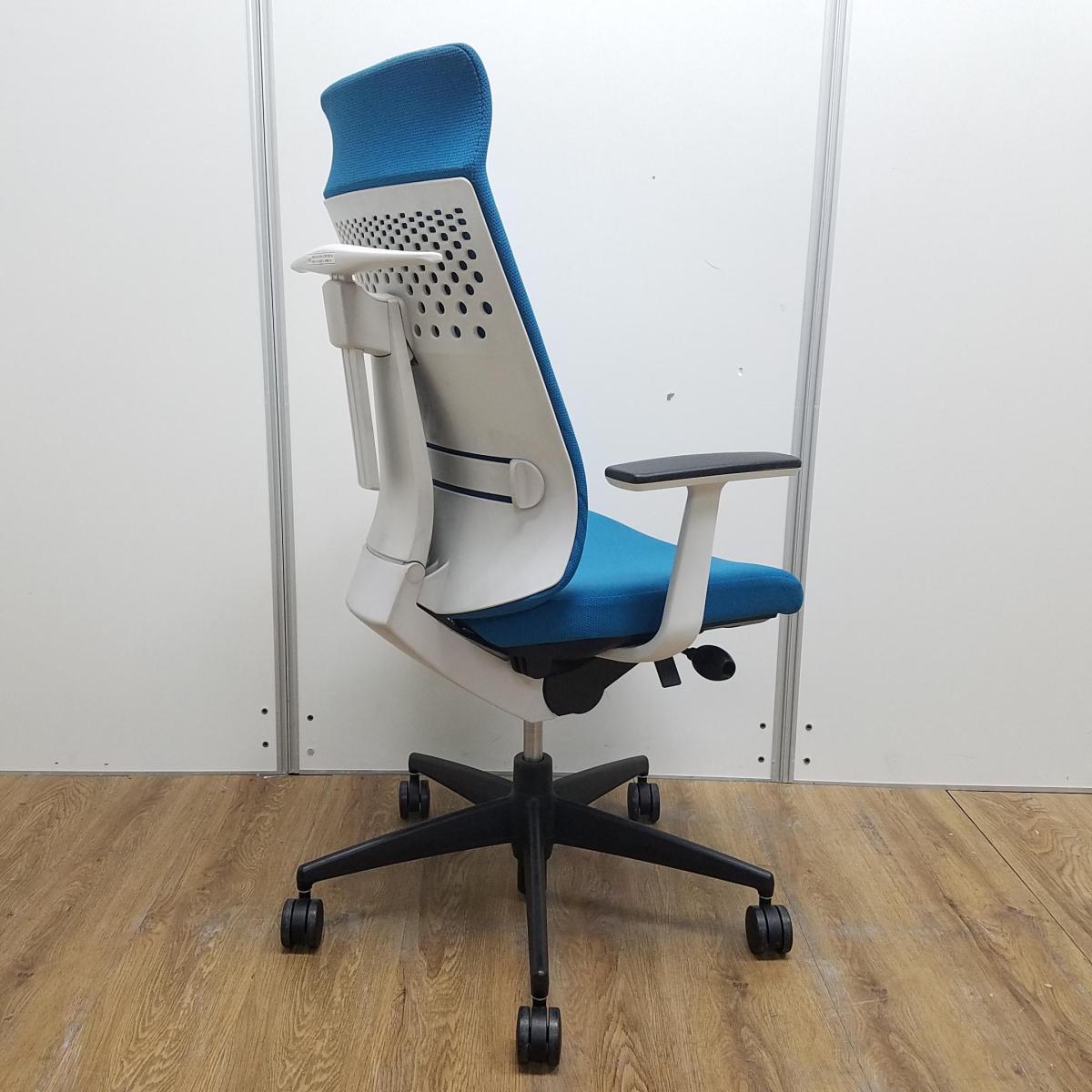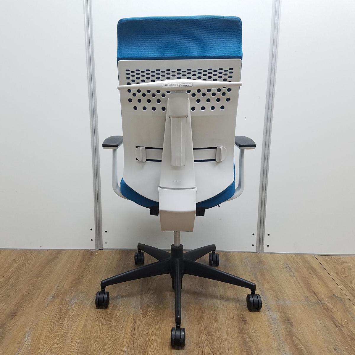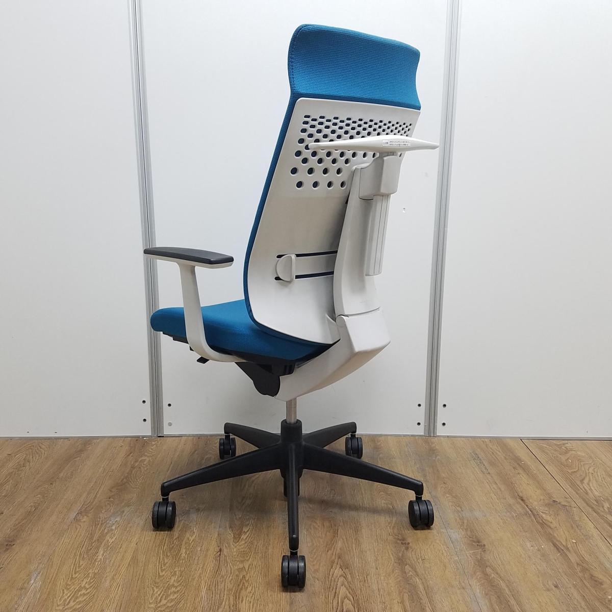 【レア】【商品入替のため、残り2脚限り】コクヨ製 ウィザード2シリーズ ターコイズ ホワイトフレーム ランバーサポート コートハンガー 固定肘 アディショナルバック エクストラ肘付きチェア!!- 京都東寺店