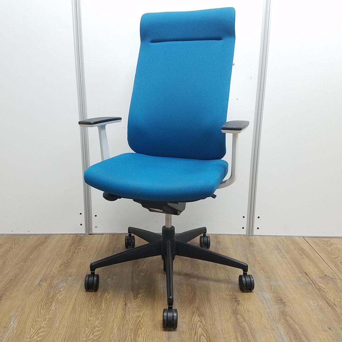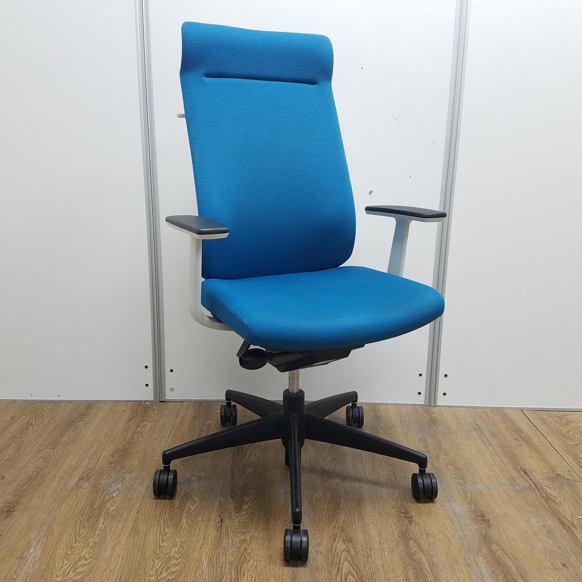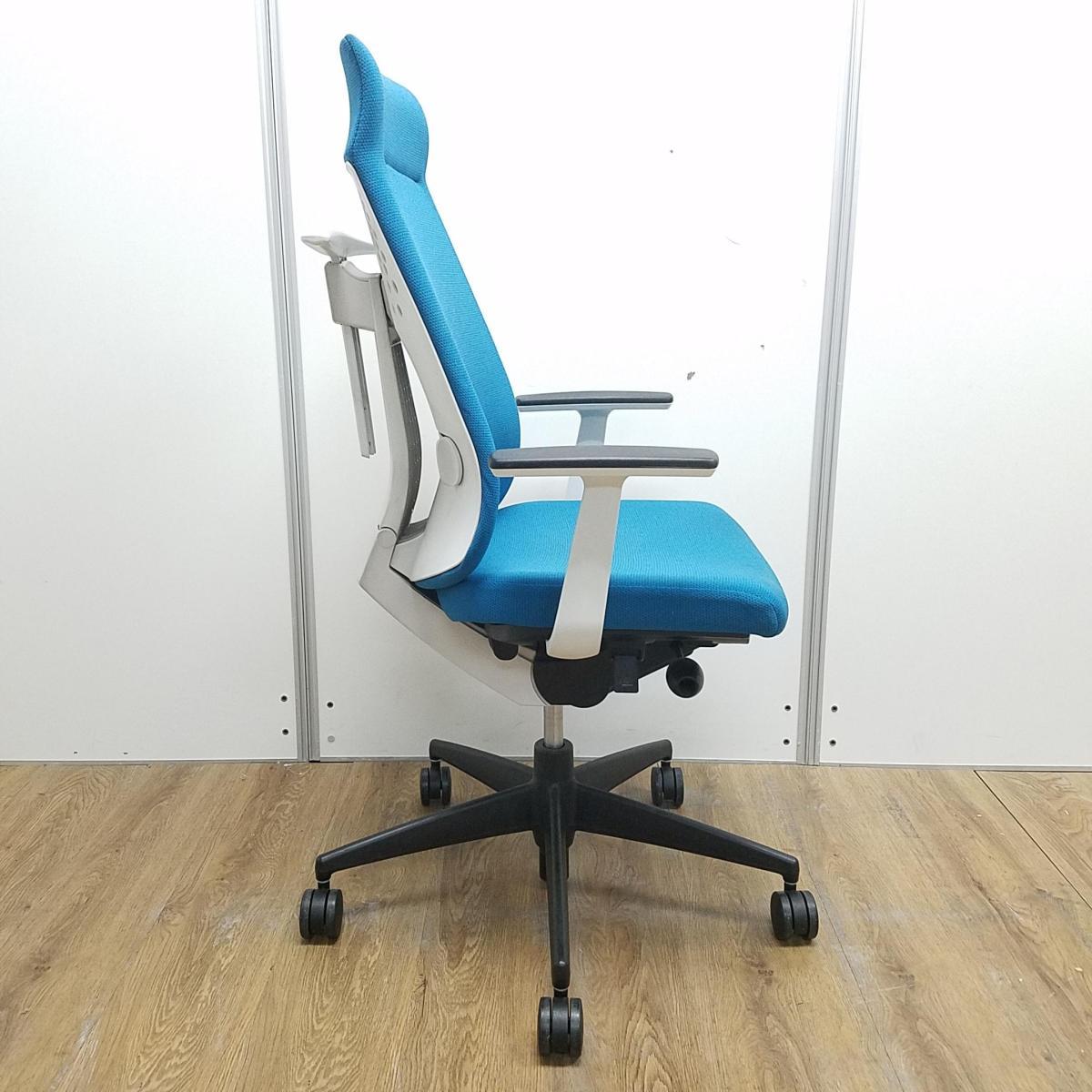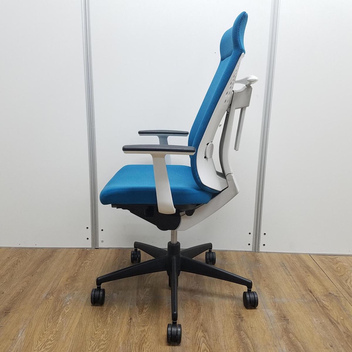 【レア】【商品入替のため、残り2脚限り】コクヨ製 ウィザード2シリーズ ターコイズ ホワイトフレーム ランバーサポート コートハンガー 固定肘 アディショナルバック エクストラ肘付きチェア!!- 京都東寺店