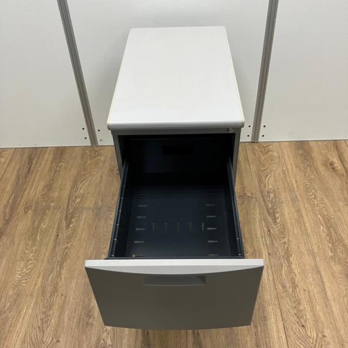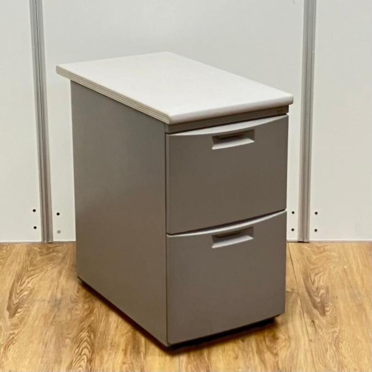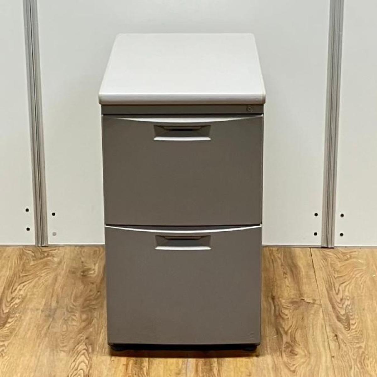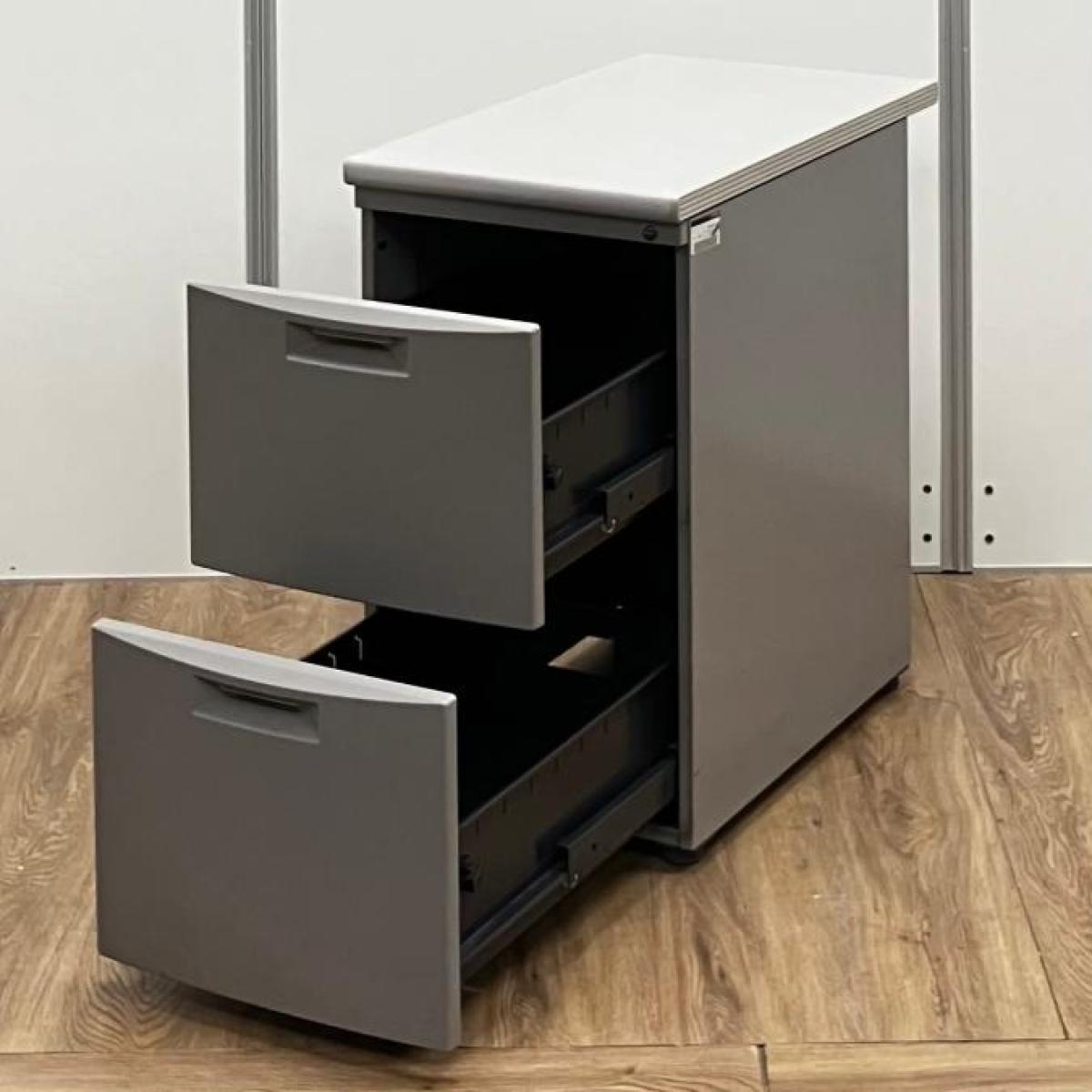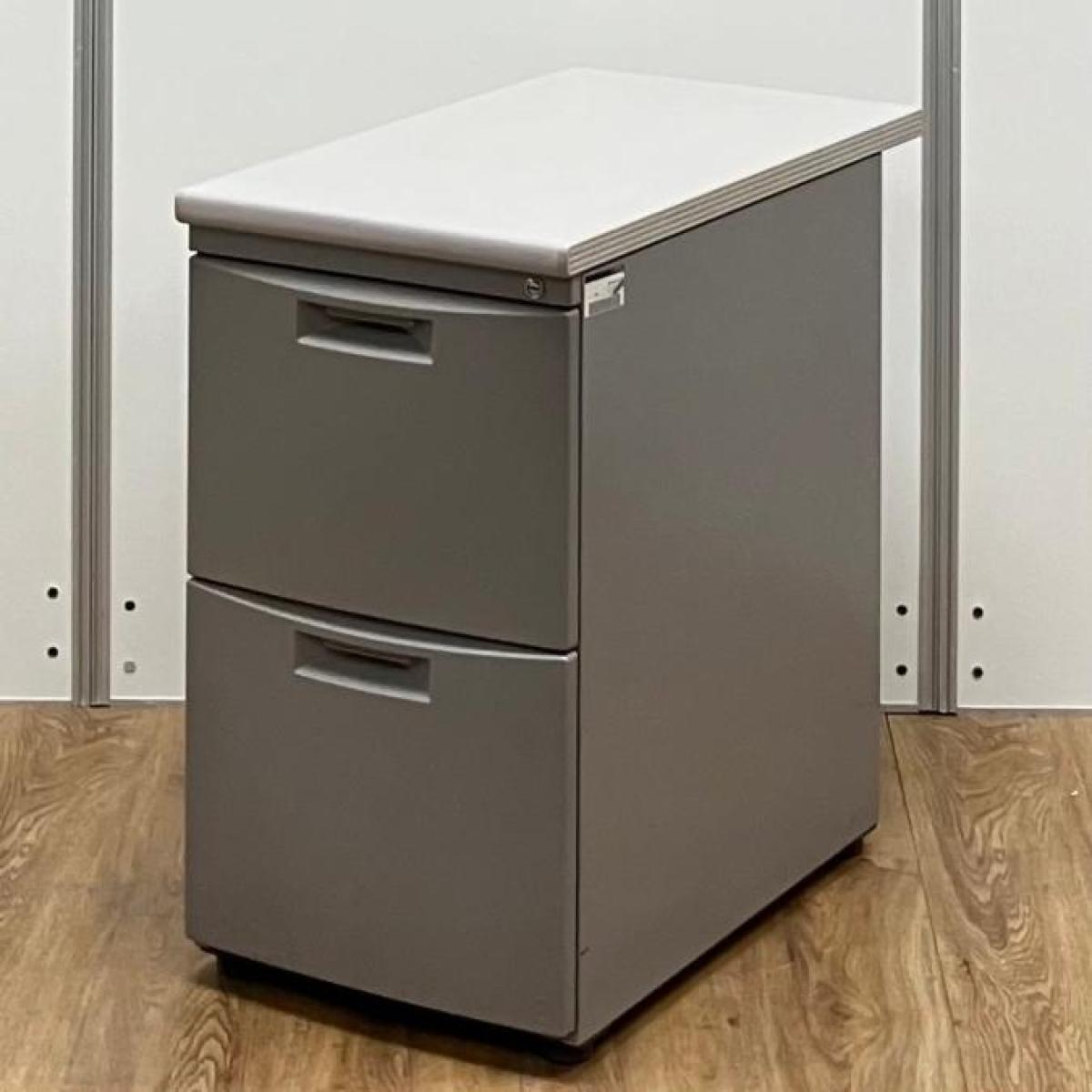 イトーキ CZシリーズ 2段脇机 鍵付き シリンダー錠 グレー デスク横に置いて作業スペースの拡張を ※樹脂部分に日焼け若干あり