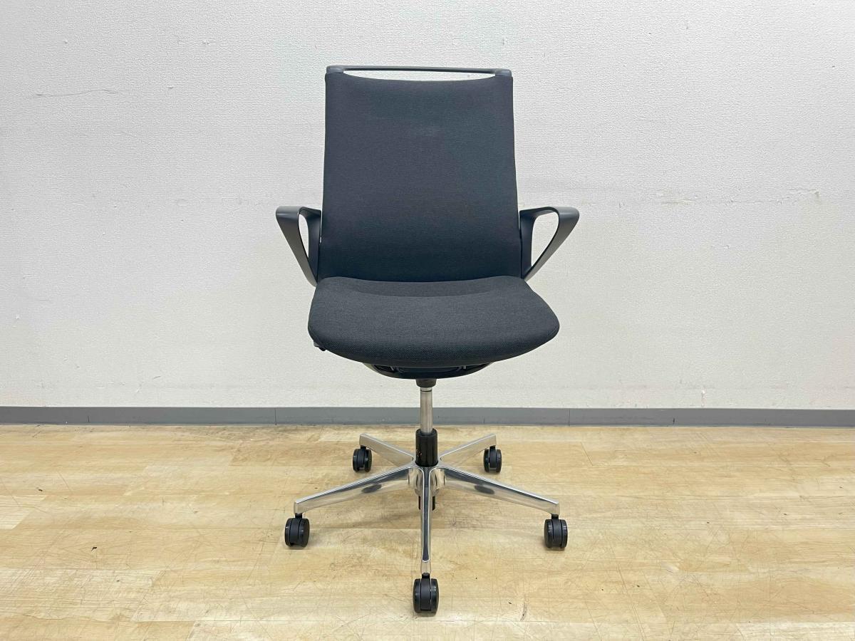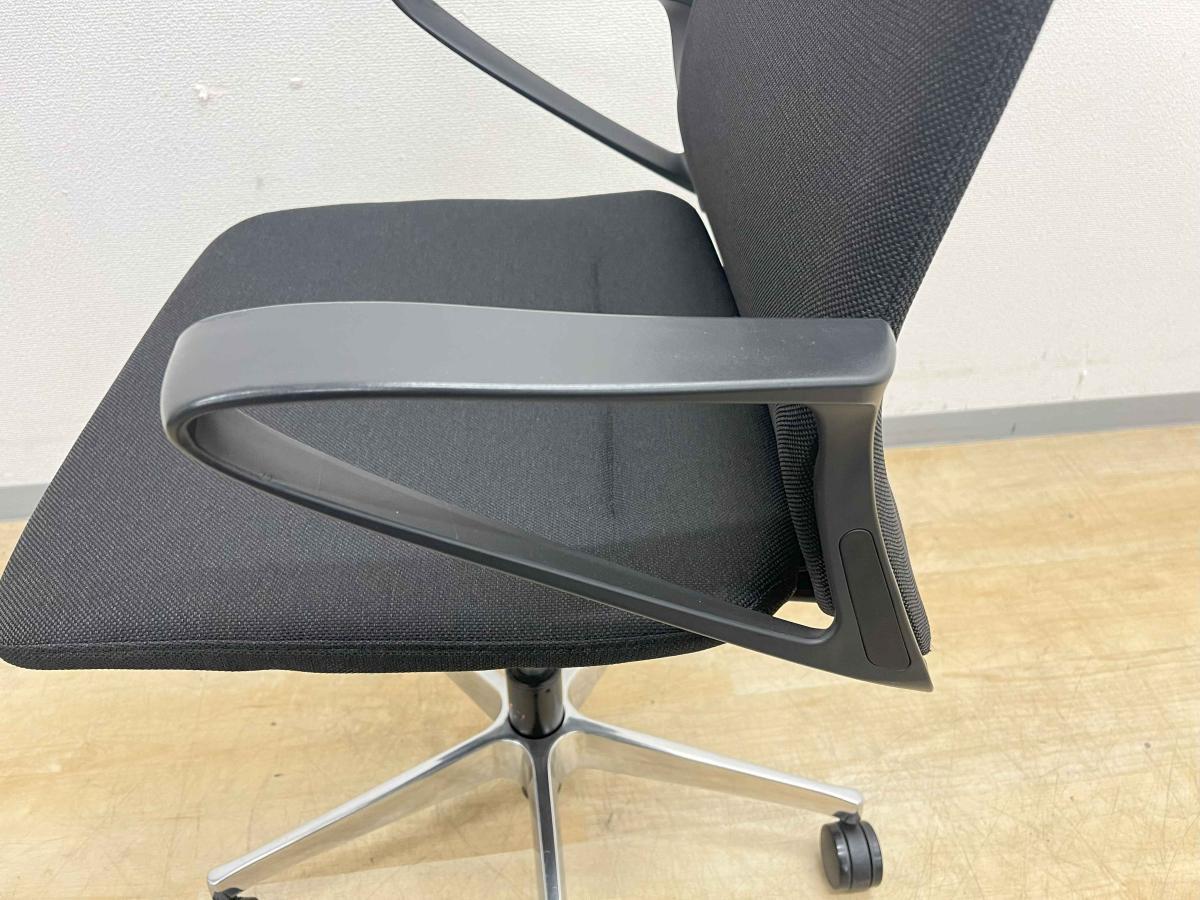 【在庫入替セール】オカムラ モード デザインアーム搭載 ミドルバック ブラック×アルミ脚 張地:クロス(プレーン) 高いデザイン性×シンプルかつ操作性のある機能
