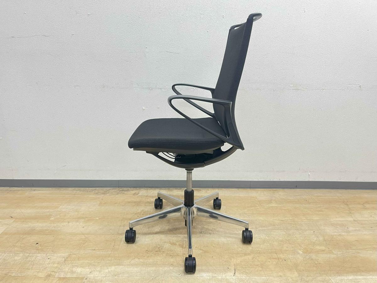 【在庫入替セール】オカムラ モード デザインアーム搭載 ミドルバック ブラック×アルミ脚 張地:クロス(プレーン) 高いデザイン性×シンプルかつ操作性のある機能