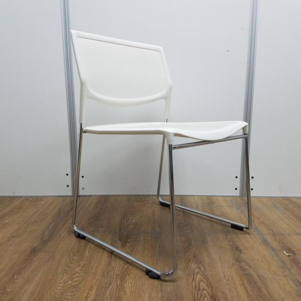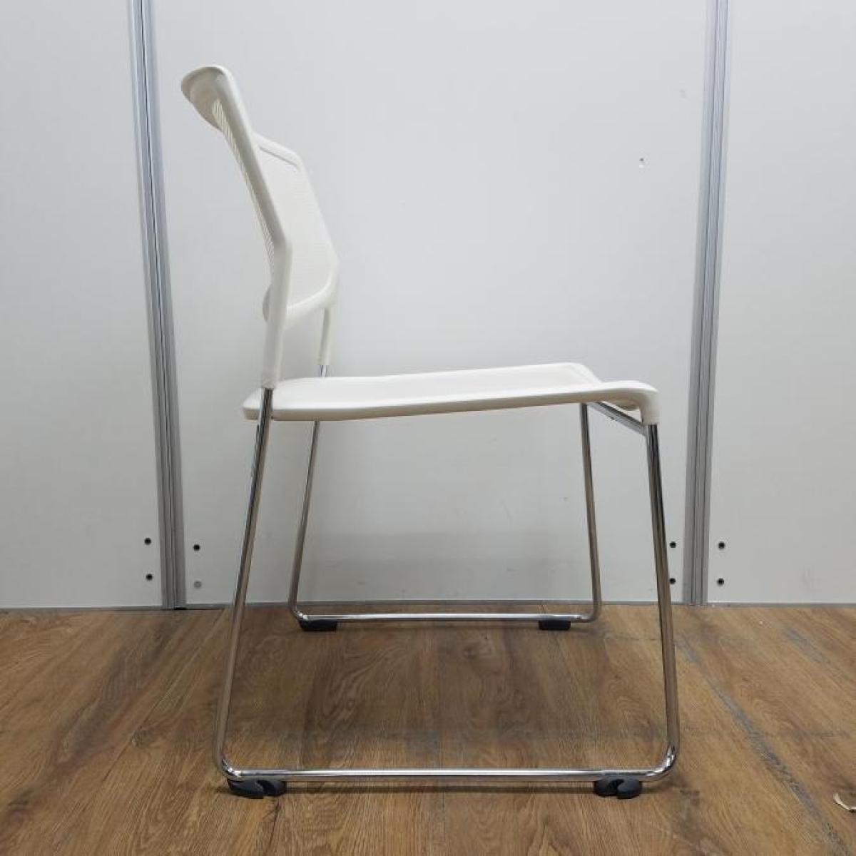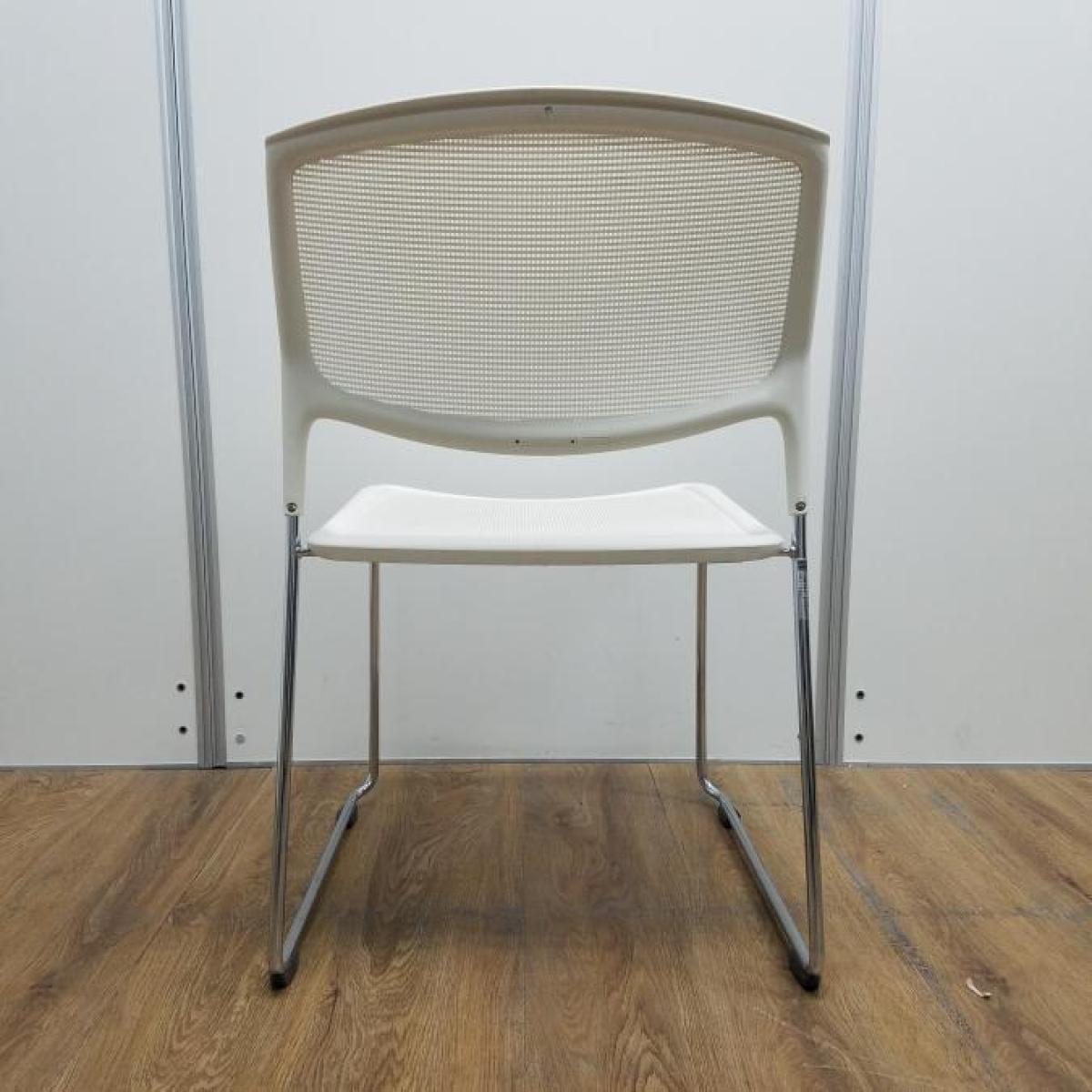 重ねて保管出来てスペースの有効活用に ホワイト 座面メッシュ仕様 スタッキングチェア!!- 東大阪店