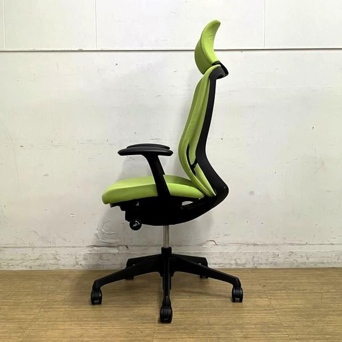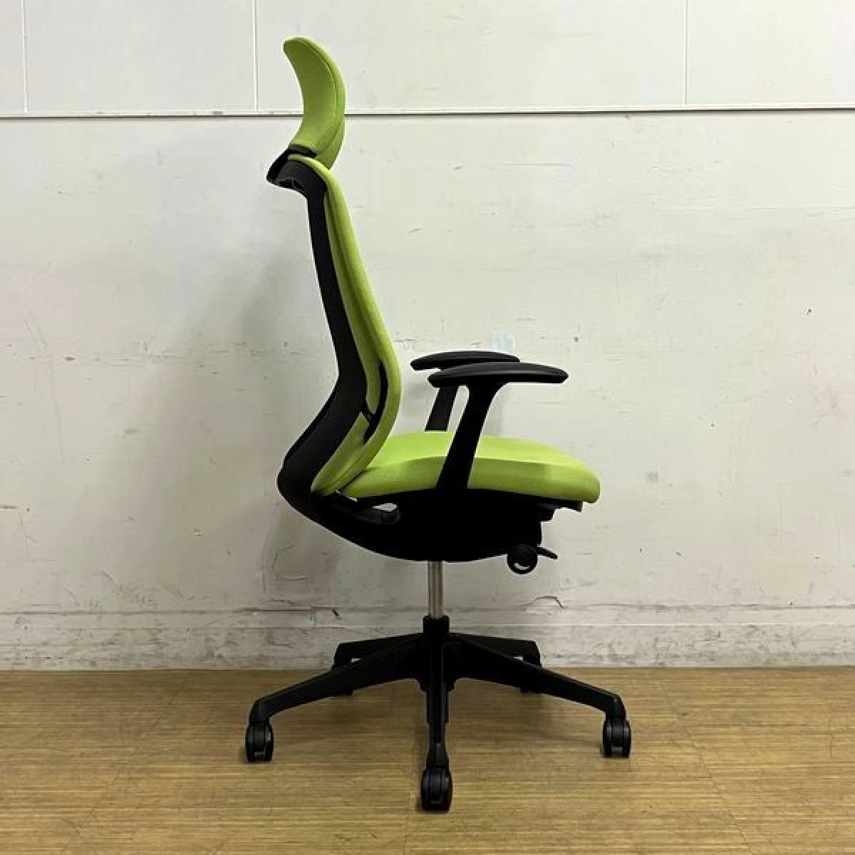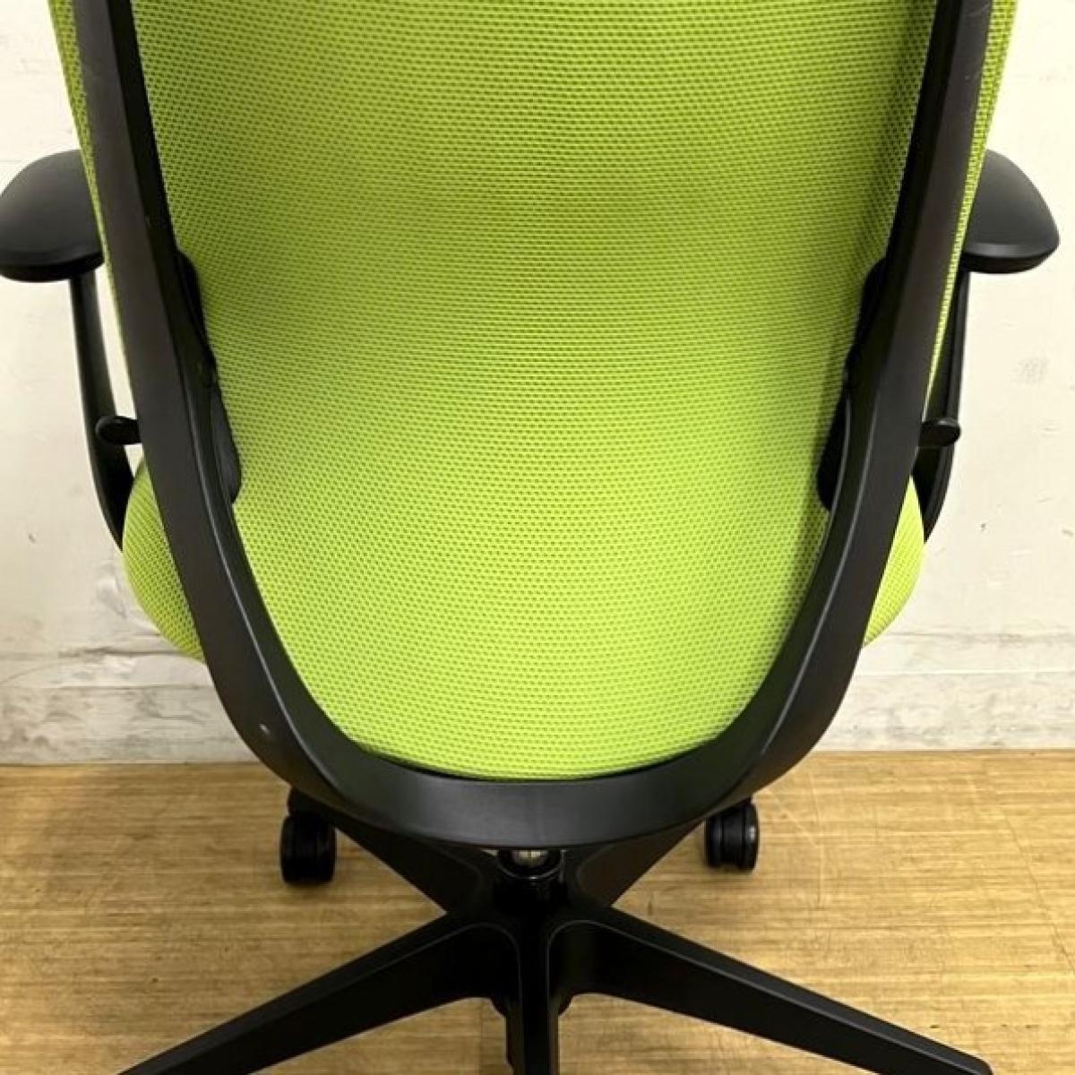 【シミ・汚れがあるため特価】オカムラ シルフィー エクストラハイバック(固定ヘッドレスト付き) 背クッション デザインアーム(固定肘) ライムグリーン×ブラックフレーム 在宅ワーク・テレワーク用におすすめ 前傾機能搭載サーキュラーバリューCO2削減量の算出について