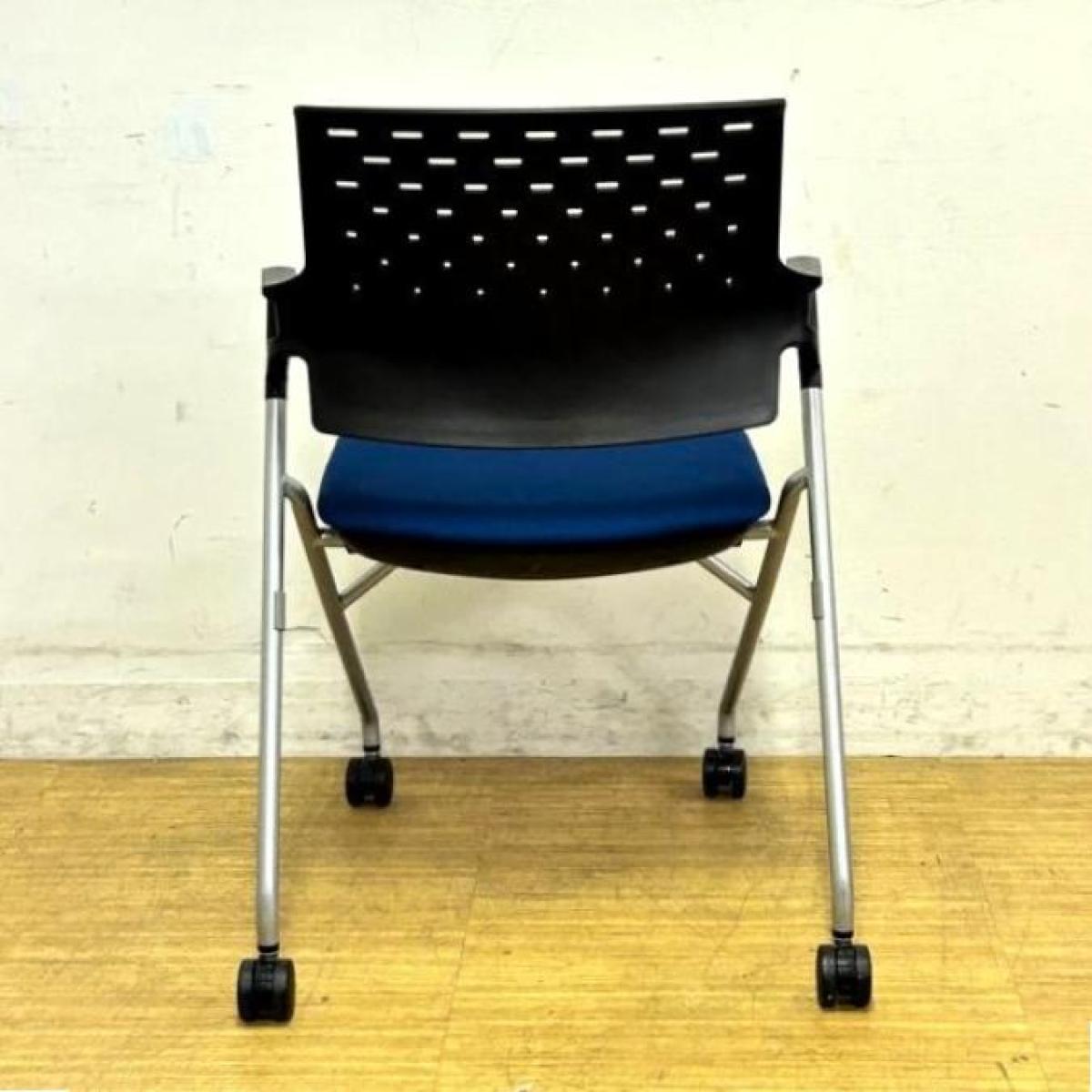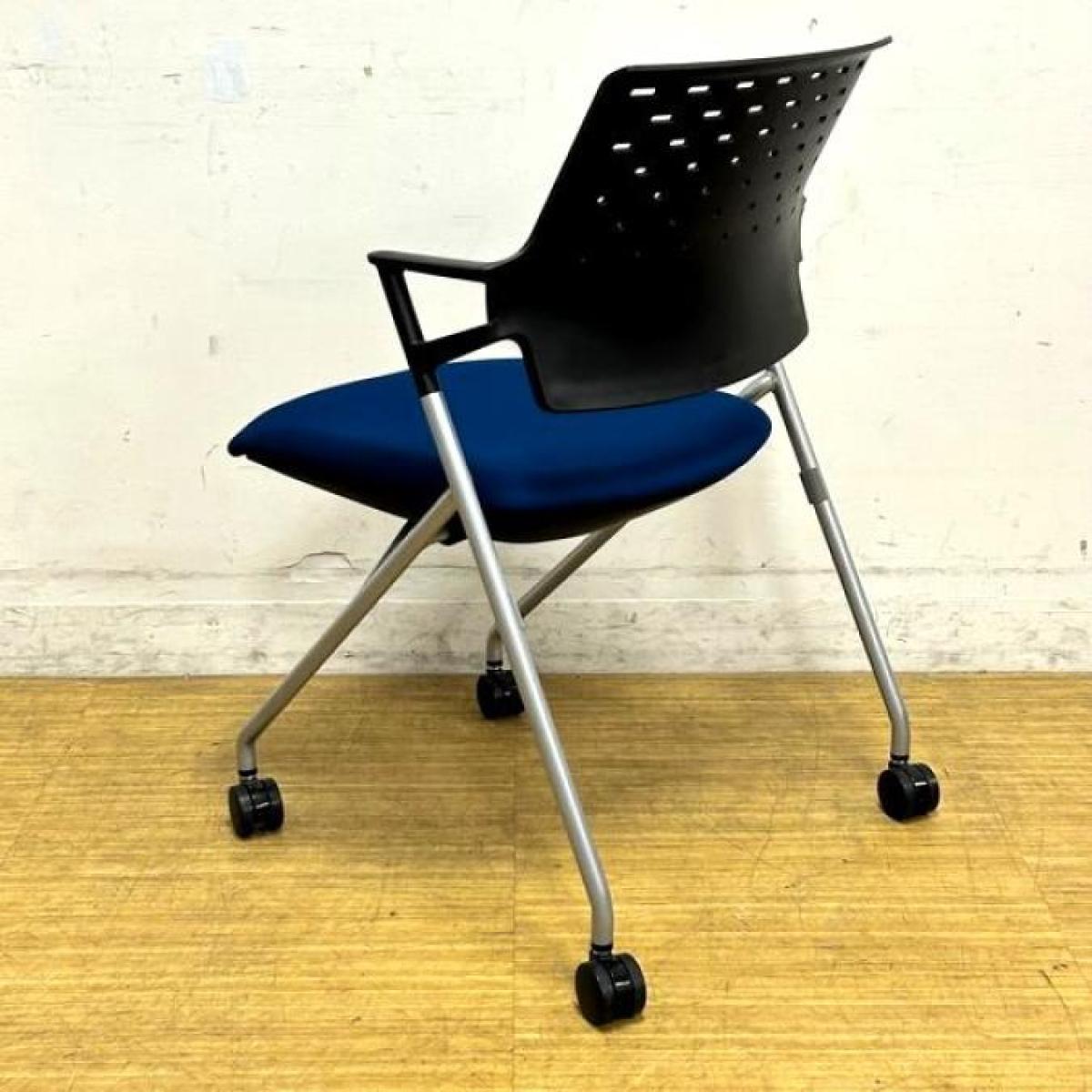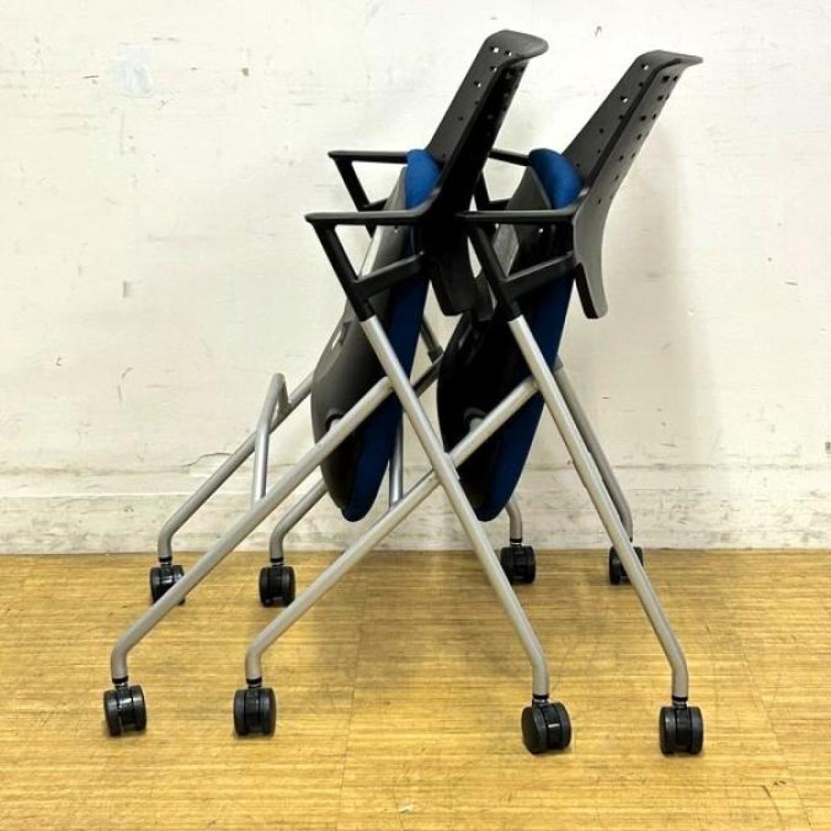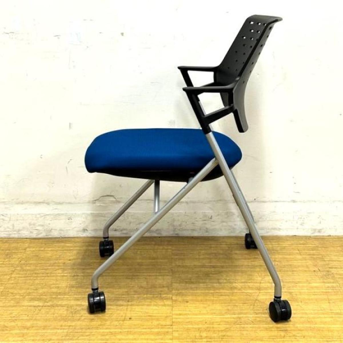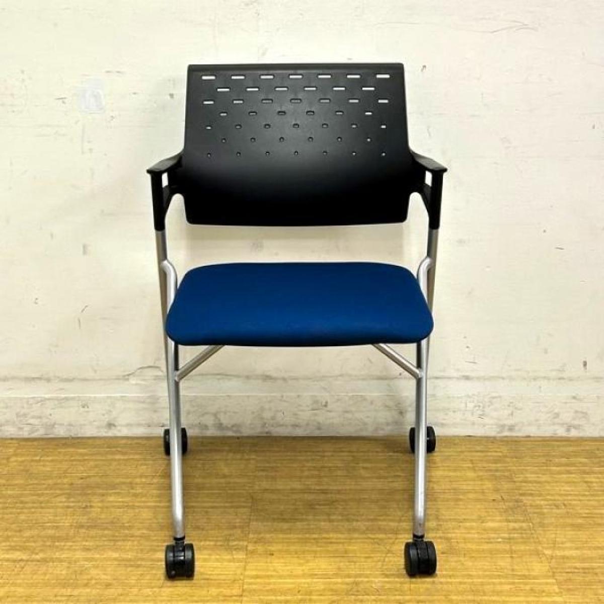 【使わない時は平行スタック!キャスター付きのミーティングチェア!】■コクヨ(KOKUYO)製 ピエガ(Piega) ミーティングチェア ネスティング ■背面 樹脂タイプ ■キャスター付き ■ダークブルー- なんば日本橋店