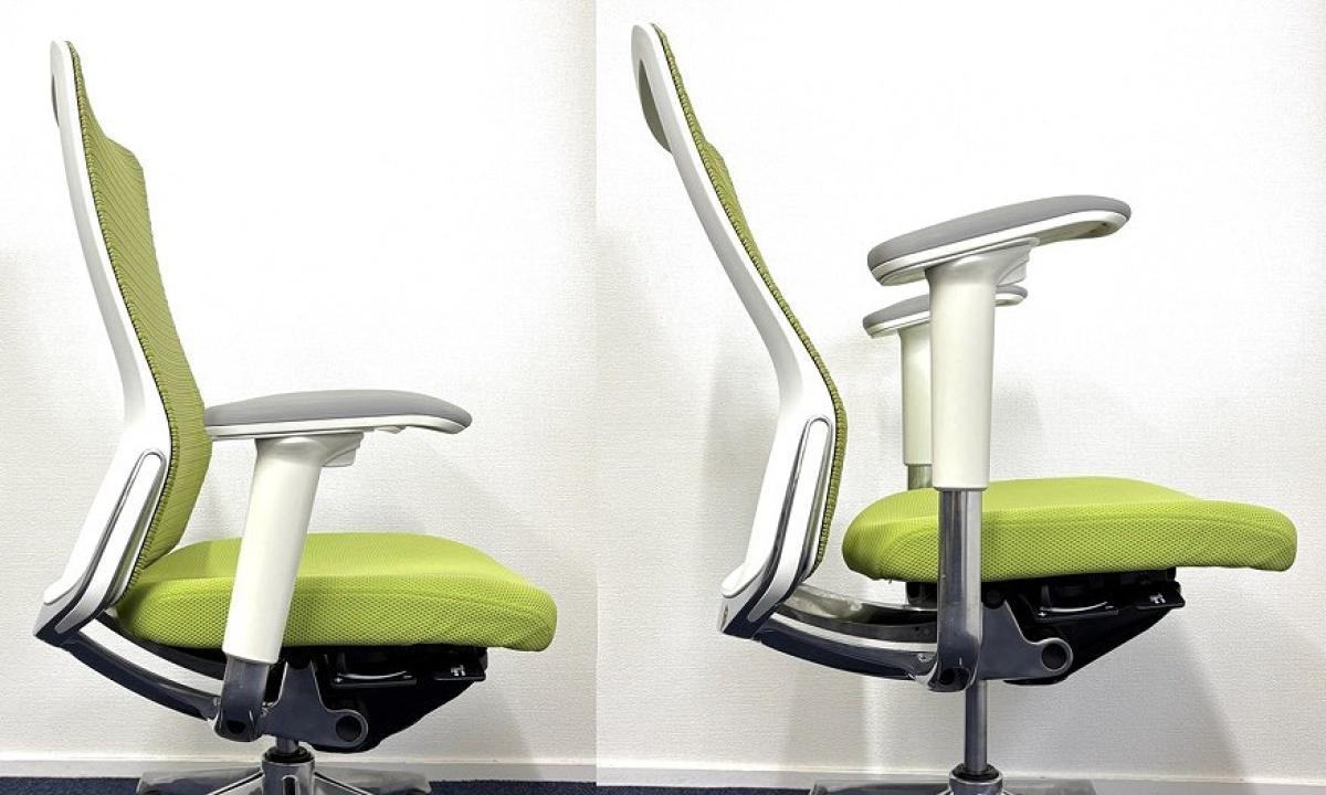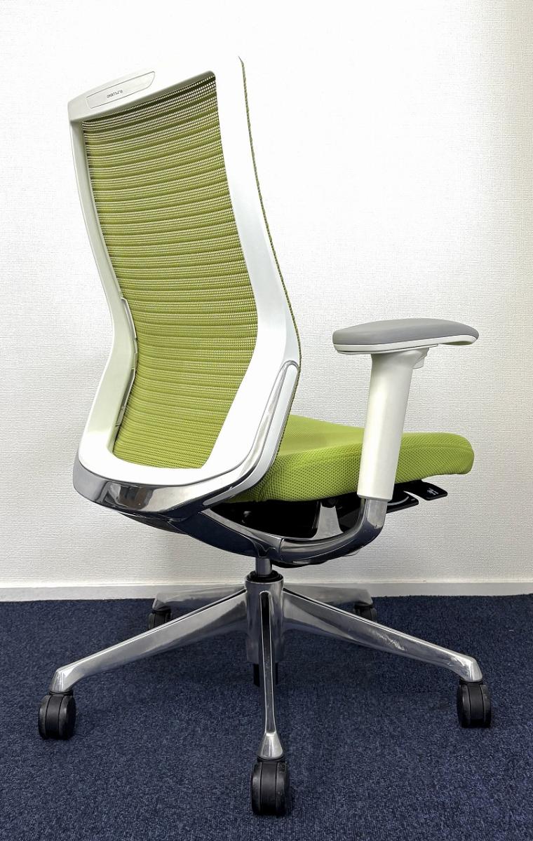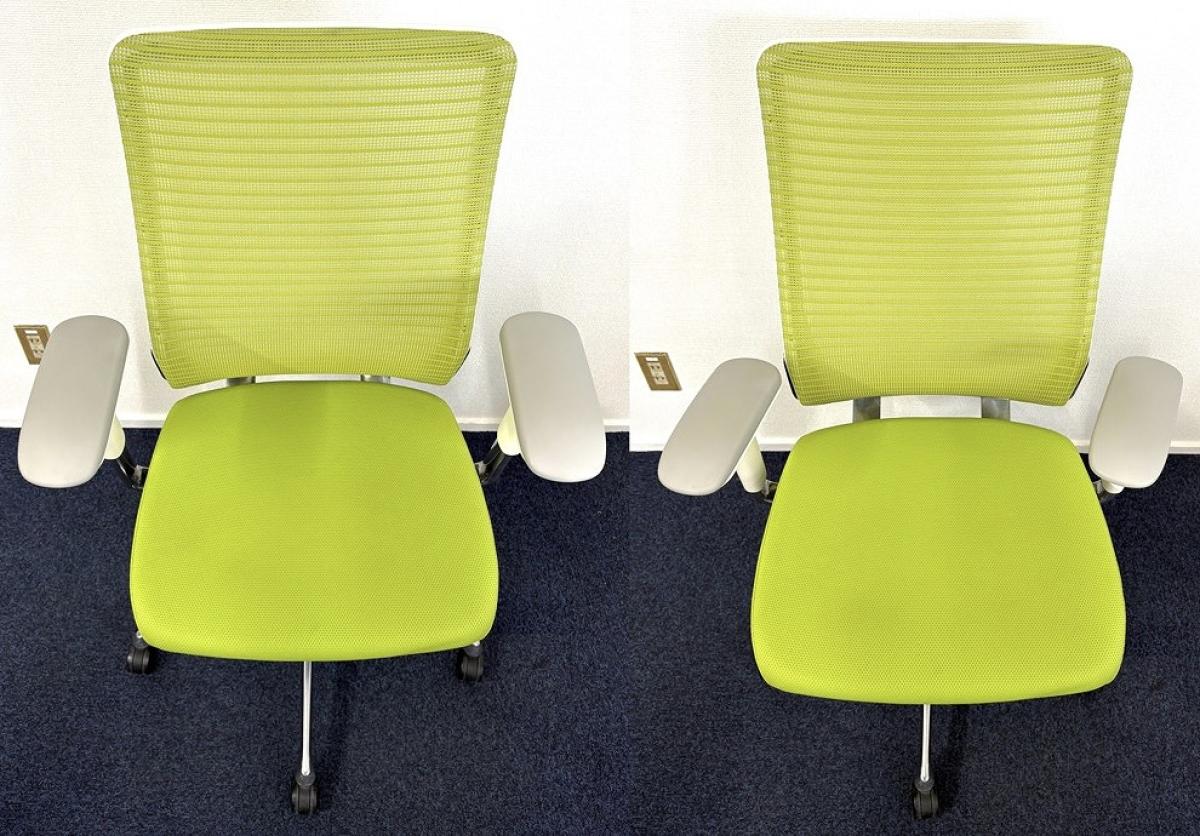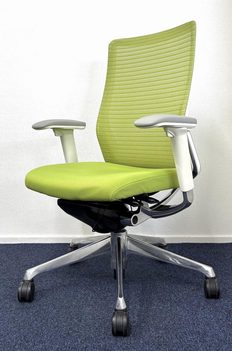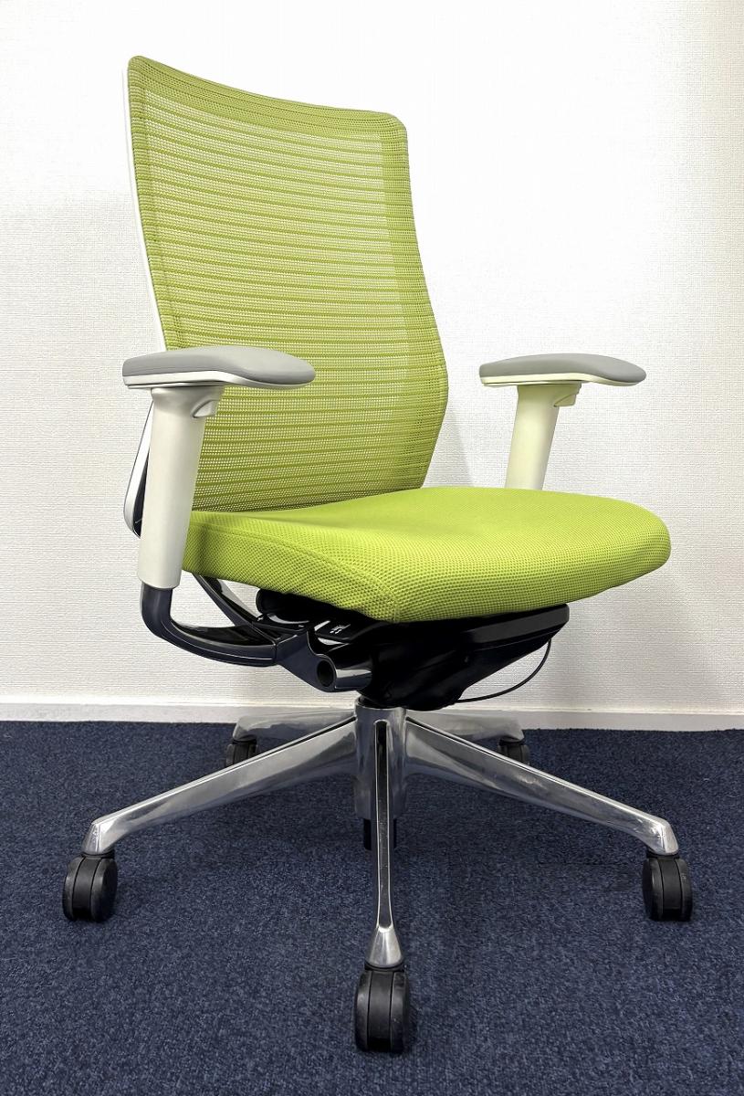【どんな空間にも調和するデザインと最上級の操作性!】【人気のメッシュチェア】■オカムラ(okamura) コーラル(Choral) ハイバック 肘付き ■メッシュ背面 ■可動肘つき ■ライムグリーン- なんば日本橋店