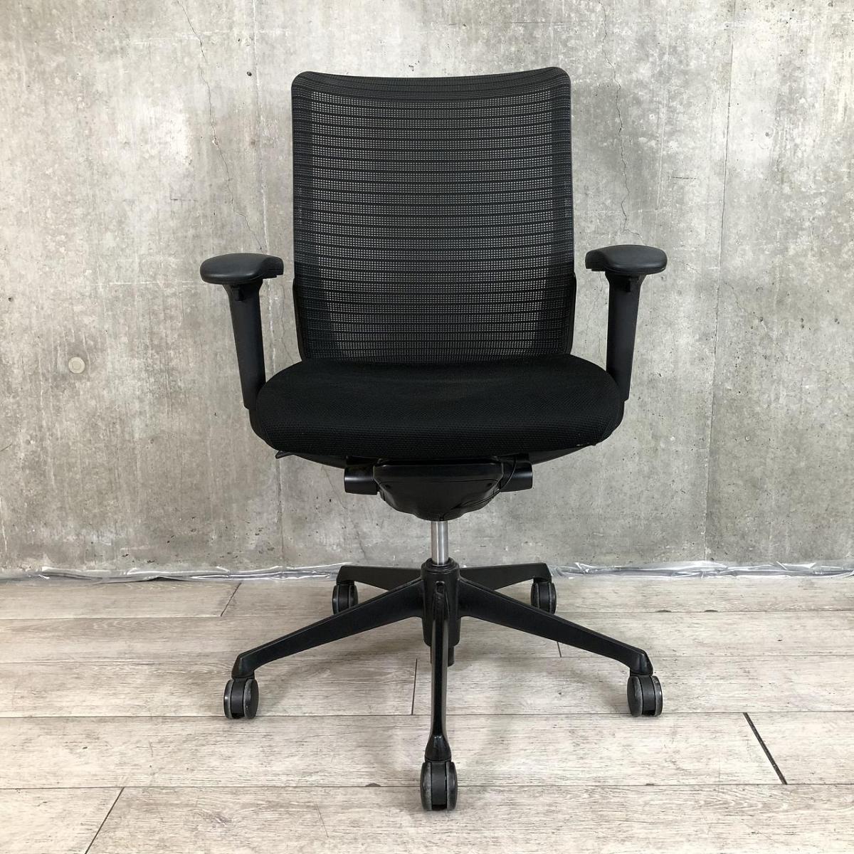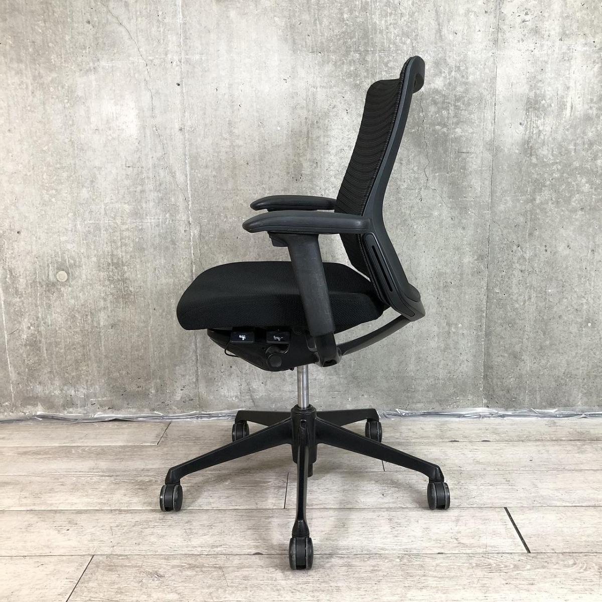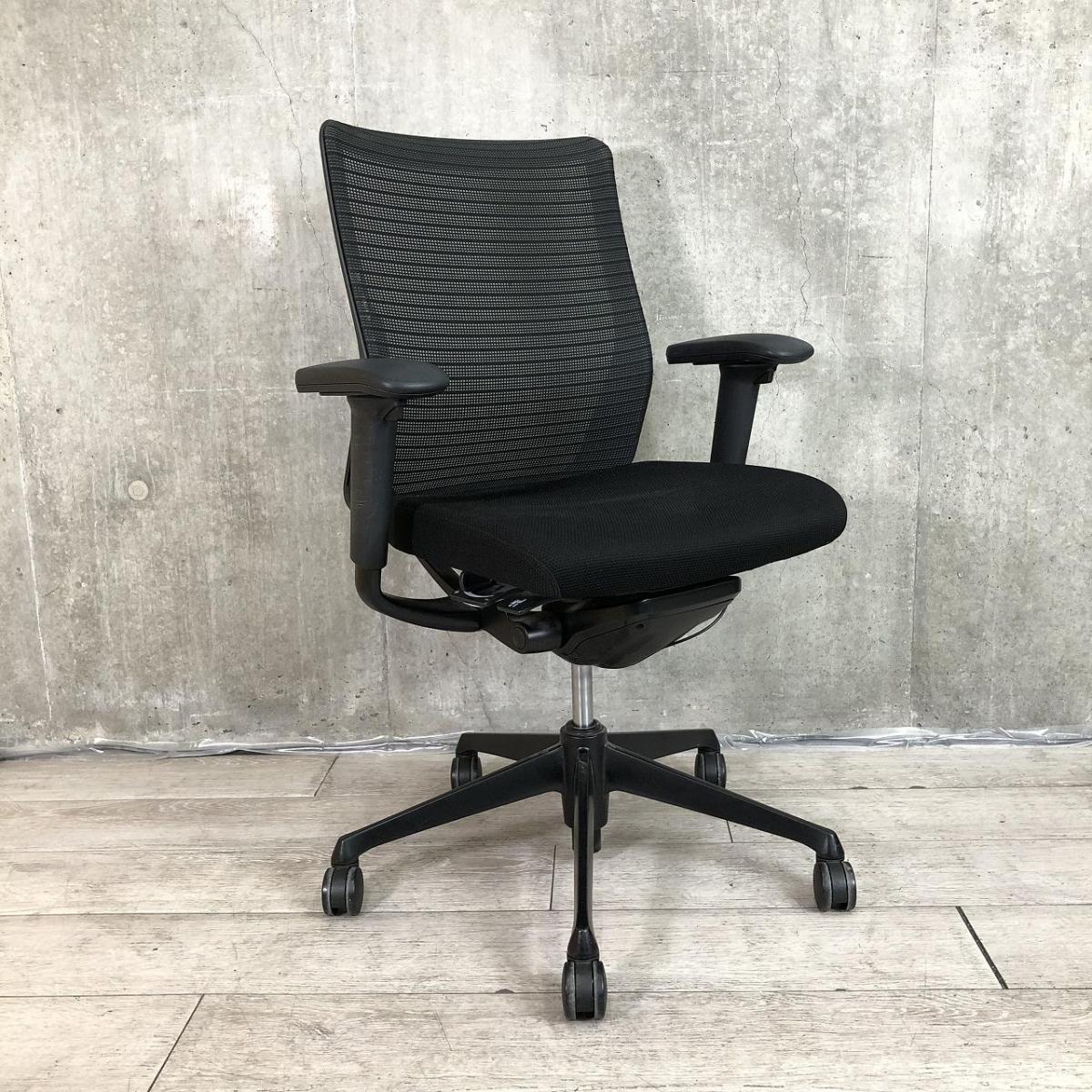 【関東倉庫在庫品】【オフィスにオススメの疲れにくいチェア!】■オカムラ製 コーラル 肘付ミドルバックチェア ■ブラック【弊社使用欄:A00984465】【ECBMC】サーキュラーバリューCO2削減量の算出について