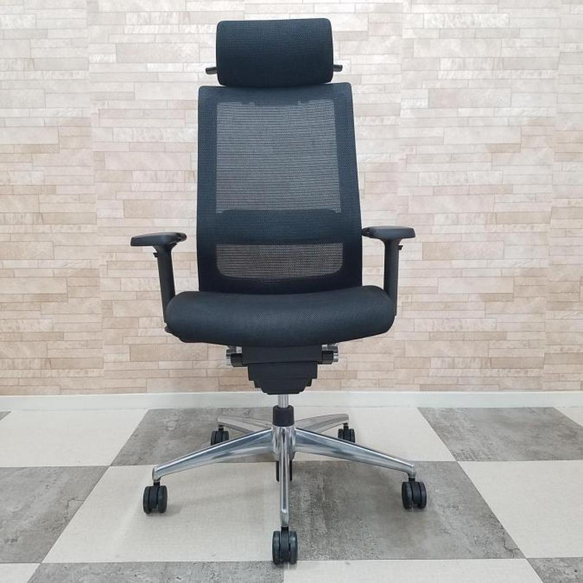 【スマートなデザインの上質チェア!】■コクヨ製 エアフォート 肘付ハイバックチェア ■ブラック ランバーサポート付き 可動肘