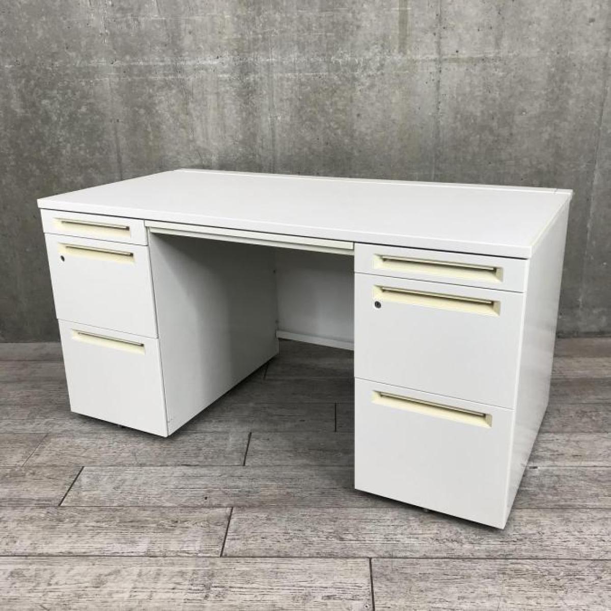 定番/大人気/希少 オカムラ(okamura)製 アドバンス 両袖机 幅1400㎜ ■ホワイト ■シリンダー錠