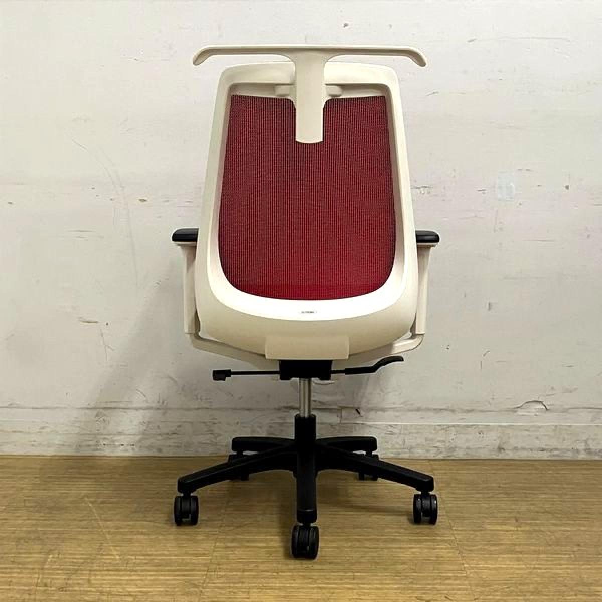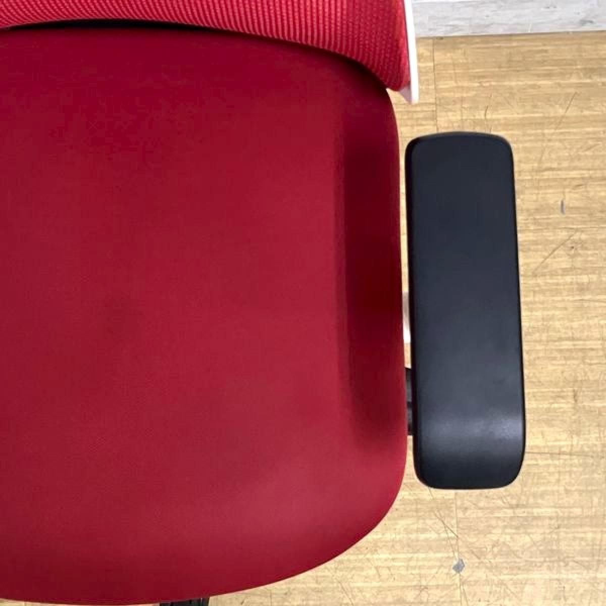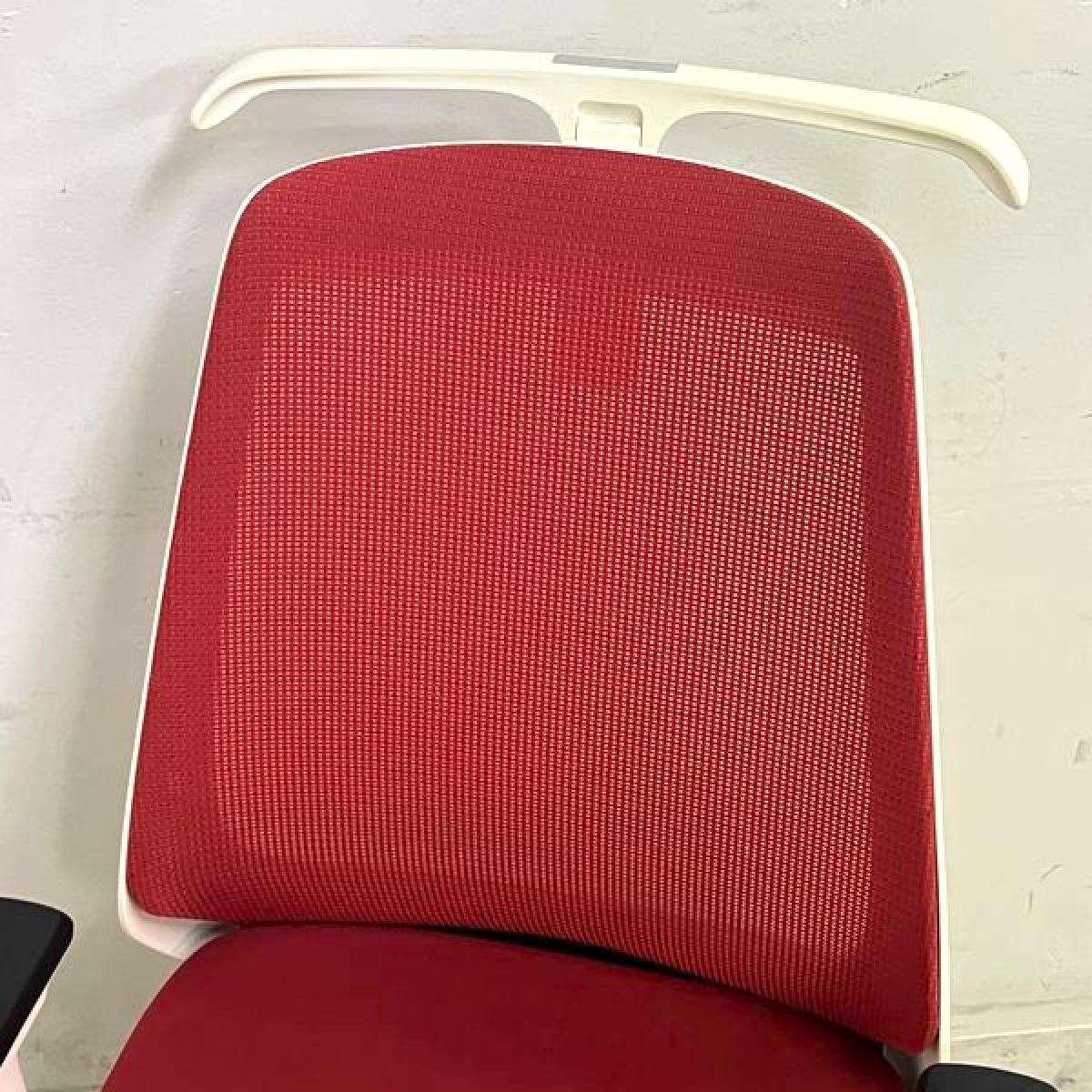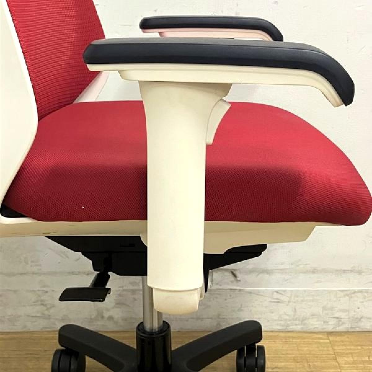【座面シミがあるため特価品】イトーキ ノナ 肘付きチェア 軽快なメッシュで爽やかな使い心地 レッド×ホワイトフレーム コンパクト設計で女性にもおすすめ- 名古屋千種店
