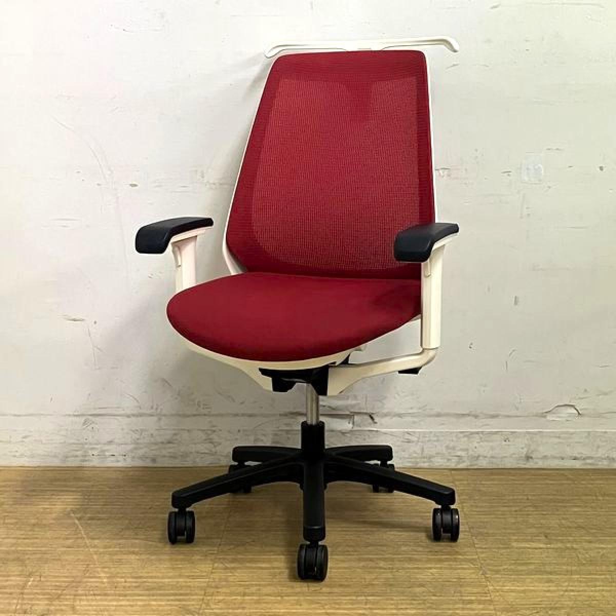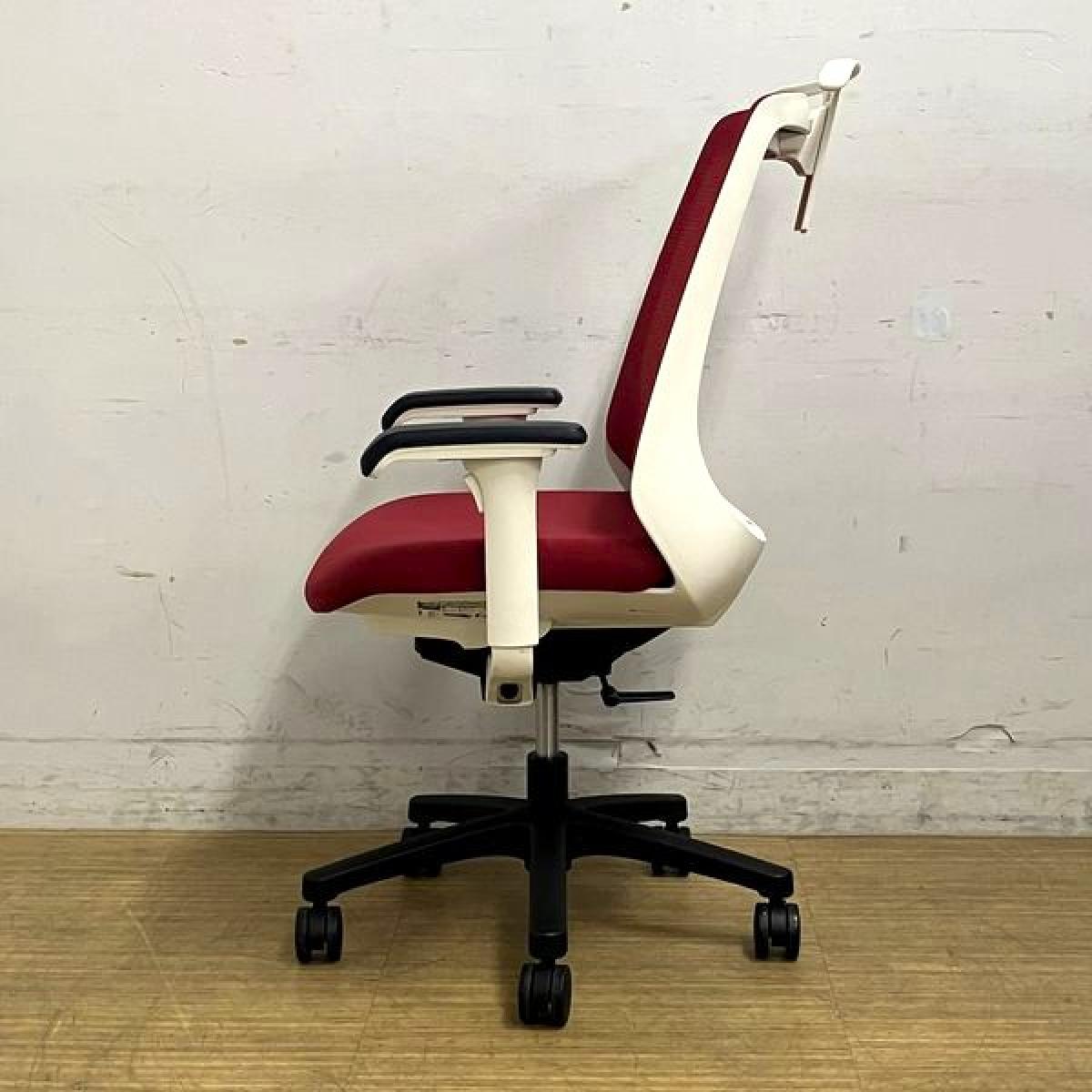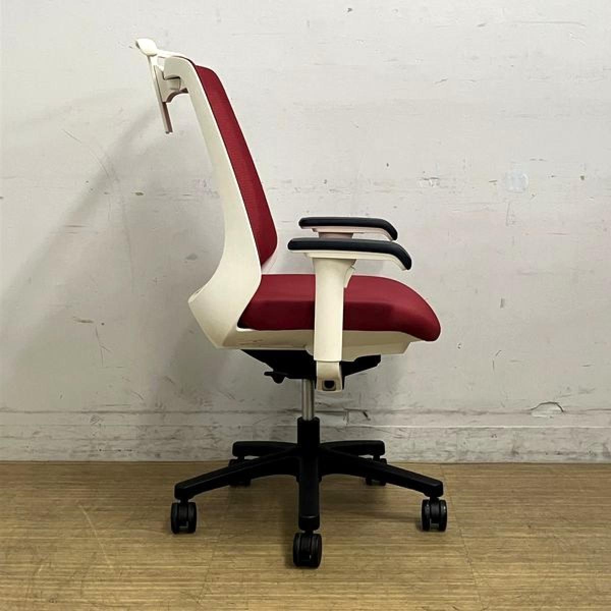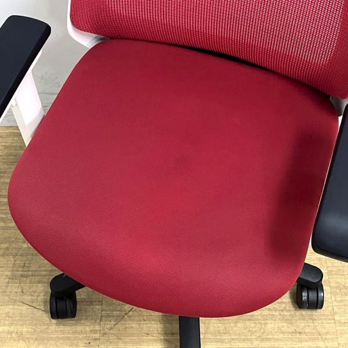 【座面シミがあるため特価品】イトーキ ノナ 肘付きチェア 軽快なメッシュで爽やかな使い心地 レッド×ホワイトフレーム コンパクト設計で女性にもおすすめ- 名古屋千種店