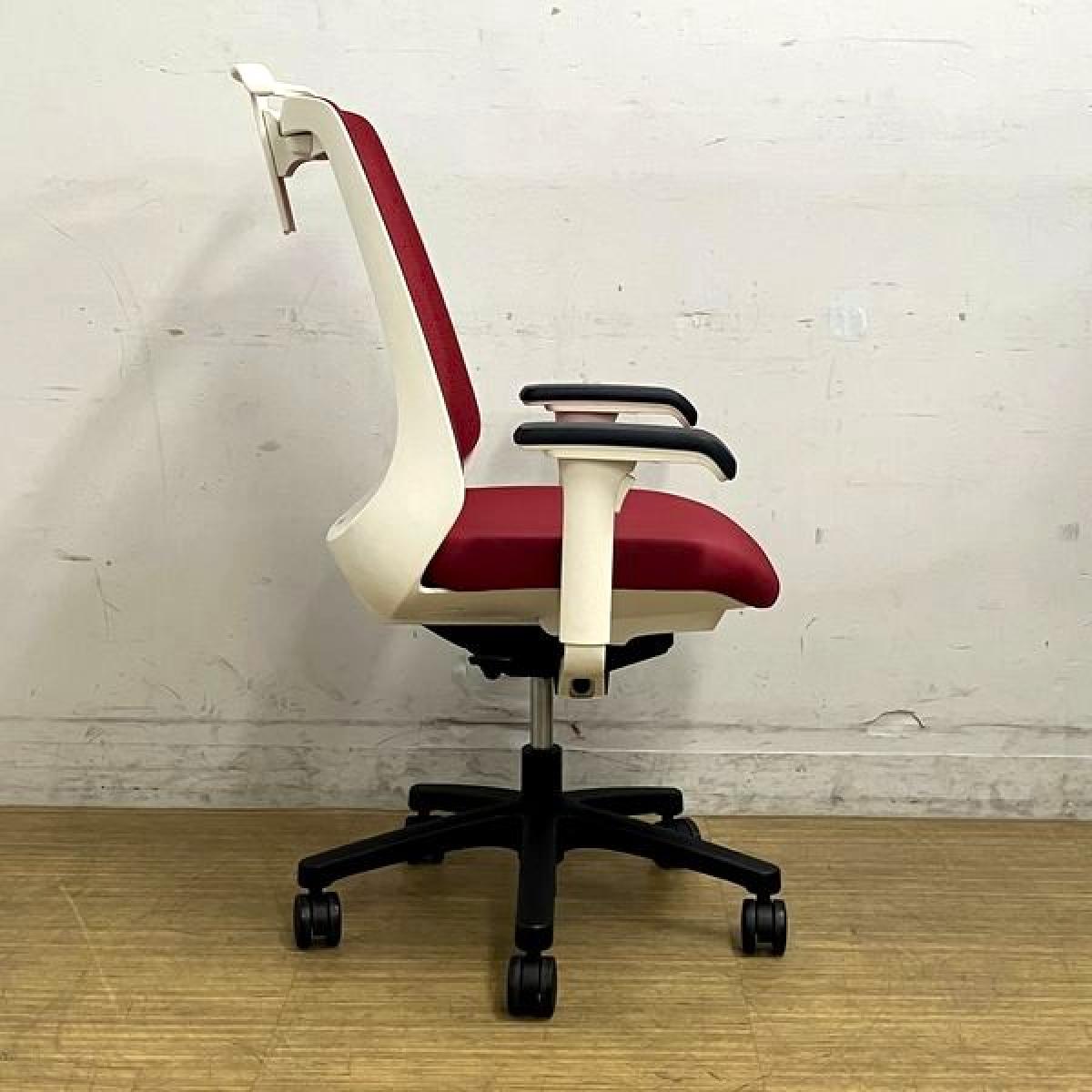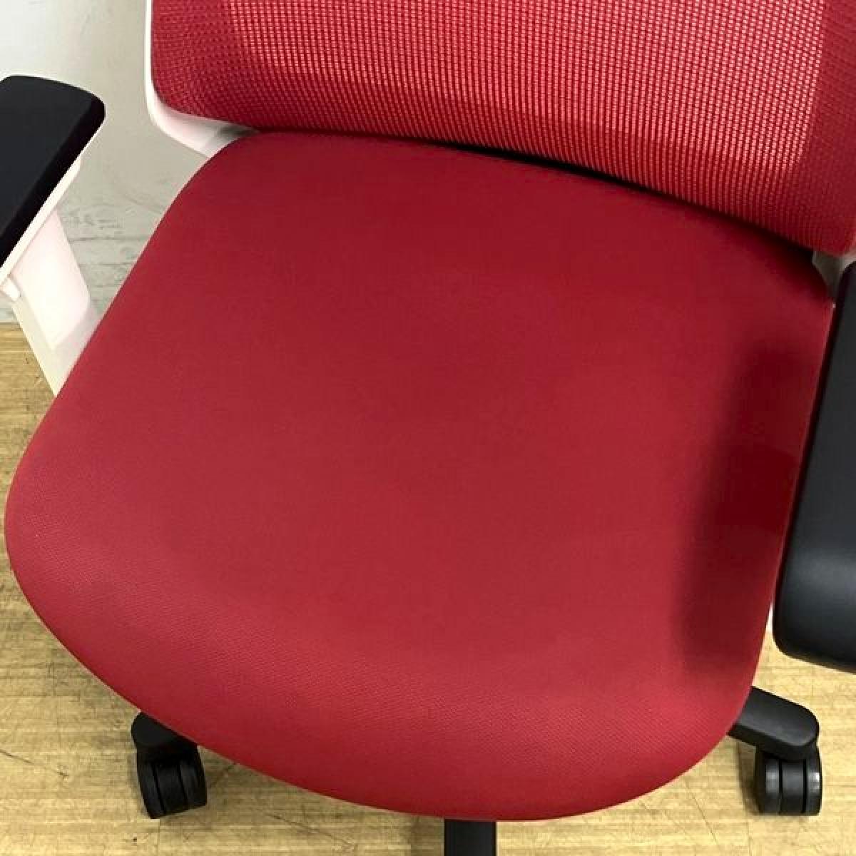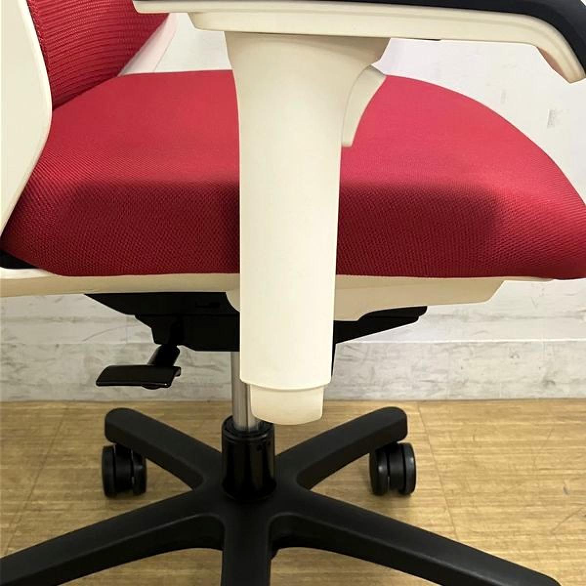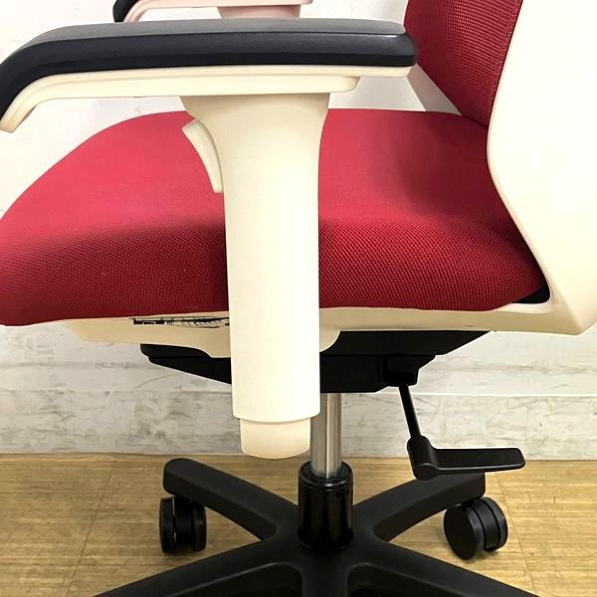 イトーキ ノナチェア アジャスタブル肘 軽快なメッシュで爽やかな使い心地 ラズベリーレッド×ホワイトフレーム コンパクト設計で女性にもおすすめ- 名古屋千種店