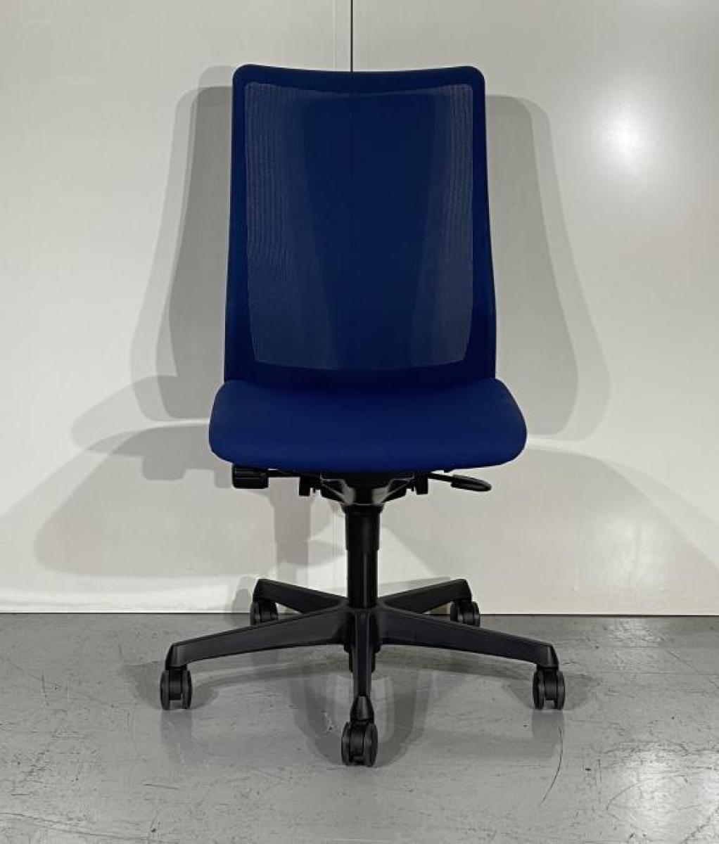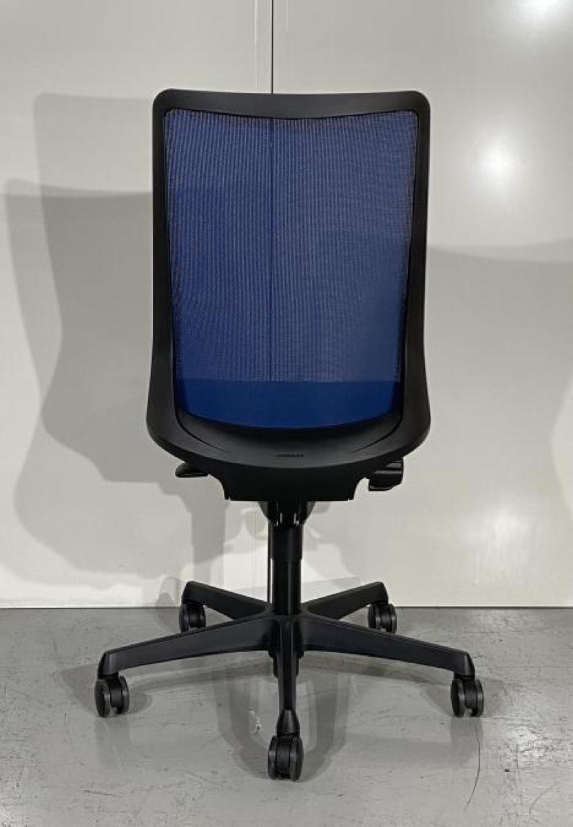 【腰まわりをしっかりホールド!長時間作業も快適フィット!】■オカムラ製 フルーエントチェア ハイバック 肘無し ■背面メッシュ ■ミディアムブルー- 茨城南店