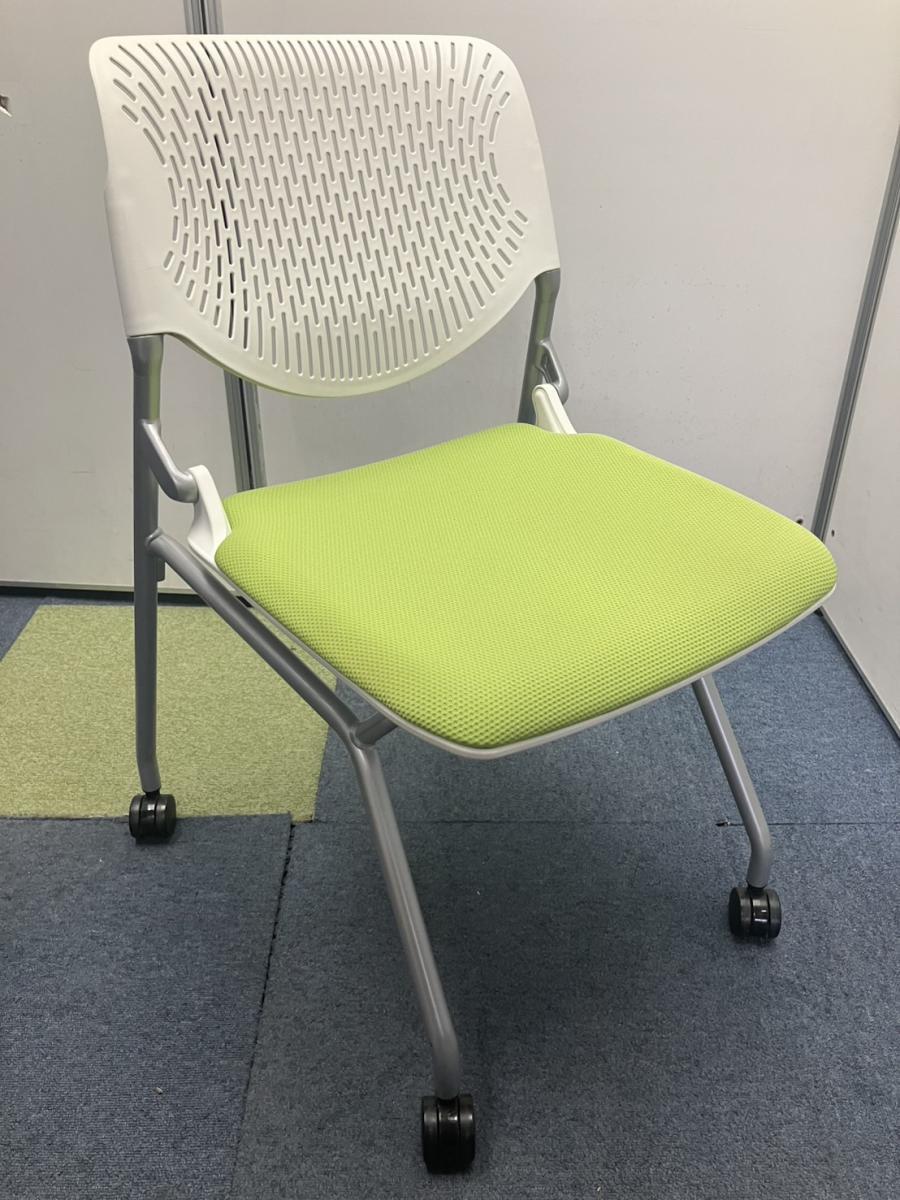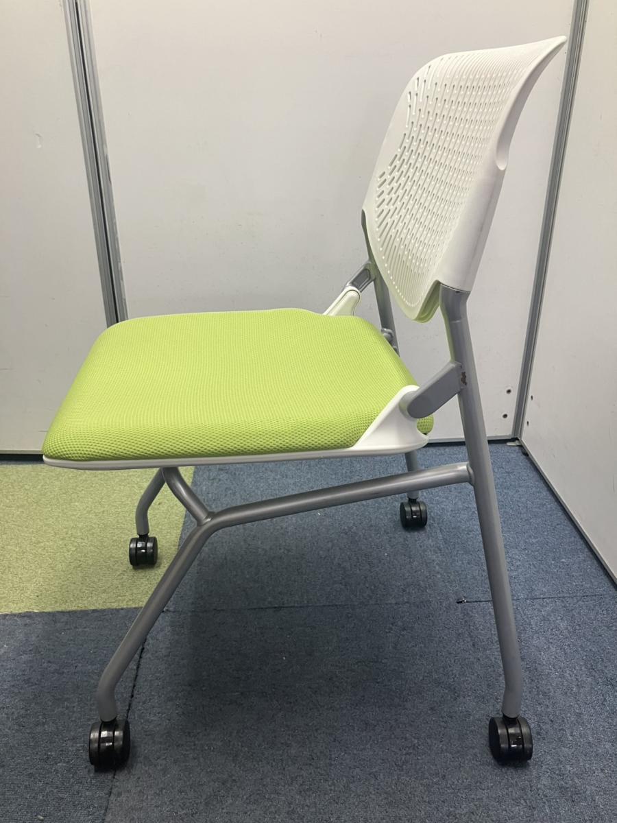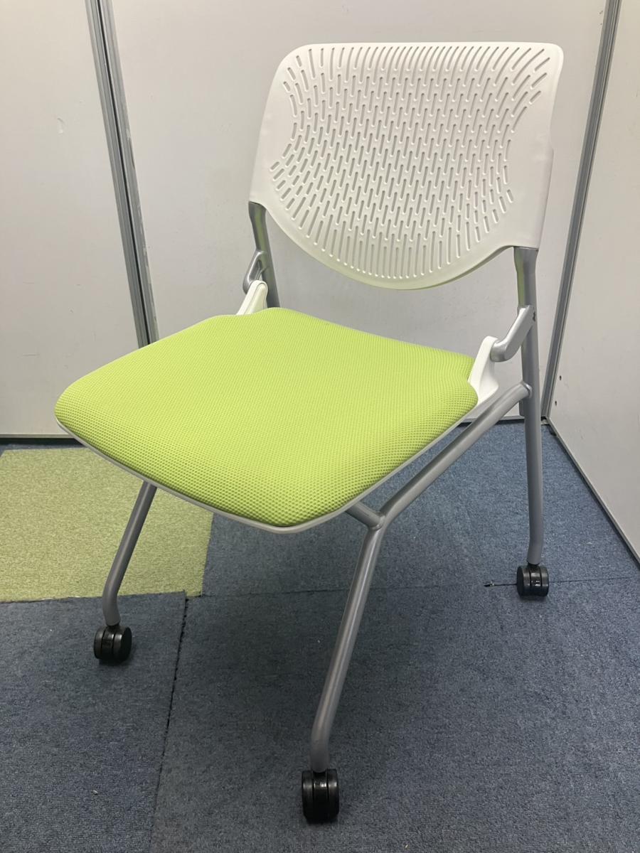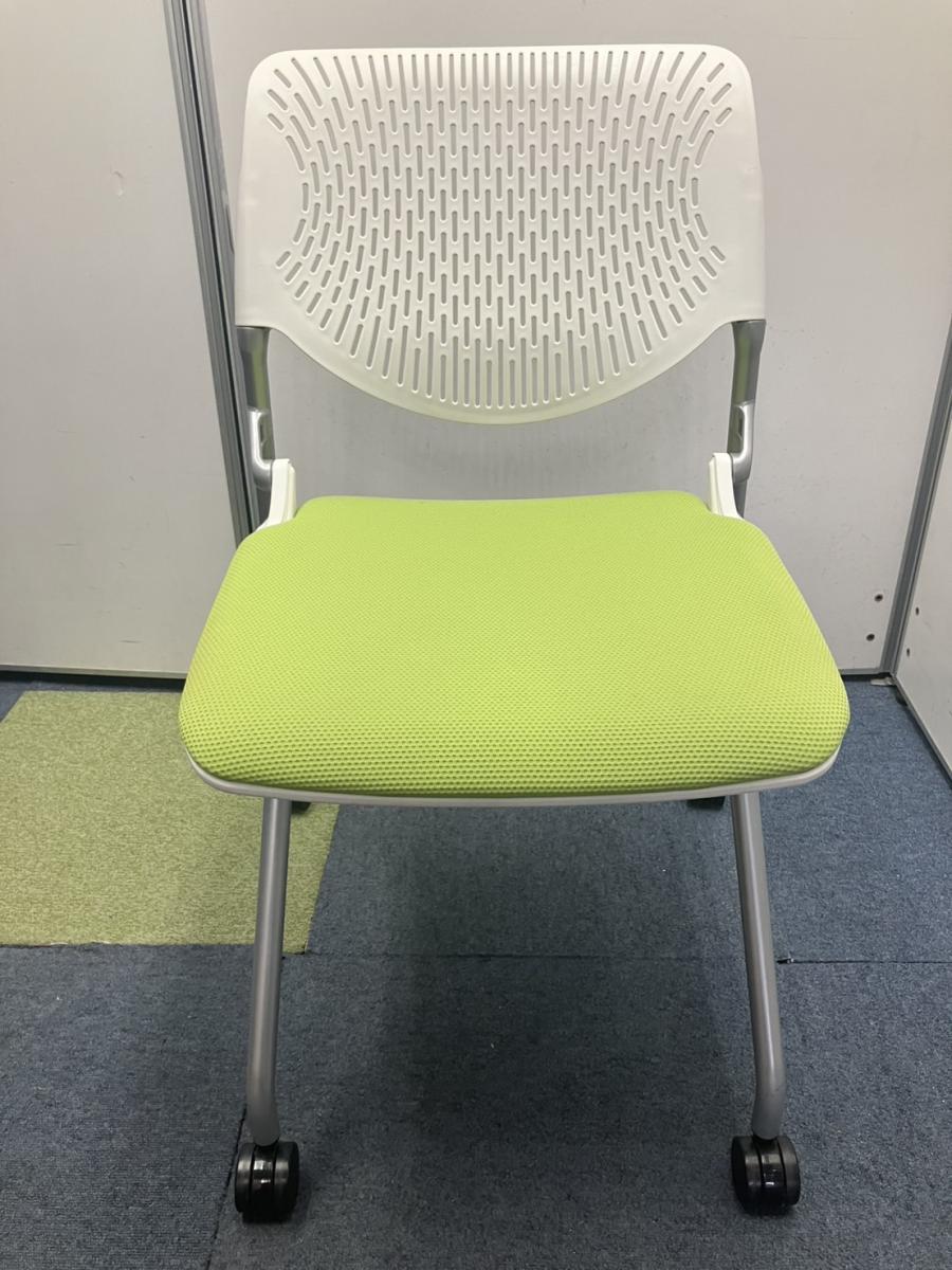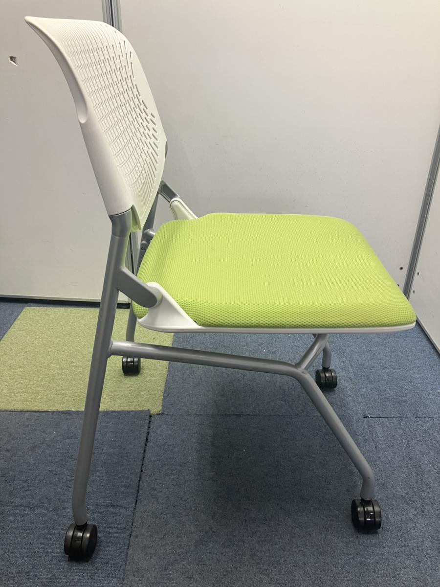 【T11】【T10】【商品入替のため、残り6脚限り】オカムラ製 ルナシリーズ ライムグリーン ホワイトフレーム 軽快なデザインが人気 ネスティングチェア!!