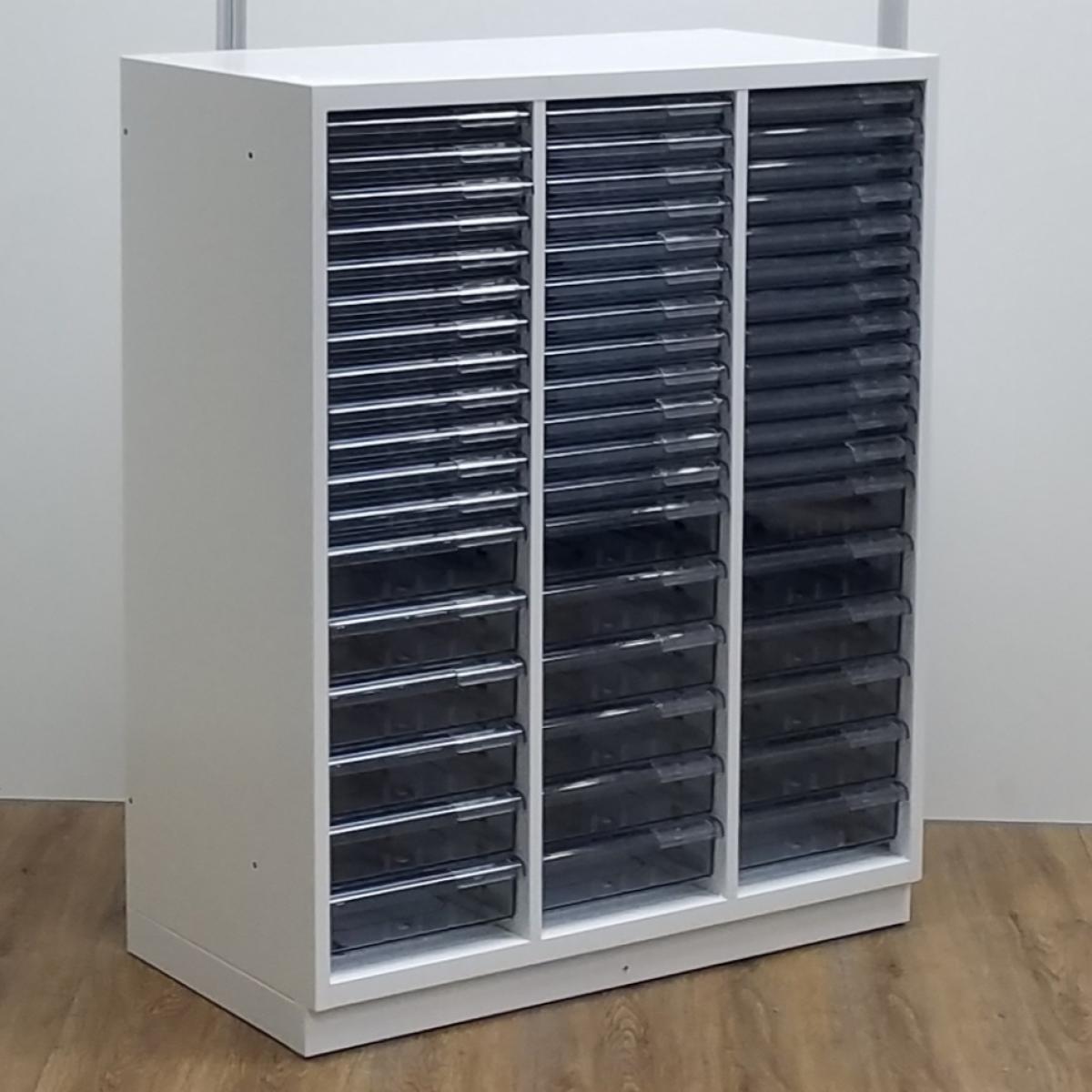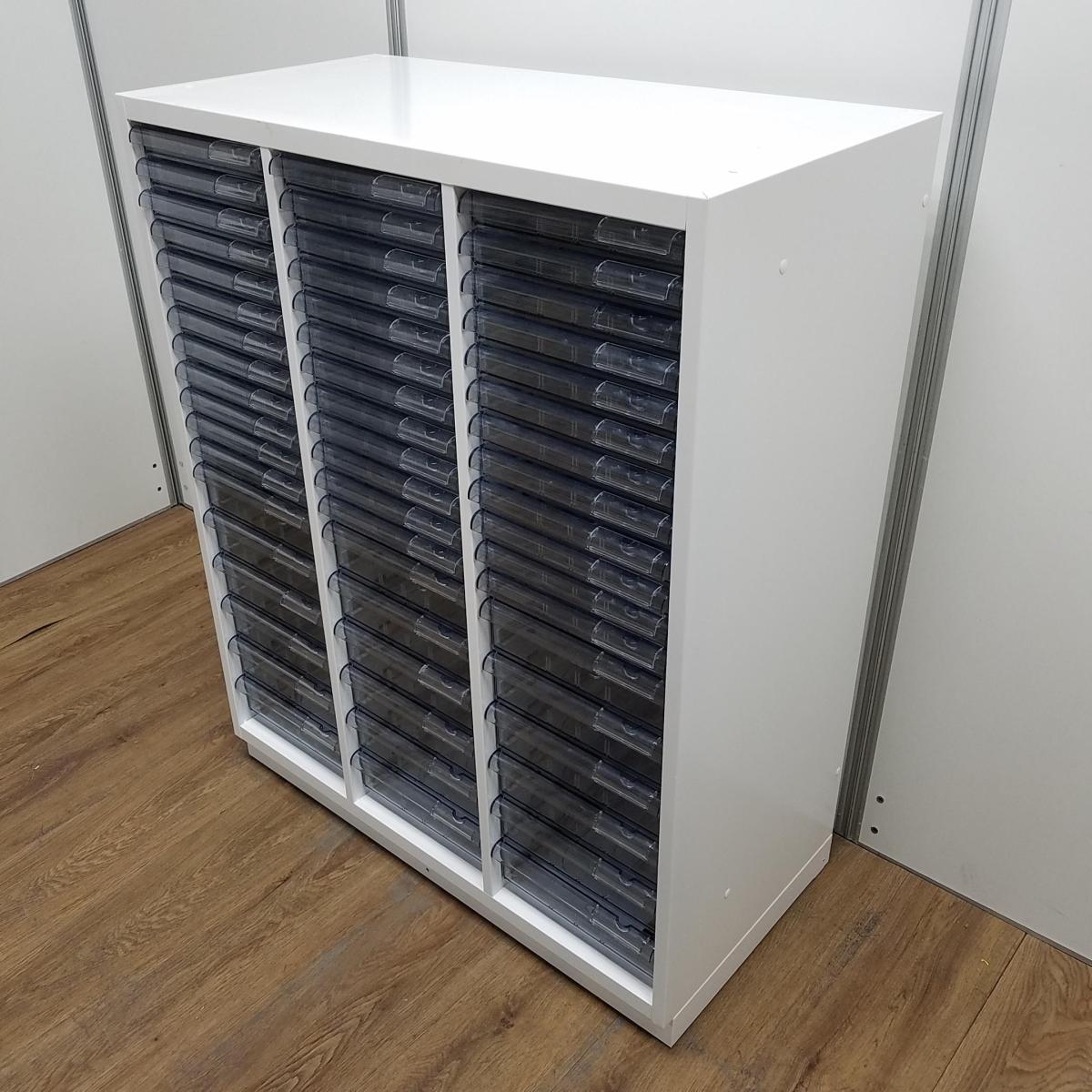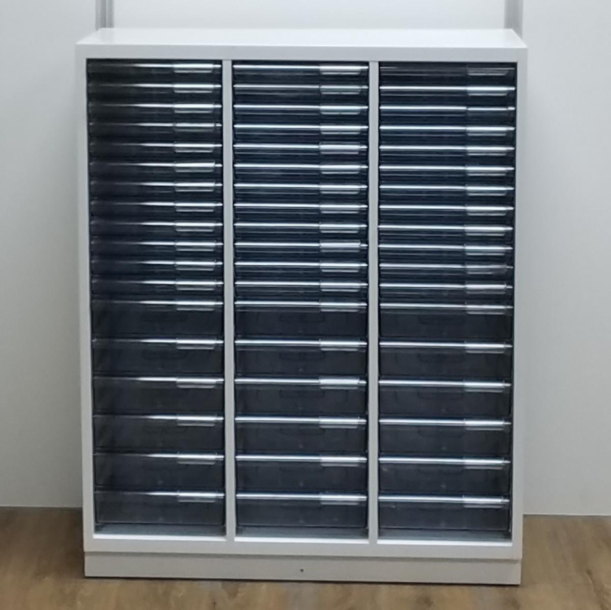クロガネ製 グレー ローキャビネット 浅型12段+深型6段混在 書類をスッキリ整理!書類や小物の整理に便利! クリスタルトレイ!!- 京都東寺店
