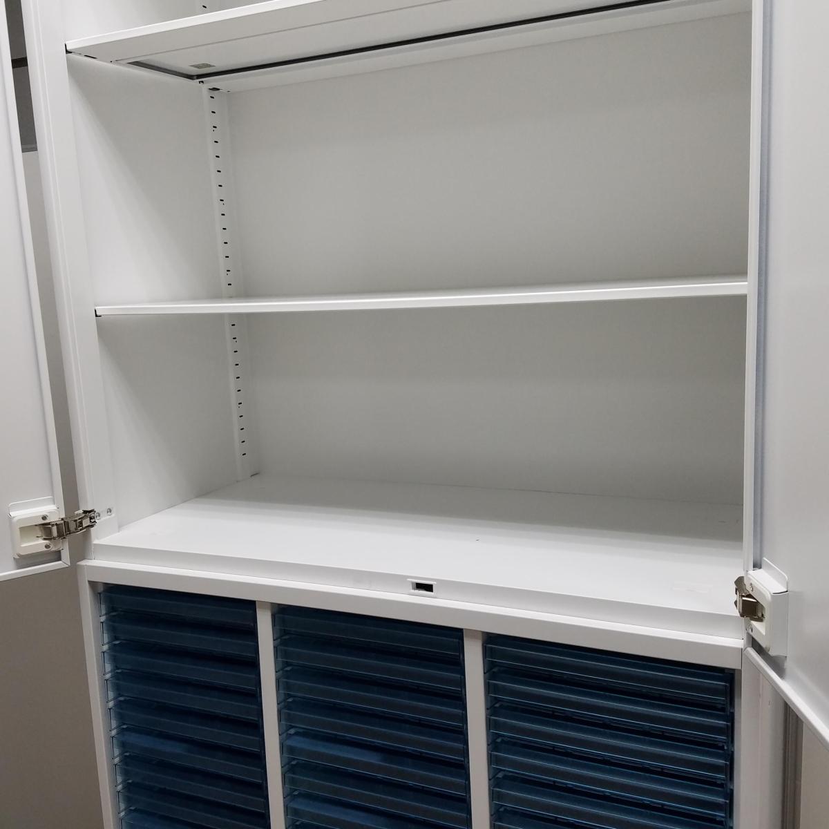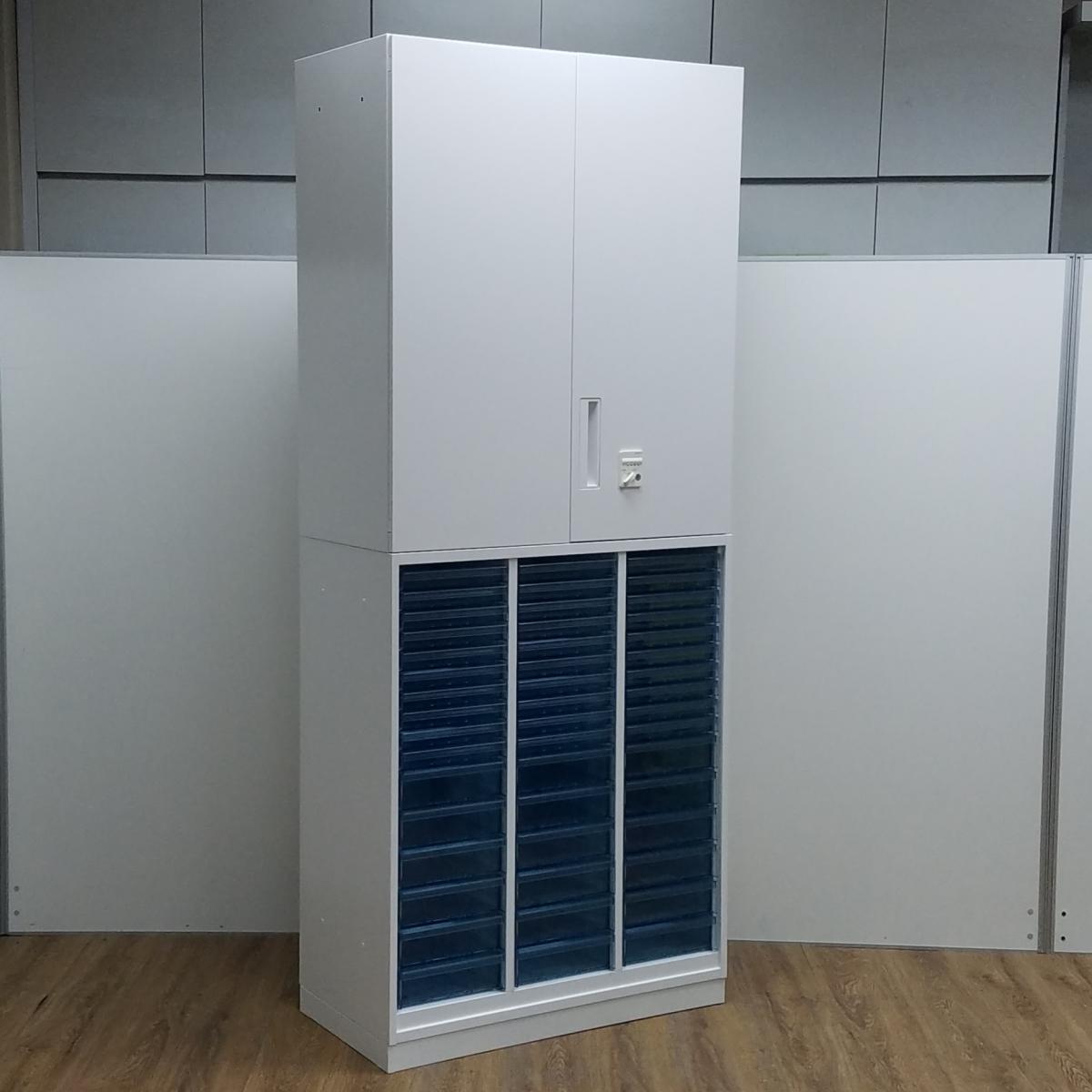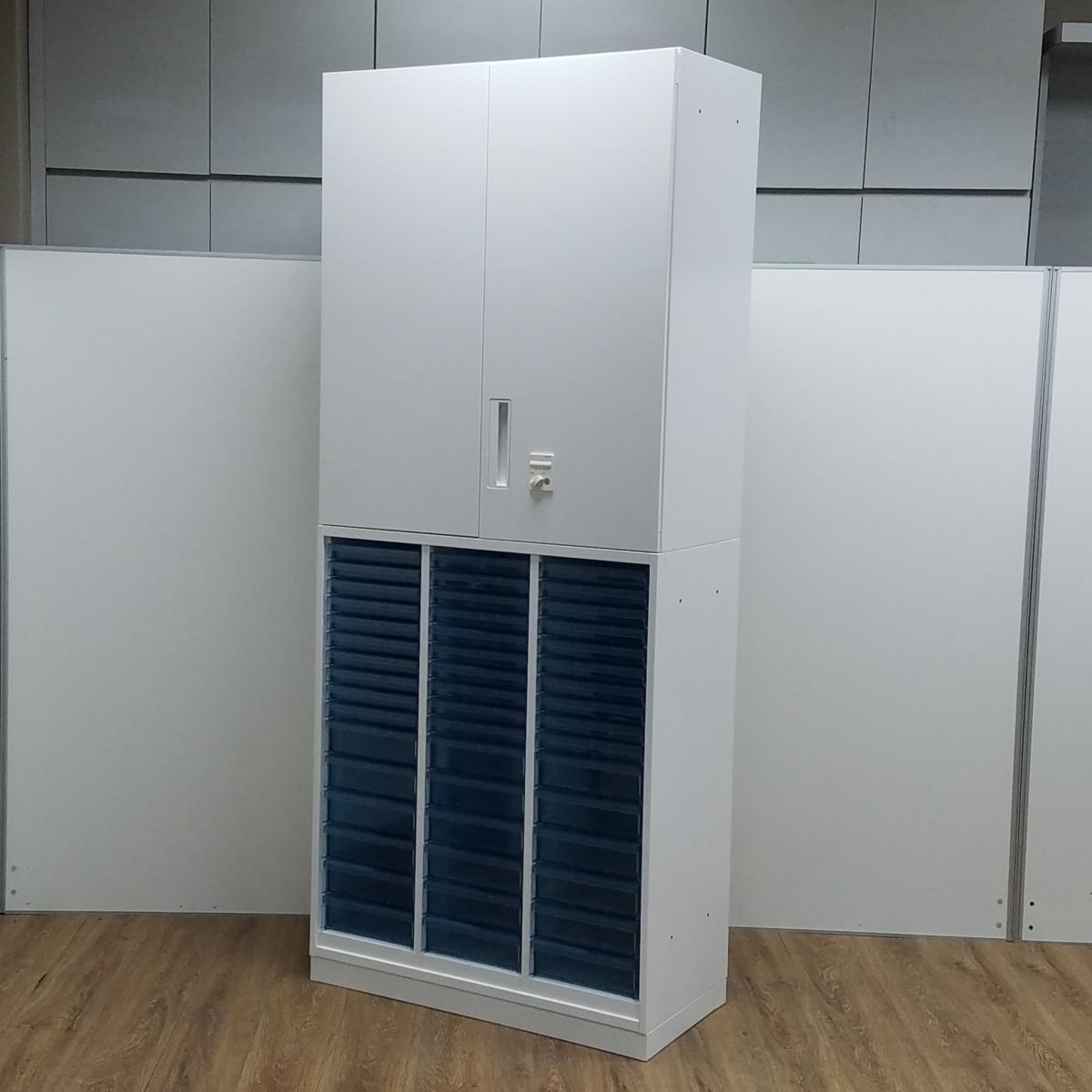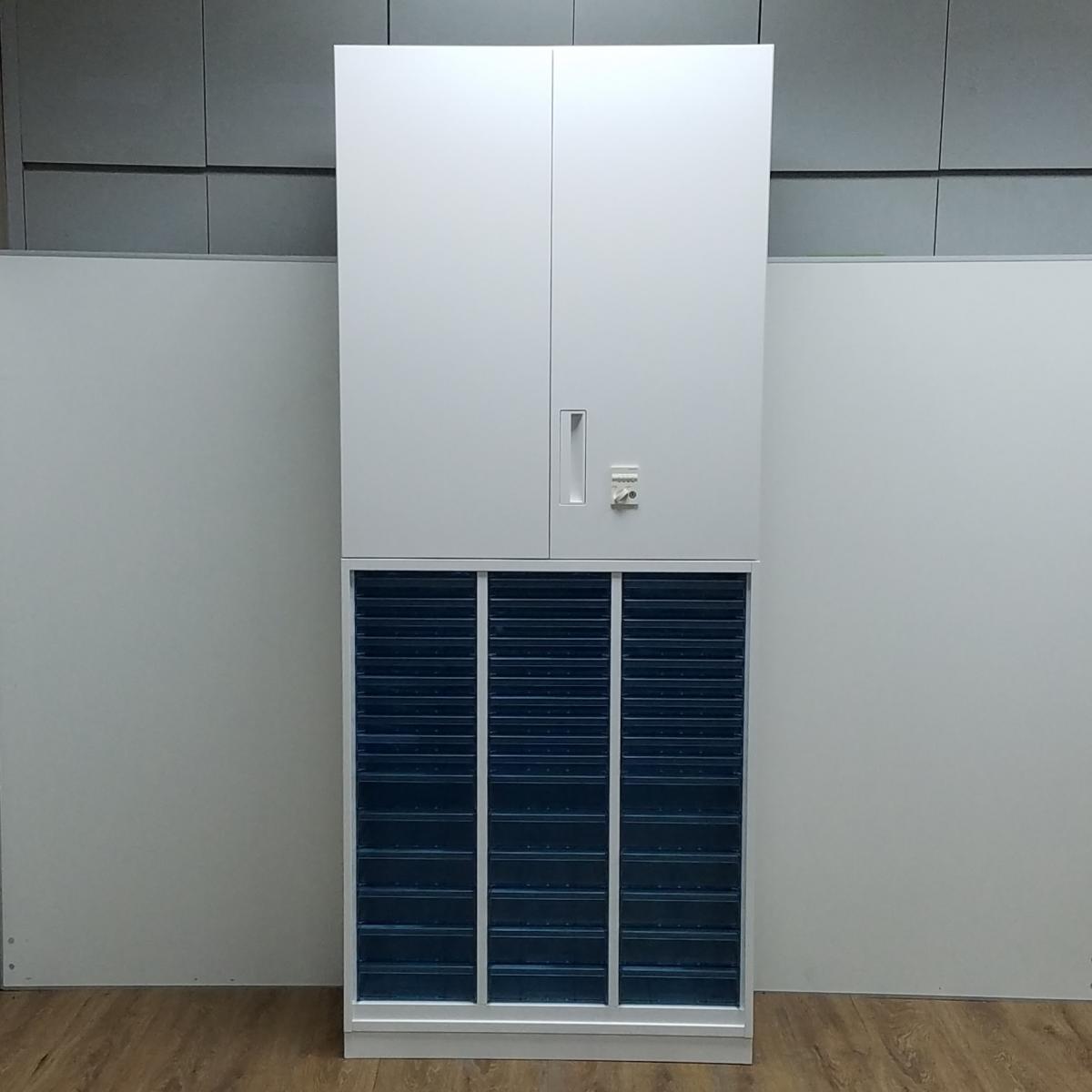 【レア】コクヨ製 エディアシリーズ ホワイト 上置き※ダイヤル式 希少なクリスタルトレイの書庫セット! 浅型タイプ 両開き+クリスタルトレー 書庫セット!!※非常は解除キーは付属しておりません。- 京都東寺店