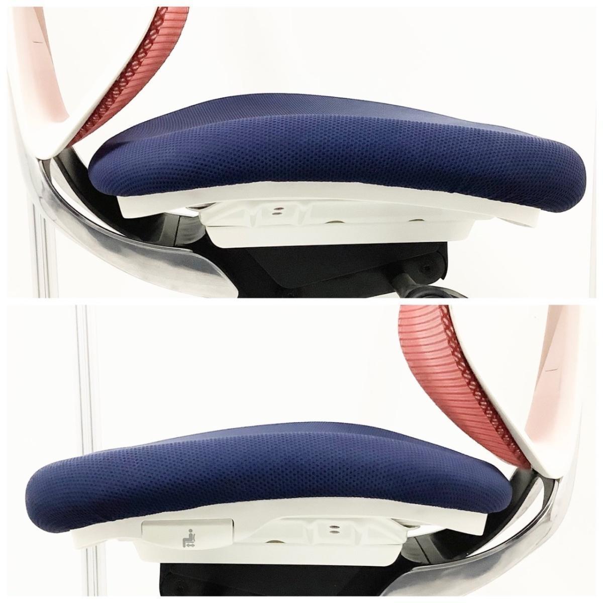 【来店限定キャンペーン】【定価約17万円】【クッション性抜群!長時間のデスクワークにおすすめ!】■オカムラ/サブリナ ■背もたれレッド/座面ブルー/フレームホワイトの珍しいトリコロールカラー!■背もたれメッシュ■前傾チルト機能付き