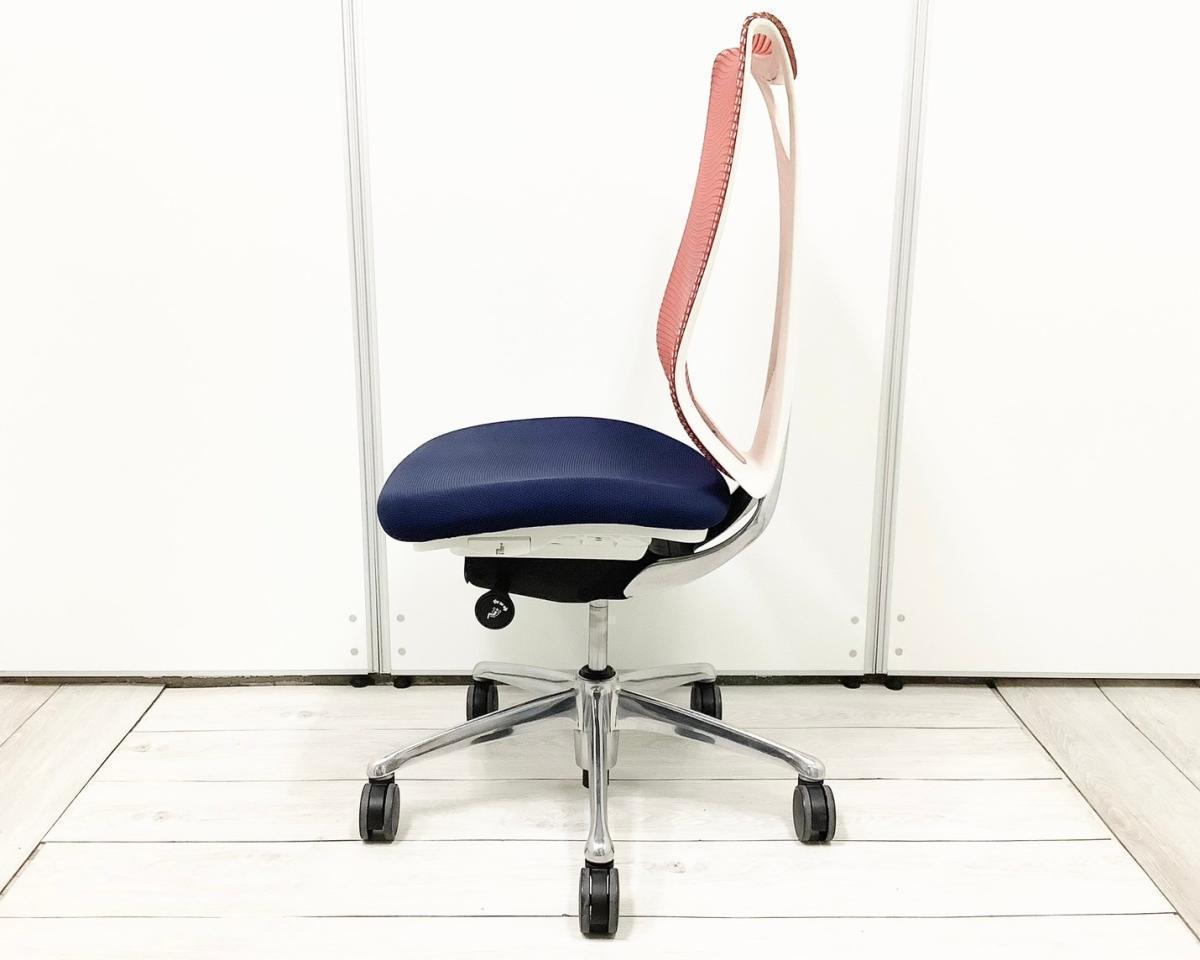【人間工学から生まれた最先端のワーキングチェア!】■オカムラ サブリナチェア 肘掛け無 背:レッド / 座:ダークブルー ■流れるような美しいフォルム!姿勢に心地よくフィット!【K10】