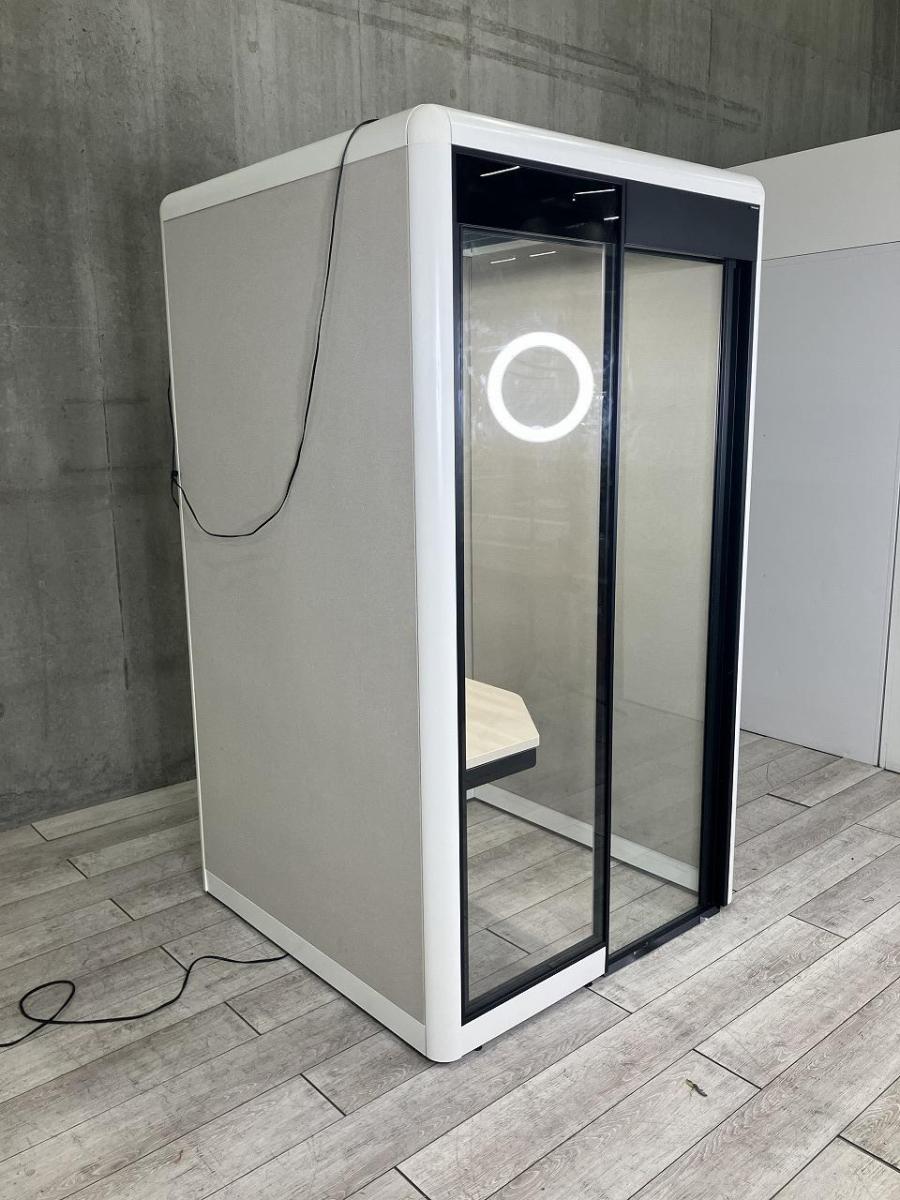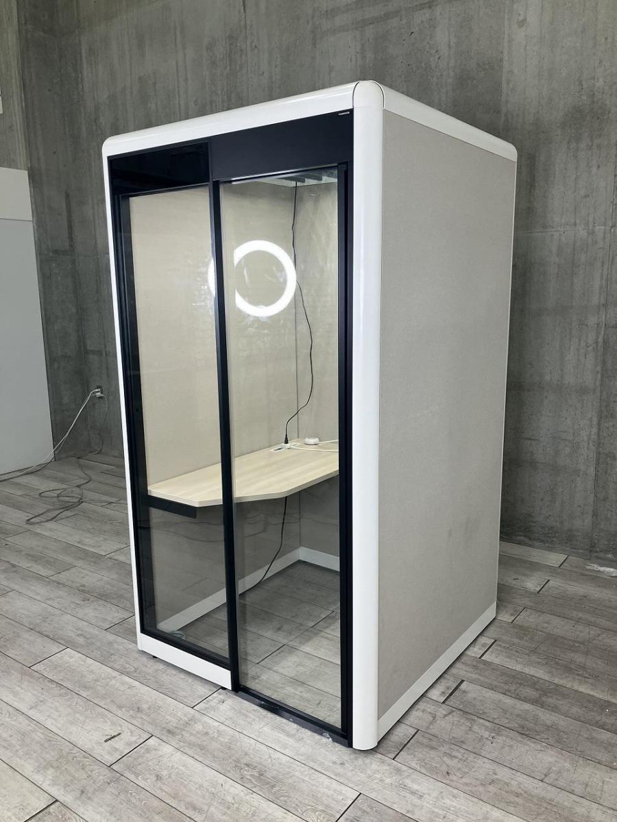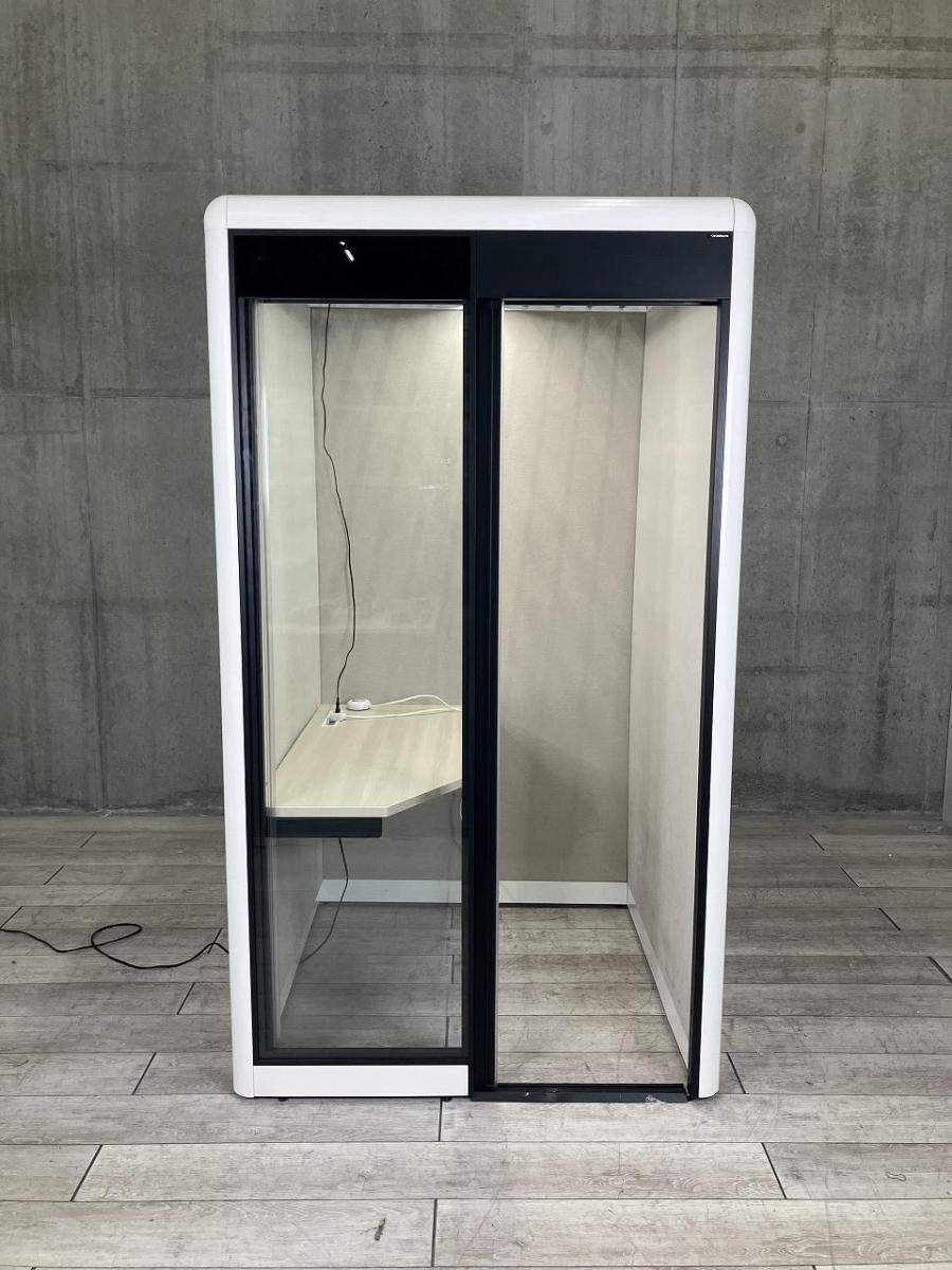 【ガラス張りの前面扉でスタイリッシュな空間!オンラインミーティングなどに!】■オカムラ(okamura)製 スノーハット スタンダードタイプ 1人用 ガラススライド扉 ■天井ルーバー(アミ)タイプ 床なし ■スチール:ホワイト 外装内装パネル:ベージュ【ABW商材】【関東倉庫在庫品】【弊社使用欄:A01005068】- 全店共通商品