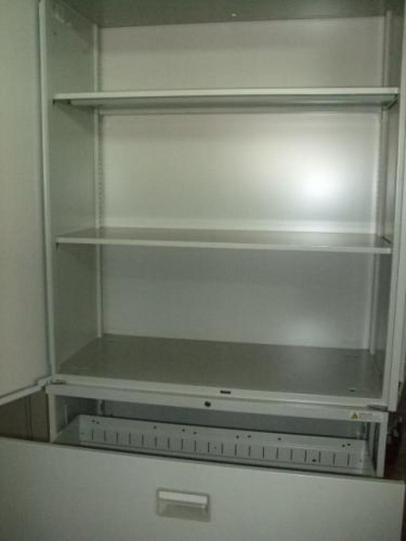 - 一部不具合ありそ引出の開閉不可、施錠不可、棚板無しといったの書庫の本来の効用を果たすための機能以外の一部が使用不可(例、扉、引出の開閉がしづらいなどがある。 )
