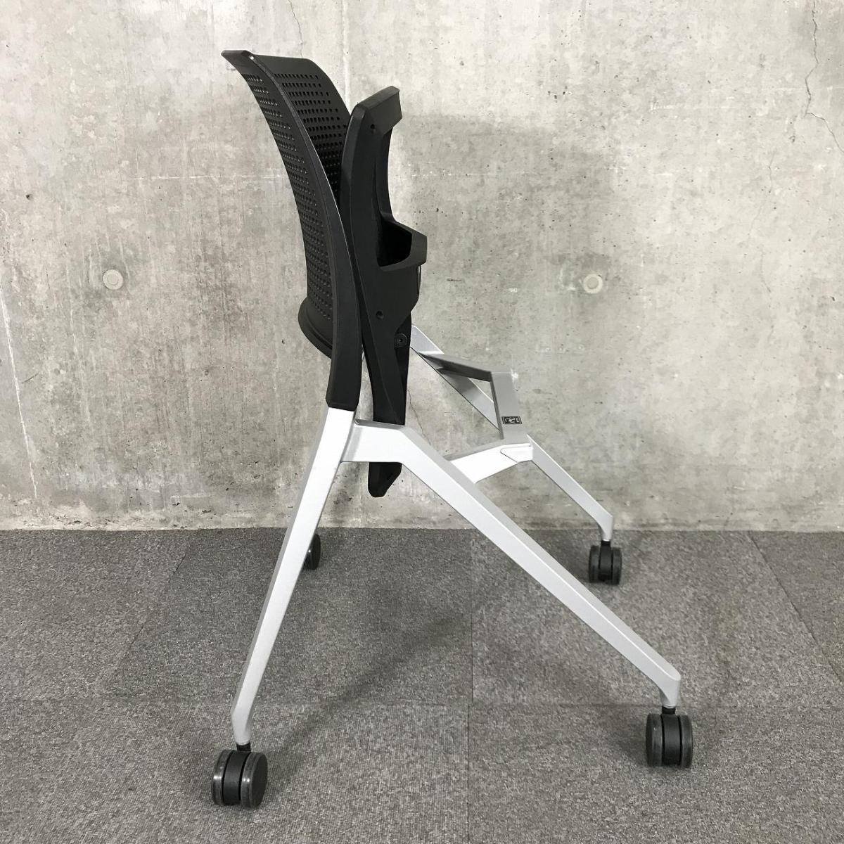 【座り心地を追求した美しいネスティングチェア!長時間の使用も快適に!】■コクヨ(KOKUYO)製 スプラインシリーズ(Spline) ネスティングチェア ■背座面樹脂メッシュ ■キャスター付 ■ブラック- 大阪・堺店