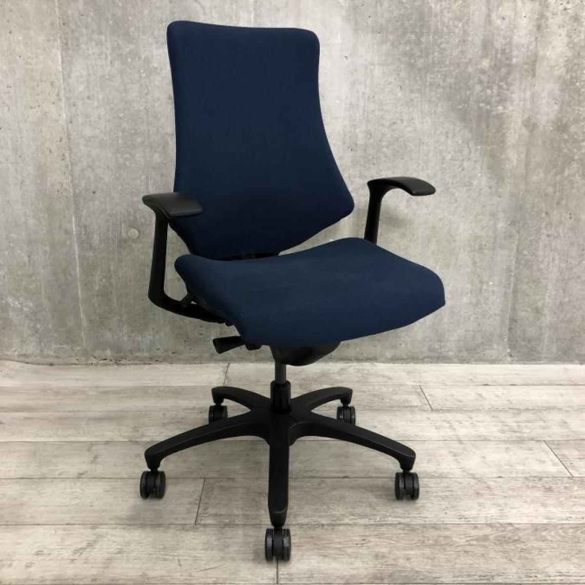 【包み込まれるフィット感!】 ■イトーキ製 エフチェア 肘付 ネイビーブルー ■デスクワークの疲労を軽減!- 大阪・堺店