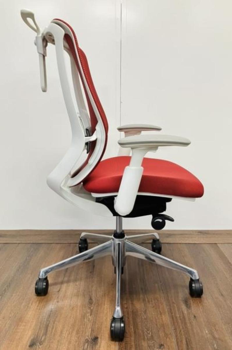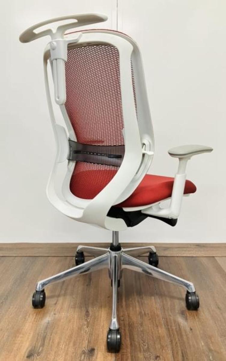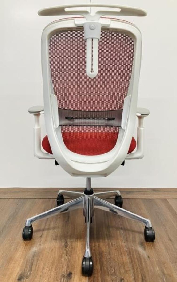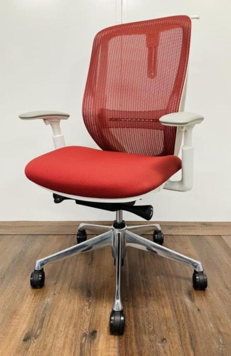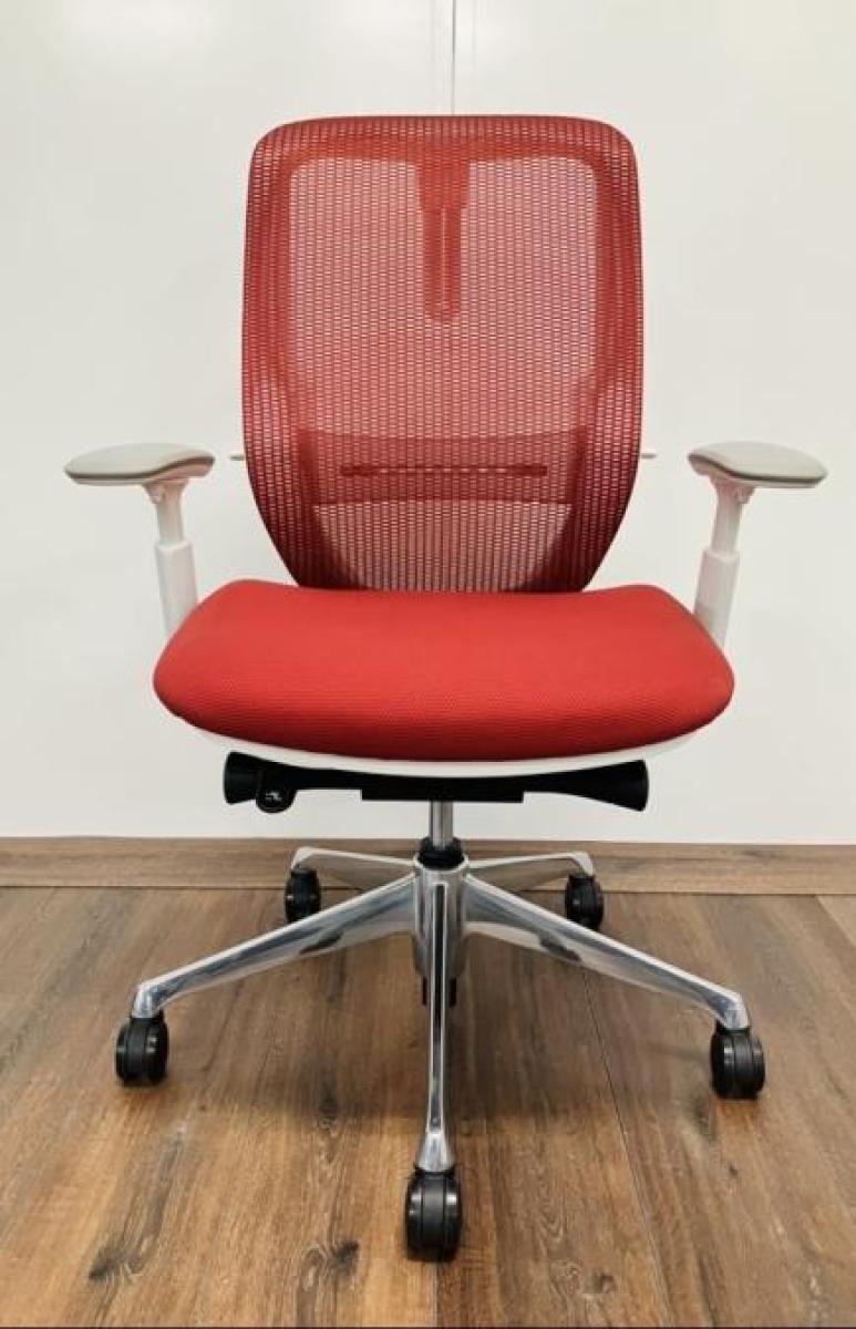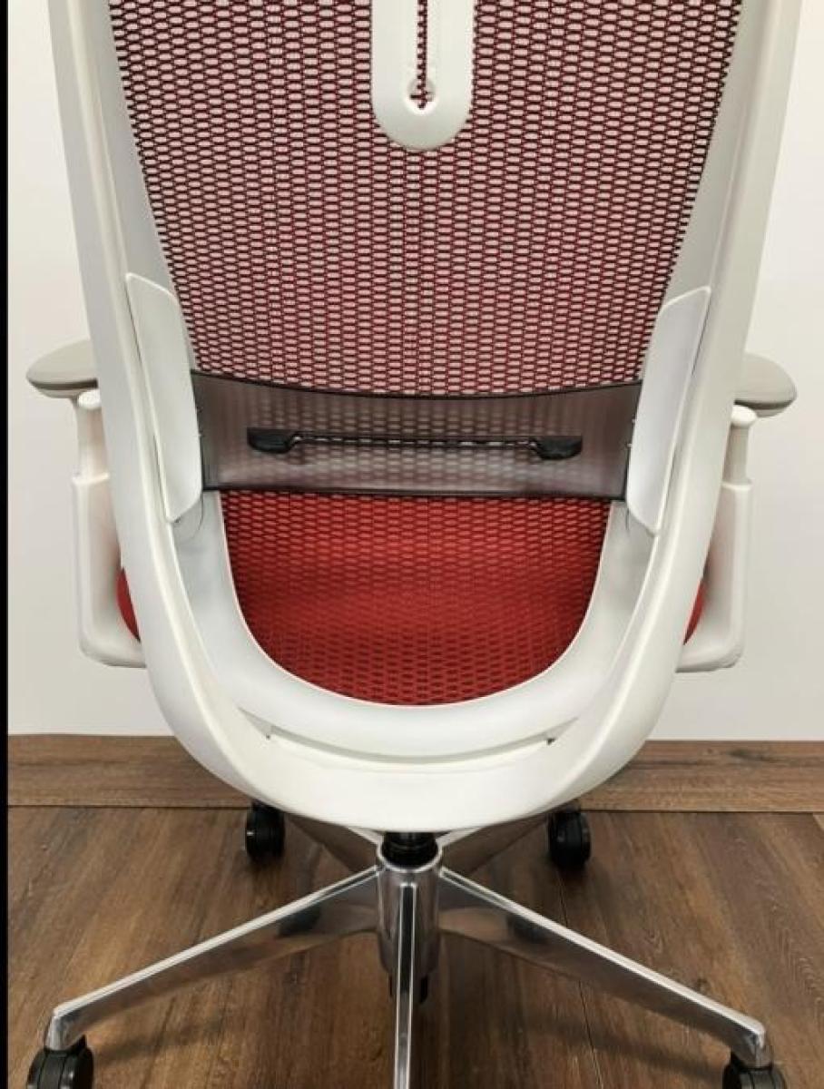 【大手町・神田サテライトCP】【三次元曲面が快適にフィット!!前傾チルト機能付の大人気メッシュチェア!】■オカムラ(okamura)製 シルフィー(Sylphy) 肘付き ハイバック ■メッシュバック ■可動肘 レッド/ フレーム色:ホワイト