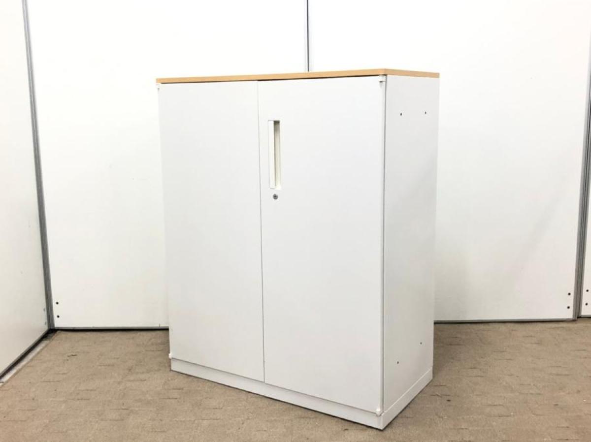 【在庫入替セール品!】人気の観音開きタイプ!取っ手が大きく使い勝手のよい定番キャビネット! ■内田洋行/HSシリーズ/ホワイト 天板ナチュラル