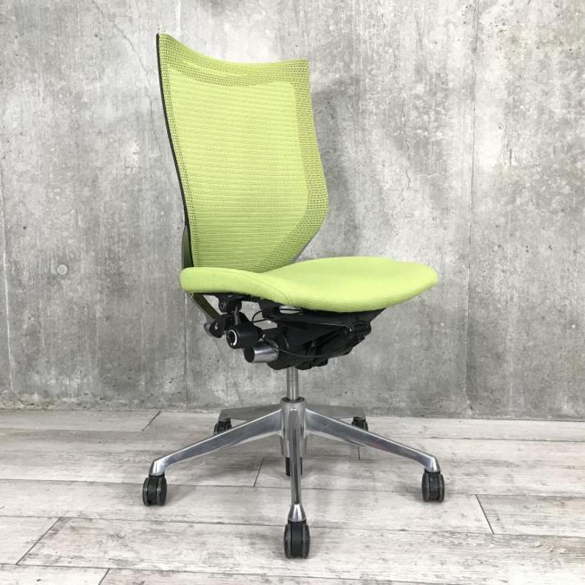 【在庫入替品】【オカムラ製の王道高級チェア!通気性ばっちりで長時間の着座も快適に過ごせます!】 ■オカムラ バロン (Baron) ハイバック肘無し 背メッシュ ■ライムグリーン×ブラックフレームサーキュラーバリューCO2削減量の算出について