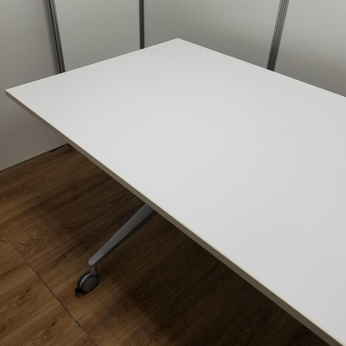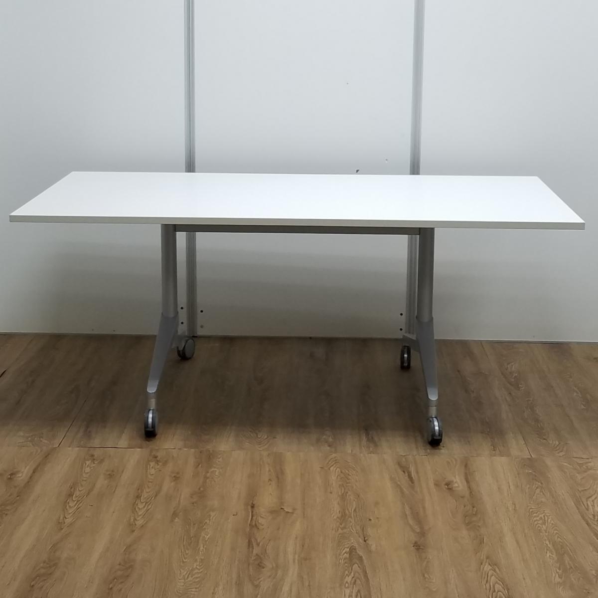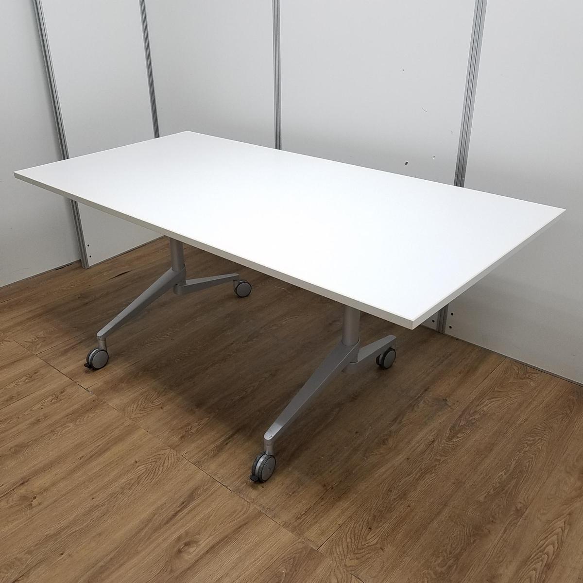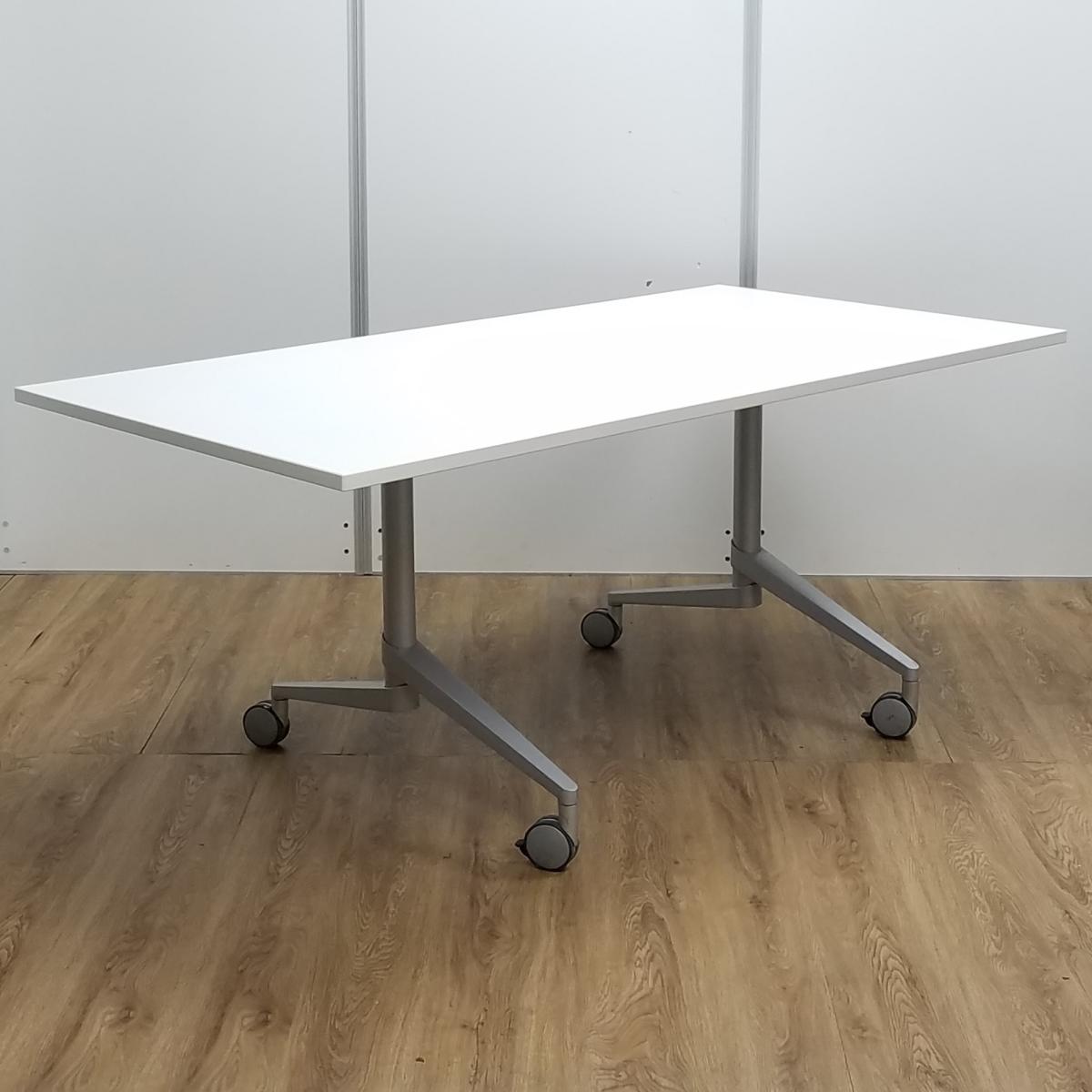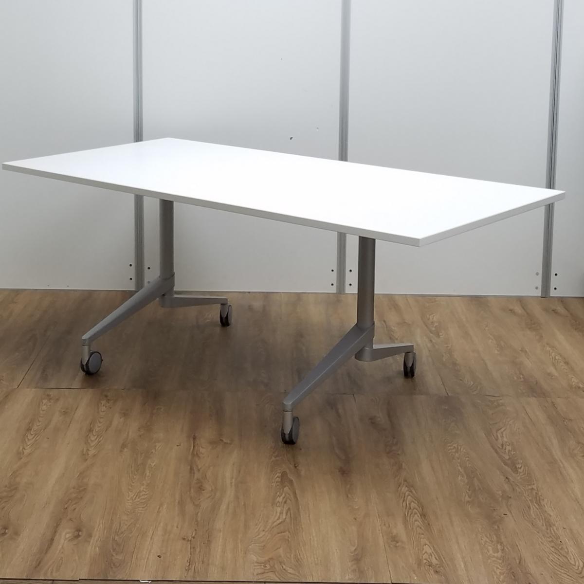 【訳あり品:キャスター欠け】オカムラ製 フレミックスシリーズ ホワイト W1800/D900/H720サイズ 天板広めで使い勝手が良い人気フラップテーブル! スタックテーブル フォールディングテーブル W1800テーブル!!※保障対象外品になります。- 京都東寺店