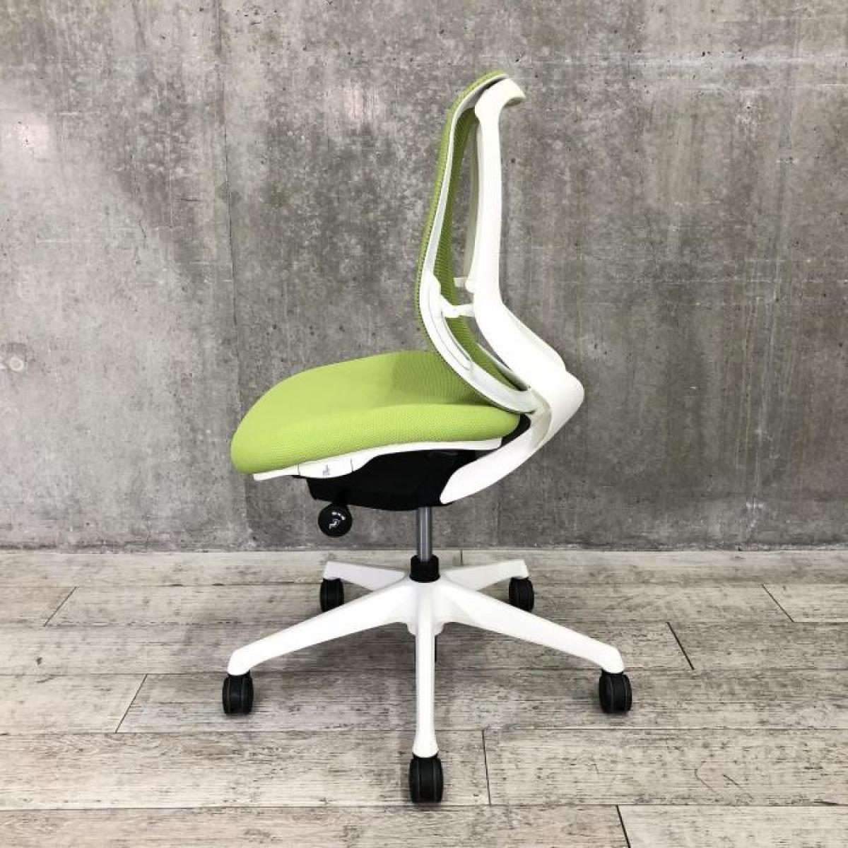 【在庫入替セール品!】【三次元曲面が快適にフィット!!前傾チルト機能付の大人気メッシュチェア!】■オカムラ(okamura)製 シルフィ(Sylphy) ローバック 肘無し ■ライムグリーン- 足立・葛飾店
