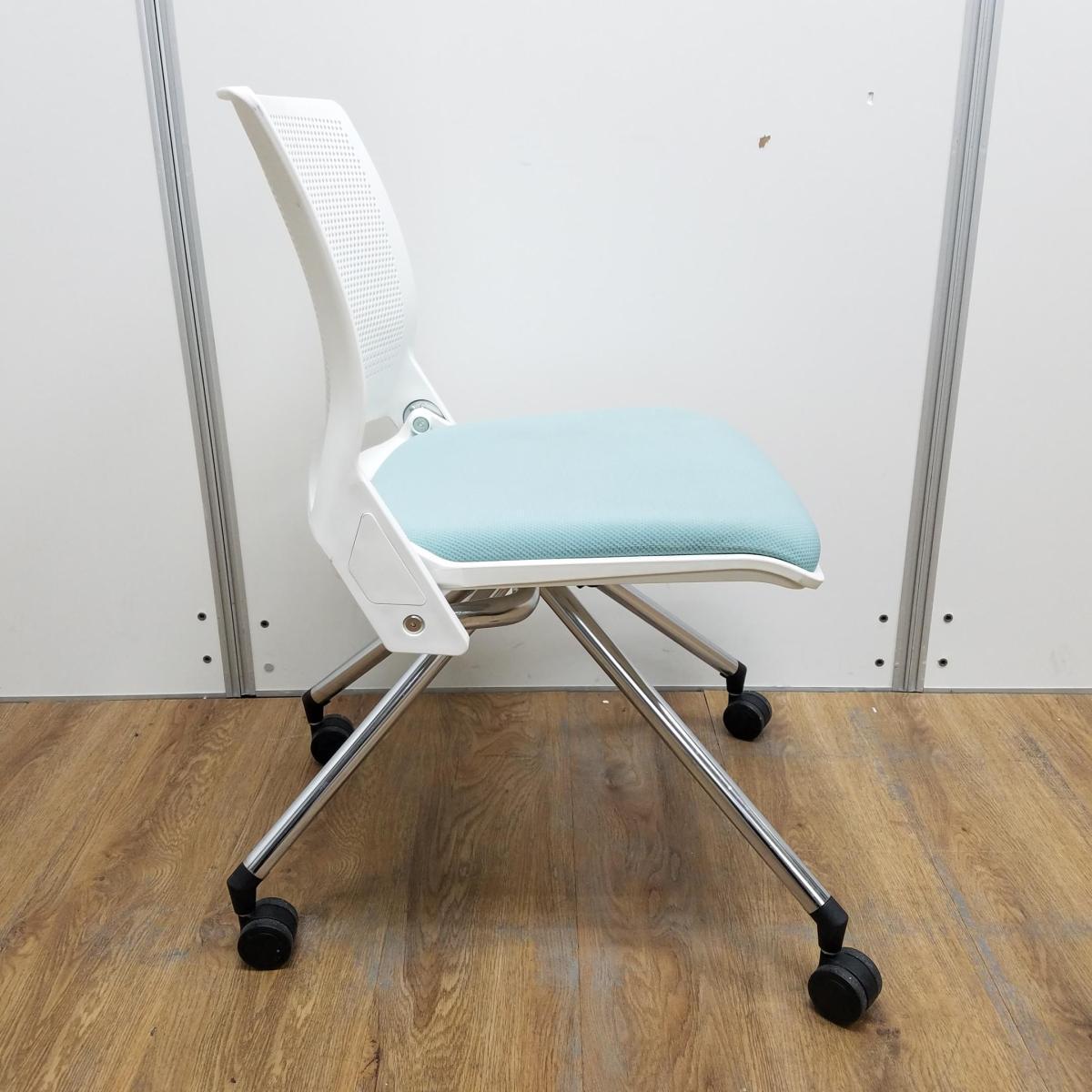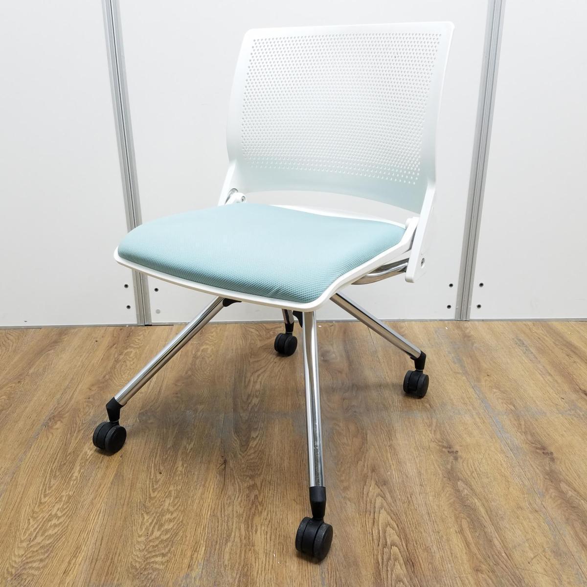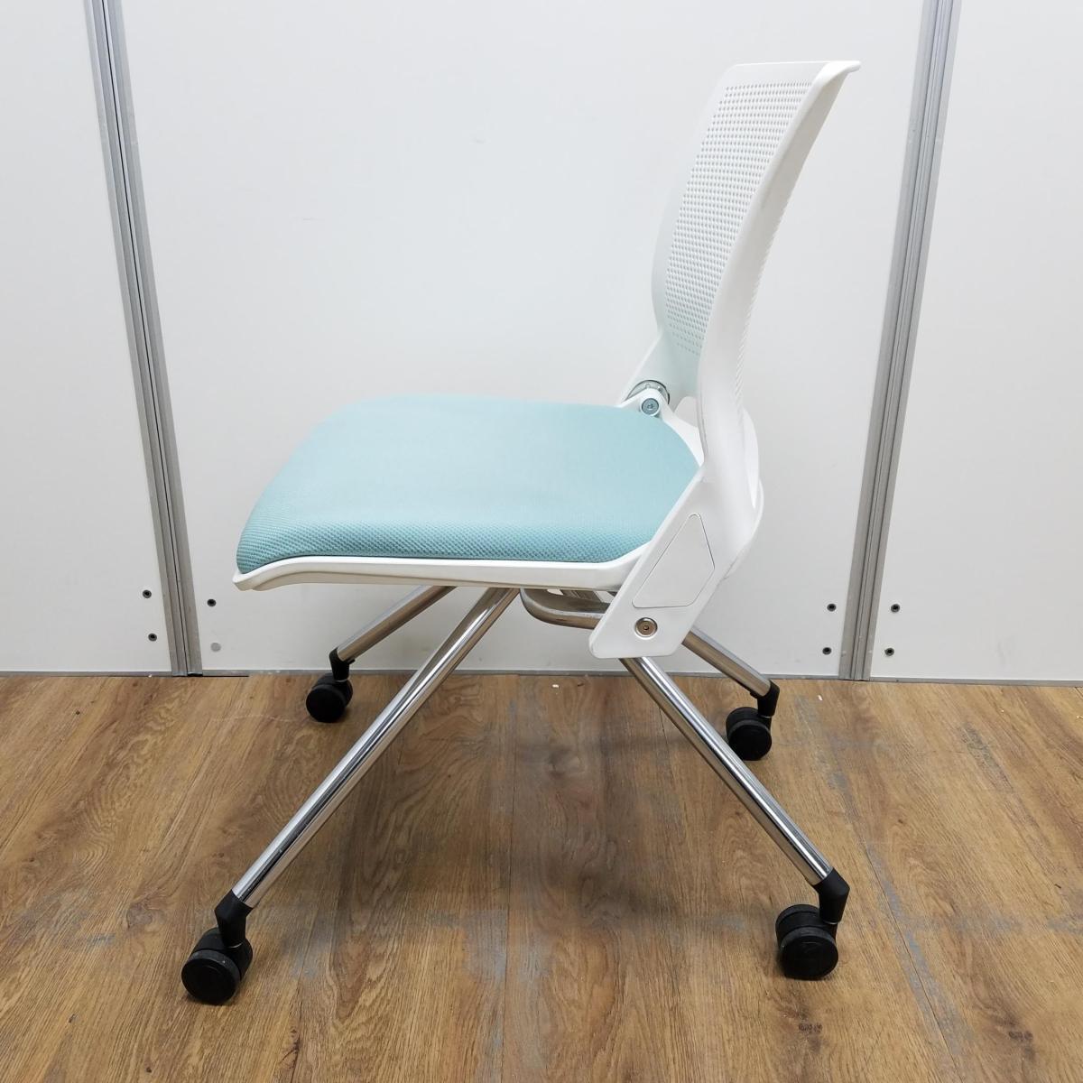 【商品入替のため、在庫限り】【4脚セット】オカムラ製 クリールシリーズ セージ ホワイトフレーム ネスティングでコンパクトに収納できる!快適な座り心地のミーティングチェア! ネスティングチェア!!- 京都東寺店