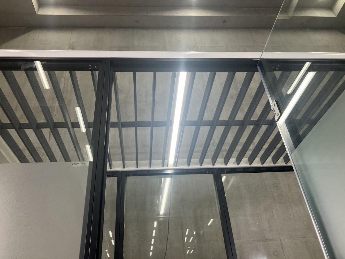天井はルーバータイプで天井照明は埋め込み型となっております。