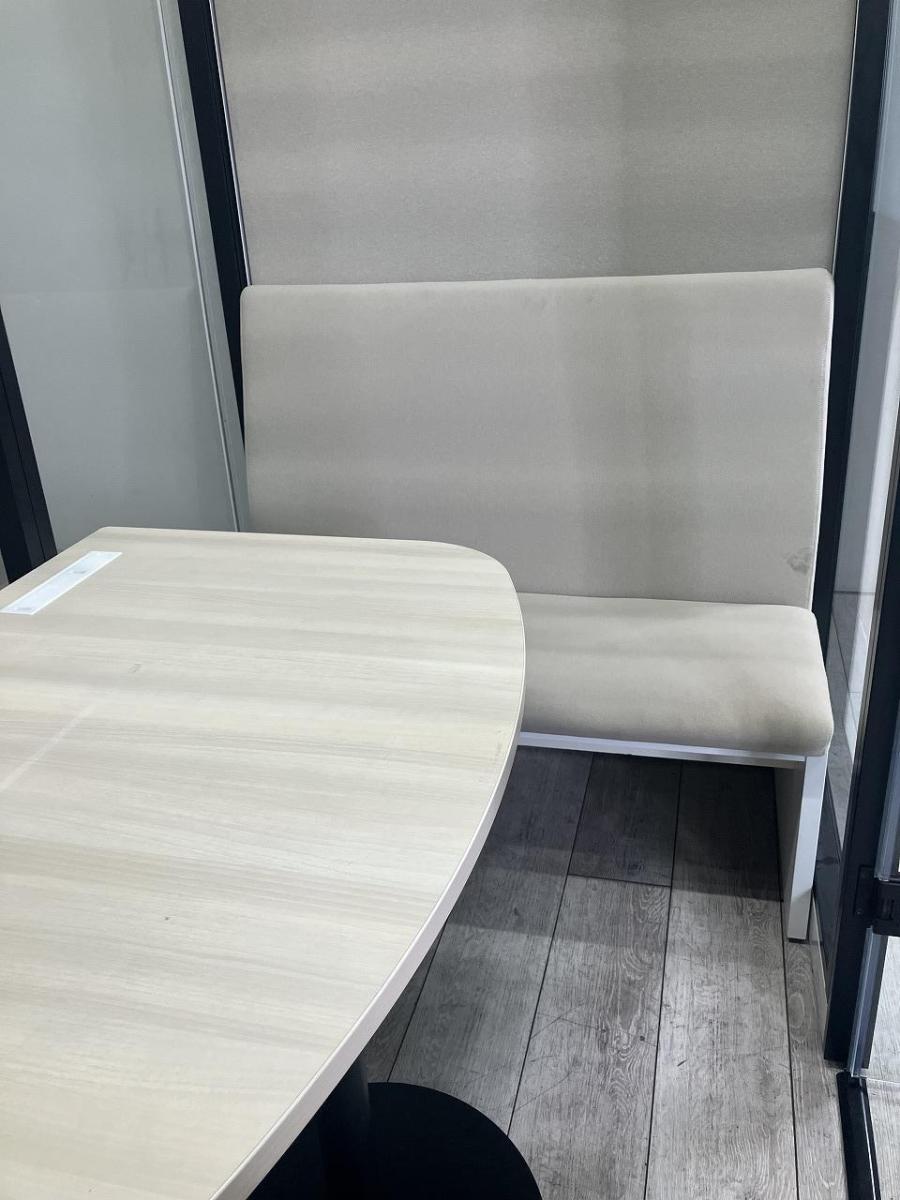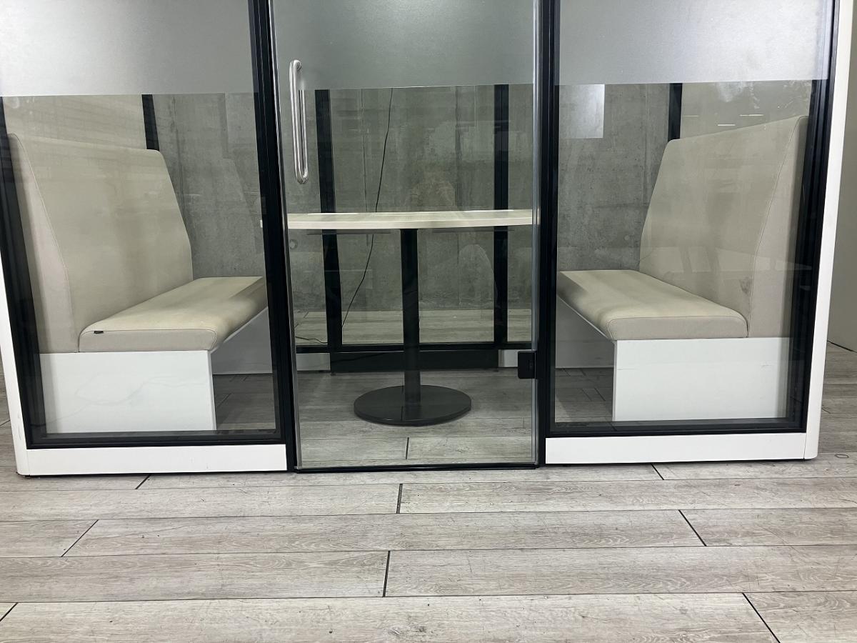 【前面と背面はガラス張りでスタイリッシュ!人気のセミクローズワークブース!】■オカムラ(okamura) スノーハット (Snow Hut) ペアワーク (Pair Work)タイプ 2人用ブース ■ソファ・テーブル・ライト付き ■色:フレーム/ホワイト パネル/ベージュ【ABW商材】【関東倉庫在庫品】【弊社使用欄:A01014012】- 全店共通商品