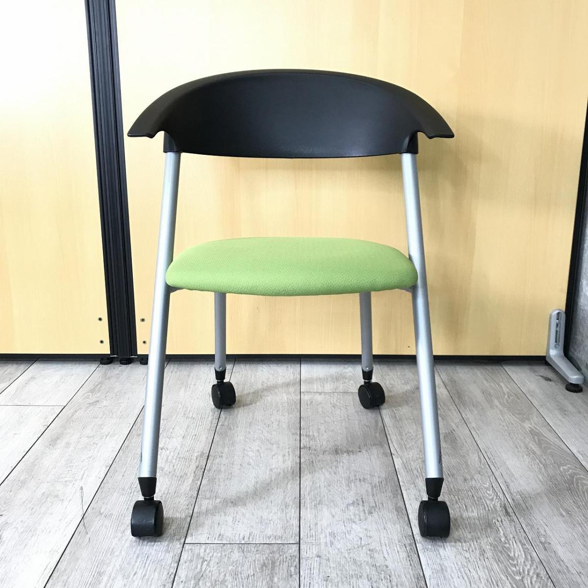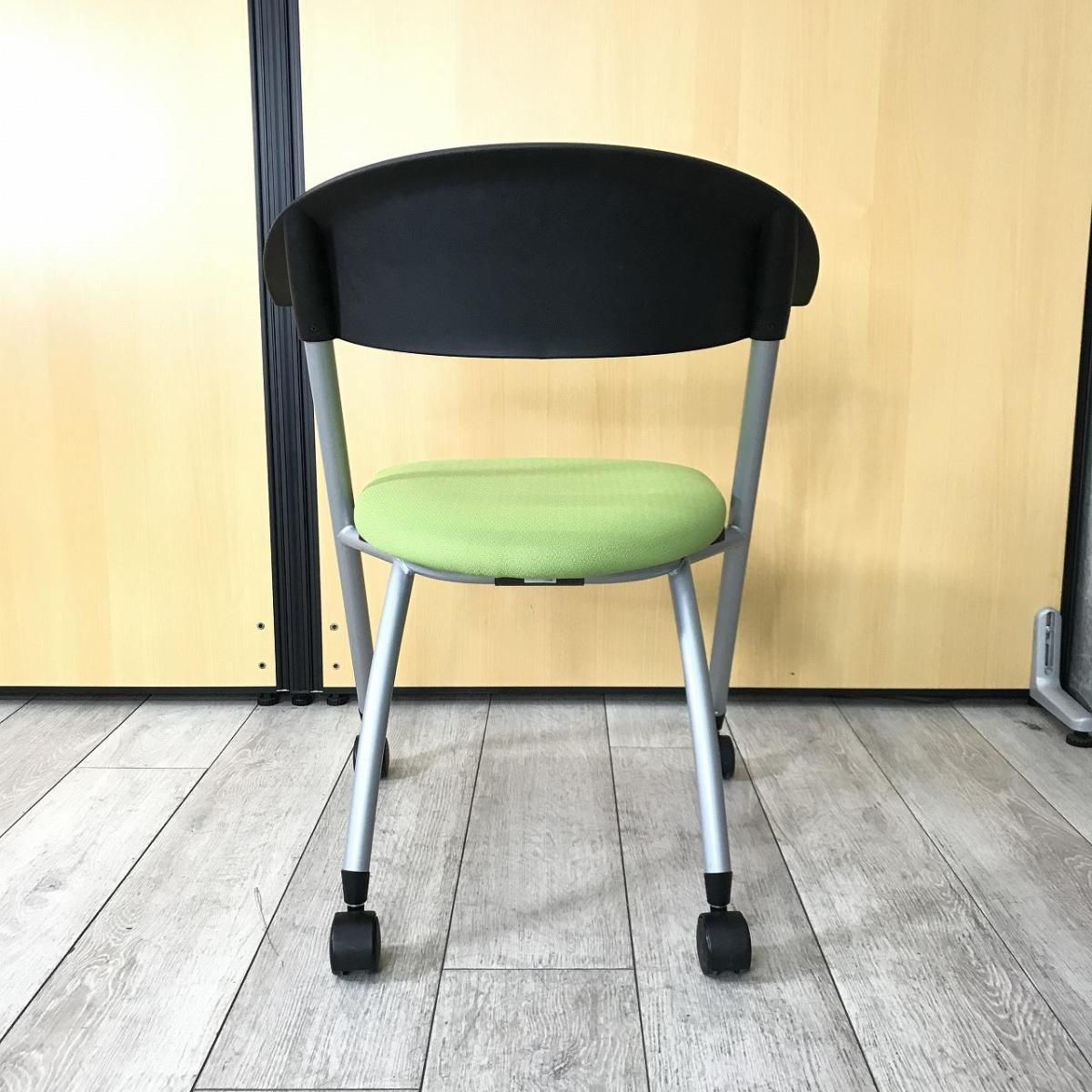 【フレキシブルに使えるキャスター付!】■コクヨ製 ネスティングチェア グリーン ■ポップなデザインでコミュニケーションも活性化!- 川崎店