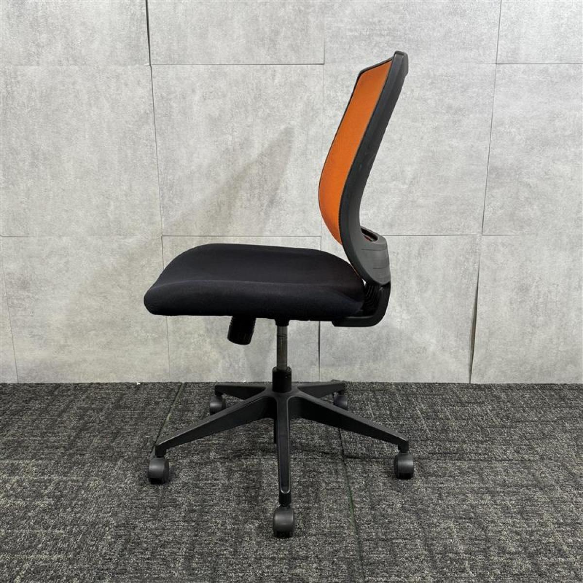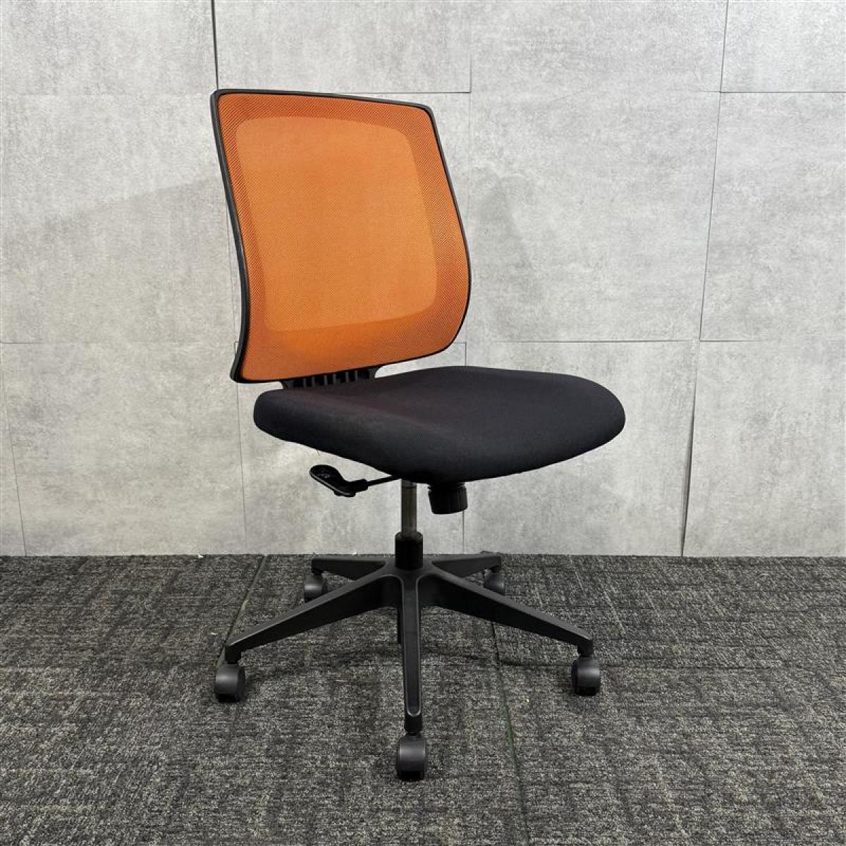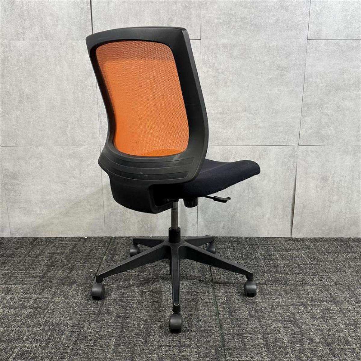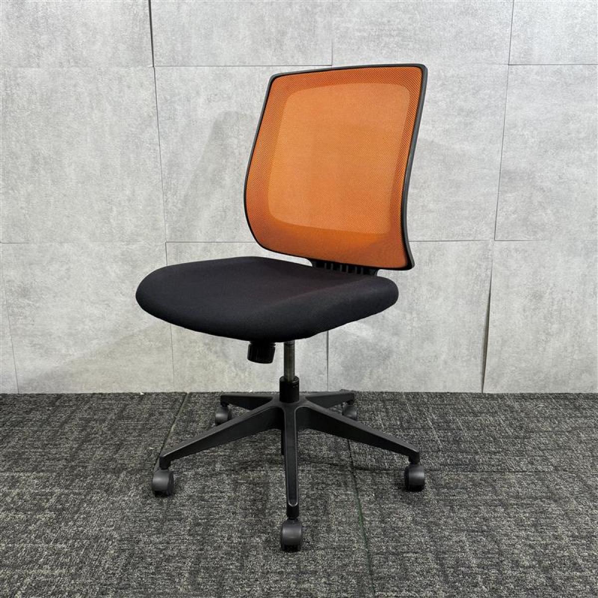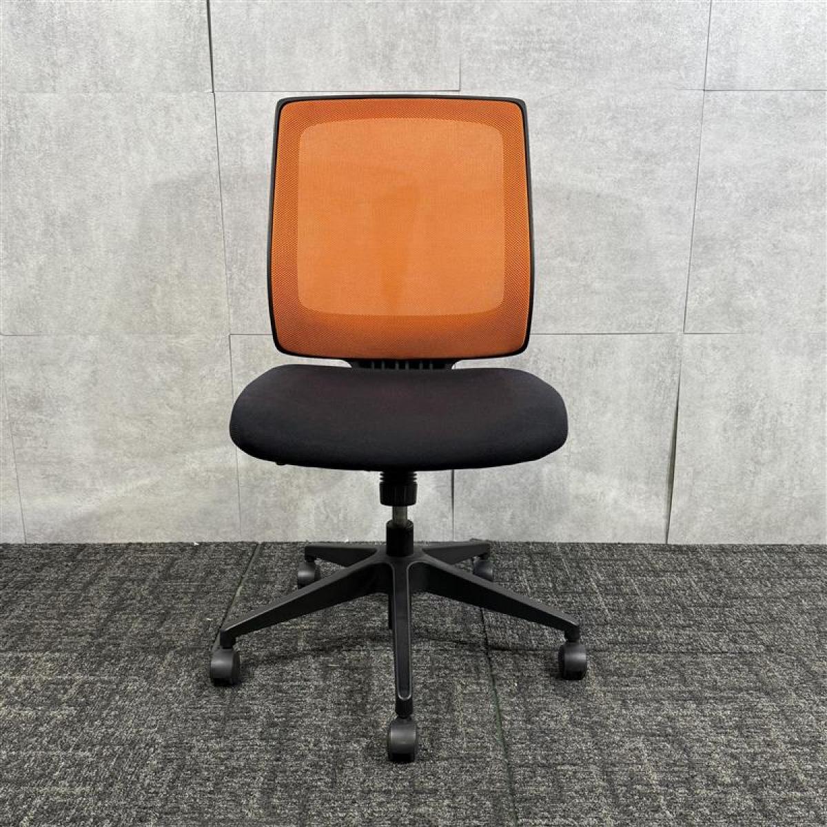 【背面オレンジメッシュ×座面ブラックの組み合わせ!】オフィスチェア ローバック 肘なし メッシュ 昇降 中古 福岡 博多 九州最大級- 福岡博多店