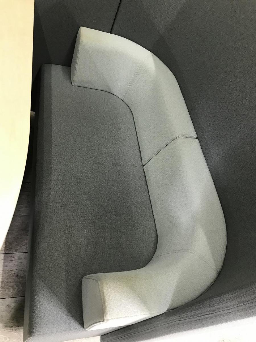 ■直線的な外見に対し、ソファは曲線を描き、デザインと座り心地の両立を実現しました。
