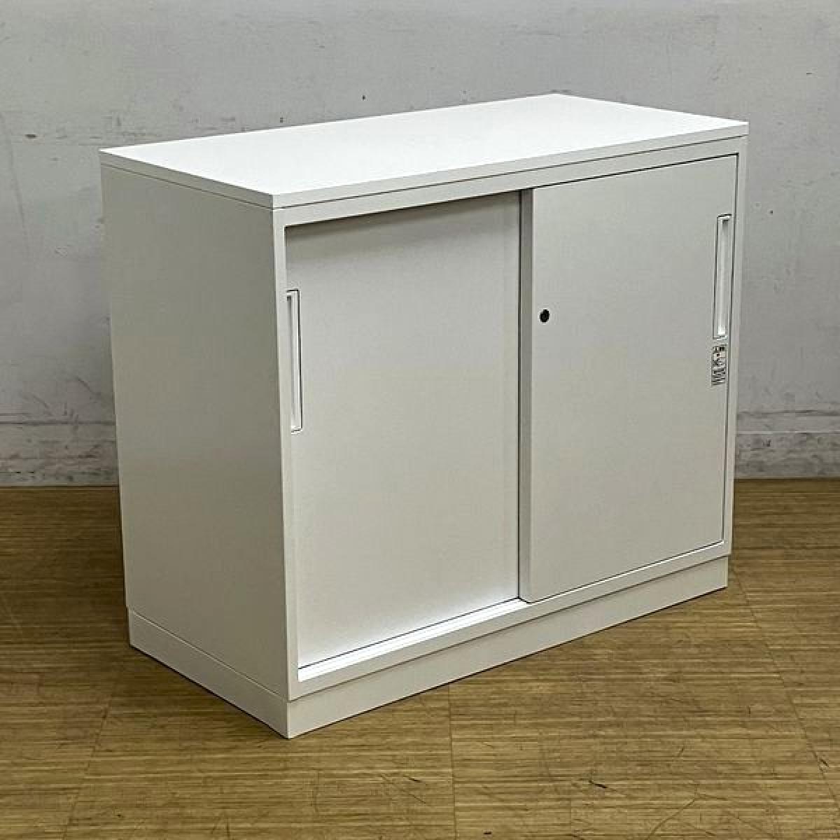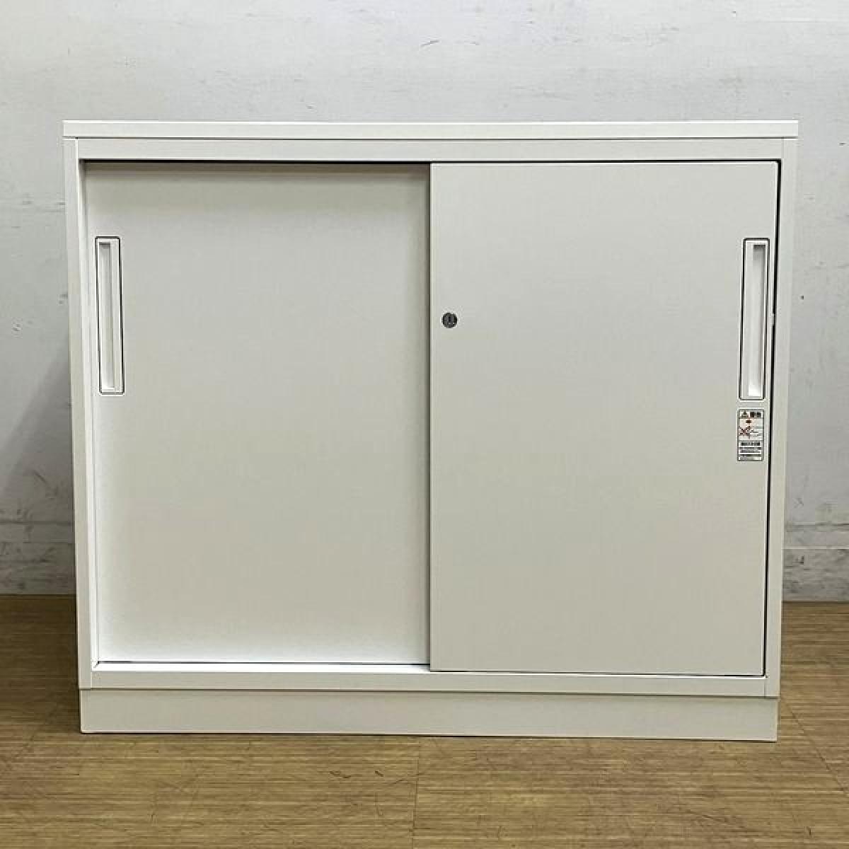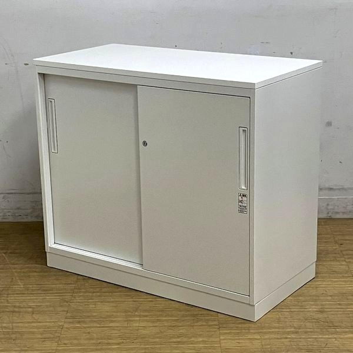【スライド引き戸だから開閉スペースに困らない!】■コクヨ(KOKUYO)製 エディア(EDIA)シリーズ 2枚引き違い書庫 ローキャビネット シリンダー錠 天板付き ベース付き ホワイト シリンダー錠 収納 中古家具 格安 福岡 オフィス家具 九州最大級《オフィスバスターズ福岡博多店は、福岡を拠点として、日本全国へ中古オフィス用品・オフィス家具を提供しております》