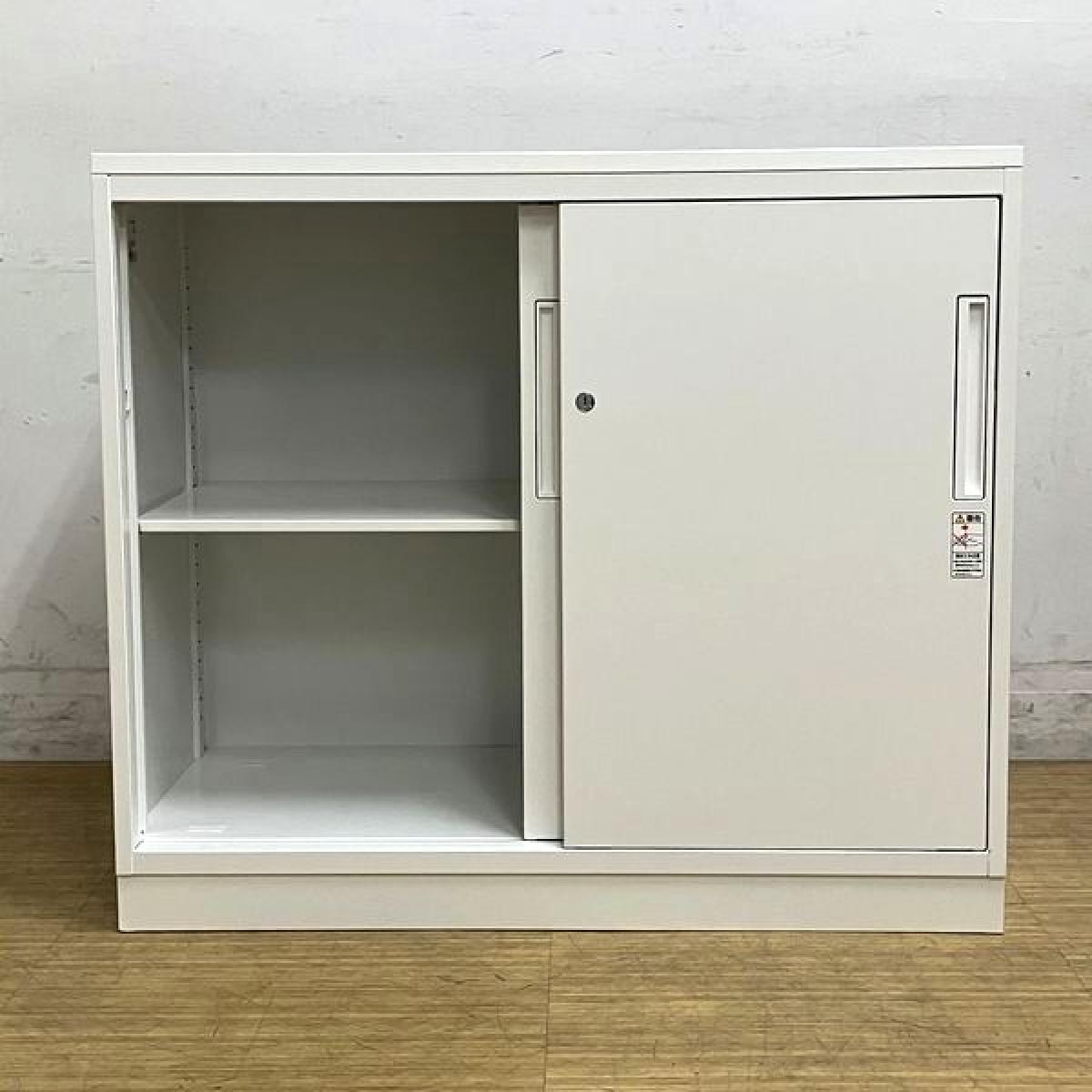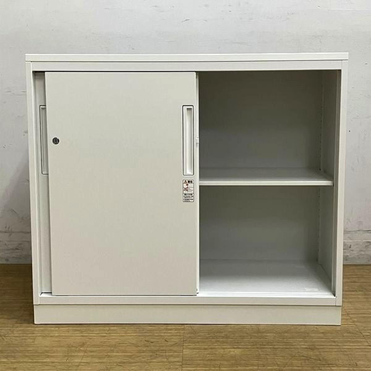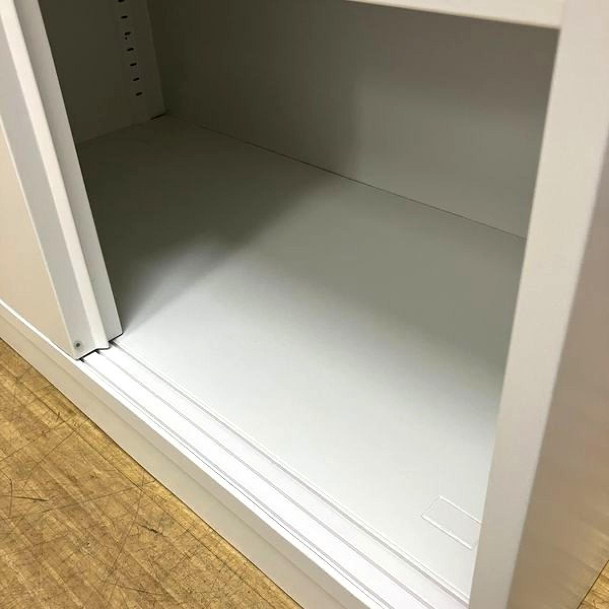 【スライド引き戸だから開閉スペースに困らない!】■コクヨ(KOKUYO)製 エディア(EDIA)シリーズ 2枚引き違い書庫 ローキャビネット シリンダー錠 天板付き ベース付き ホワイト シリンダー錠 収納 中古家具 格安 福岡 オフィス家具 九州最大級《オフィスバスターズ福岡博多店は、福岡を拠点として、日本全国へ中古オフィス用品・オフィス家具を提供しております》
