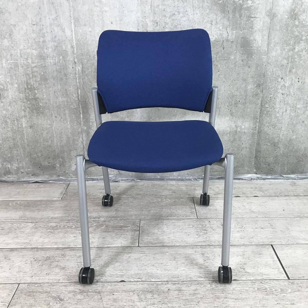 【関東倉庫在庫品】【シンプルデザインのスタッキングチェア!】■オカムラ製 8147シリーズ スタッキングチェア ■ブルー【弊社使用欄:A00980248】【ECBMC】- 在庫数