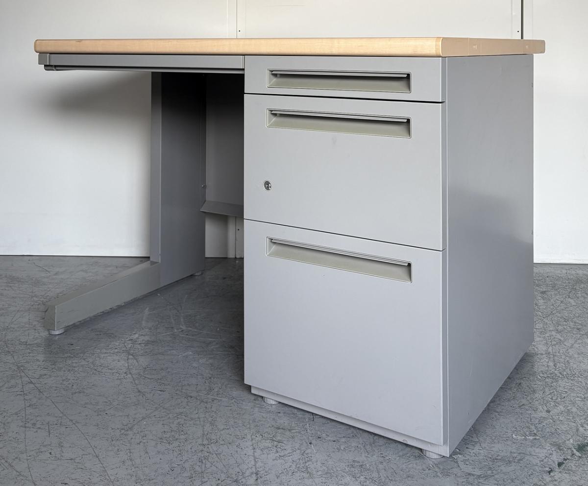 【幅1000mmのコンパクトサイズでもさすがの収納力!】■ウチダ(UCHIDA)製 フィード(FEED) 片袖机 W1000mm ■天板:ナチュラル調 本体:グレー ■シリンダー錠【T11】- 大阪心斎橋店