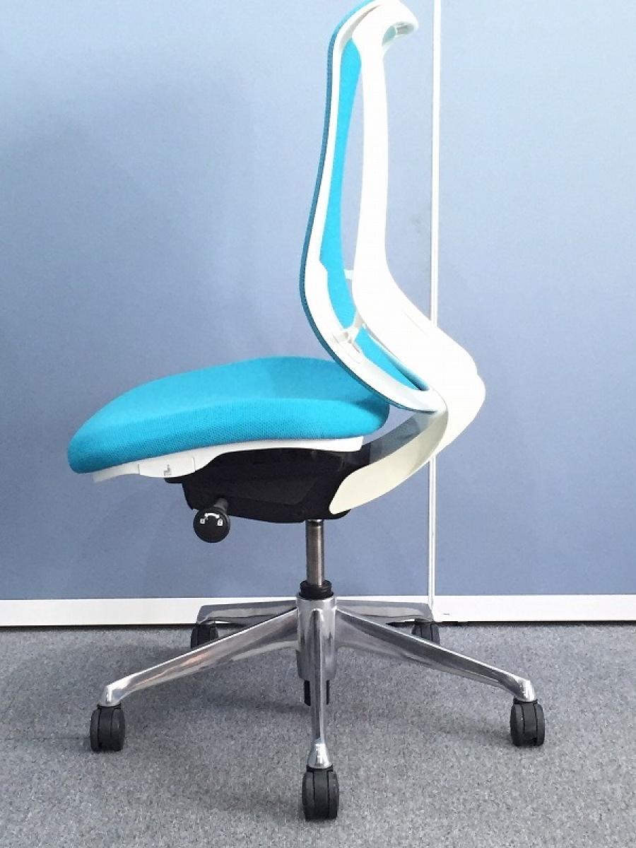 【背のカーブを変えられる! 新感覚のオフィスシーティング!】■オカムラ(okamura)製 シルフィーチェア ■肘無し ■ブルーグリーン×ブラックシェル ※上下昇降ガス圧弱めの商品となります。